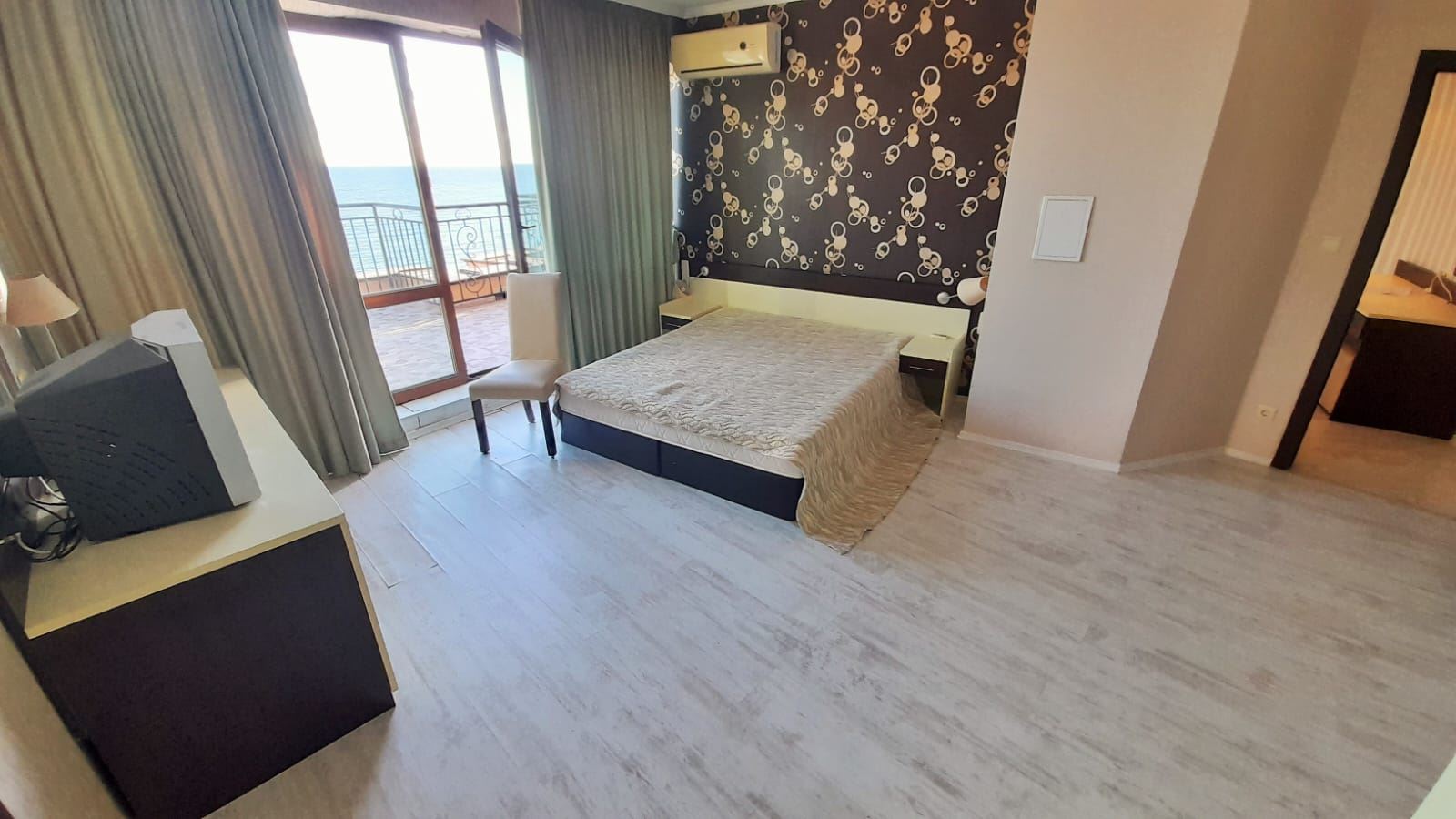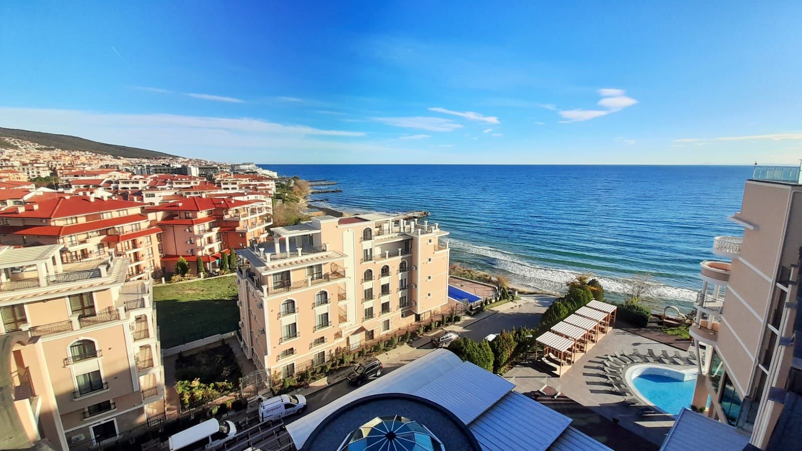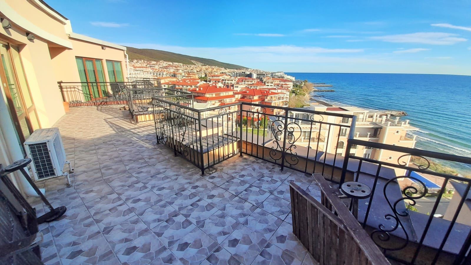 We are pleased to present a rare opportunity to purchase a two-room apartment with an exceptional atmosphere and uncompromising comfort, located on the top floor of a modern complex in Sveti Vlas. With a total area of 111 m² and a south-facing orientation, the property offers stunning panoramic sea views and the unique charm of combining fresh mountain and sea air.