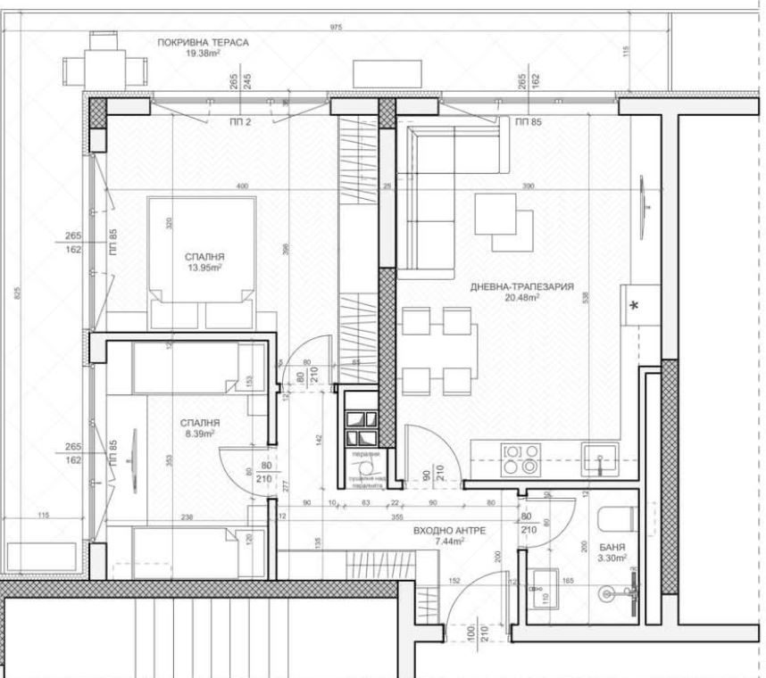 The apartment consists of a spacious living room, one cozy bedroom, a modern bathroom and a balcony which is an ideal place to relax and enjoy the beautiful views. The property is offered on a plug-in basis, giving the future owners the opportunity to finish it according to their preferences and style. Interestingly, there are two elaborate proposals for conversion into a two-bedroom apartment, providing additional options for flexibility and space optimization. The building is modern, with high quality materials and amenities, including an elevator for residents' convenience. Banishora is a quiet area with good transport links to the city centre, making it an ideal location for both living and investment.