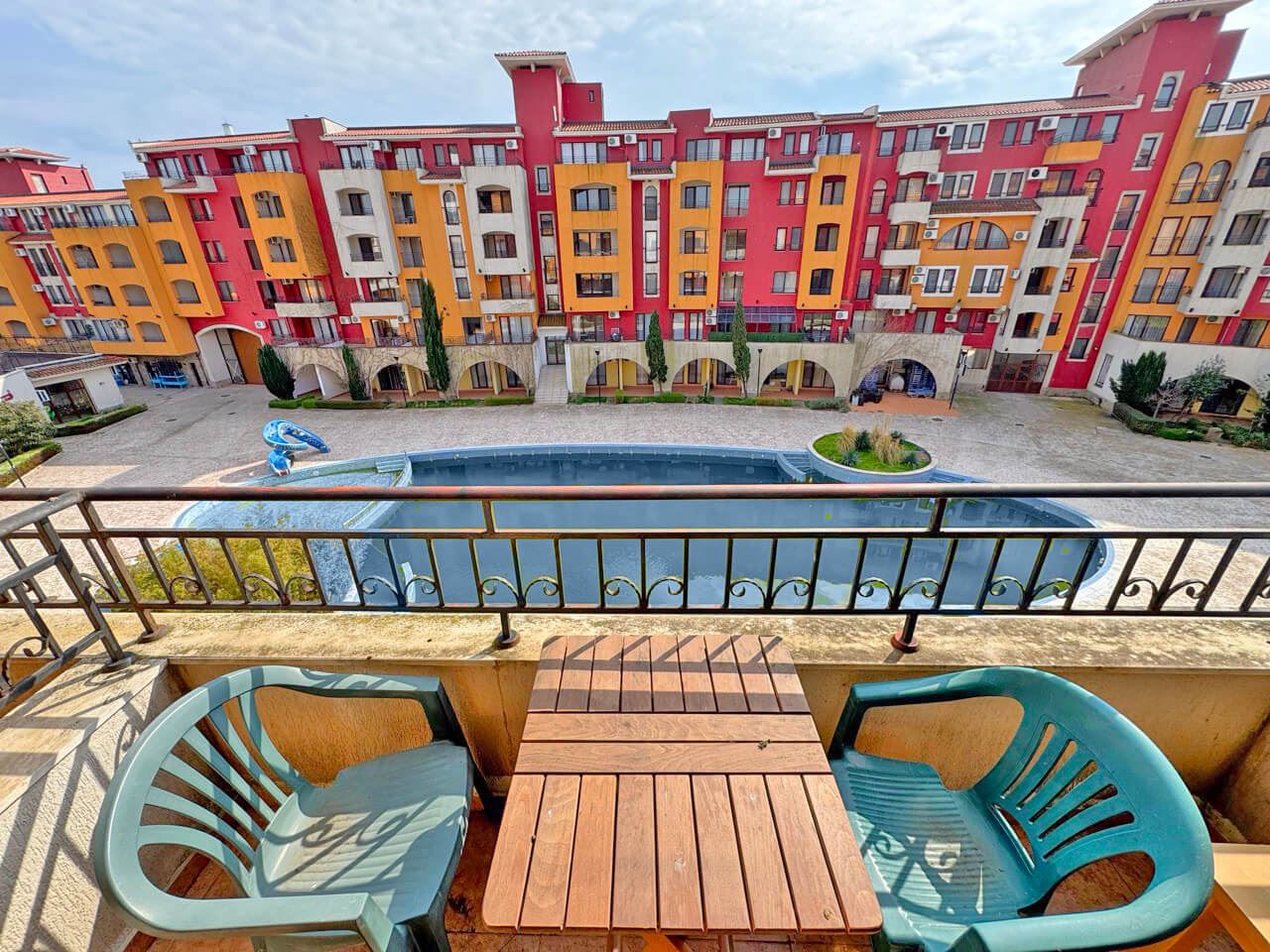 The complex in which the apartment is located offers a wide range of services and amenities for its residents and guests. There are three wonderful restaurants and several cafes where you can enjoy a variety of culinary cuisine. The two swimming pools with bars and lifeguard service invite you to relax under the sun. For more active guests, the spa and fitness centres offer relaxation and workout options. A dedicated range of services is also provided - a doctor's surgery, pharmacy, bank and grocery store make your daily routine easy and convenient. Specialty shops in the complex offer everything you need within convenient distance. The elevator provides quick and easy access to your apartment, adding extra convenience to your stay.