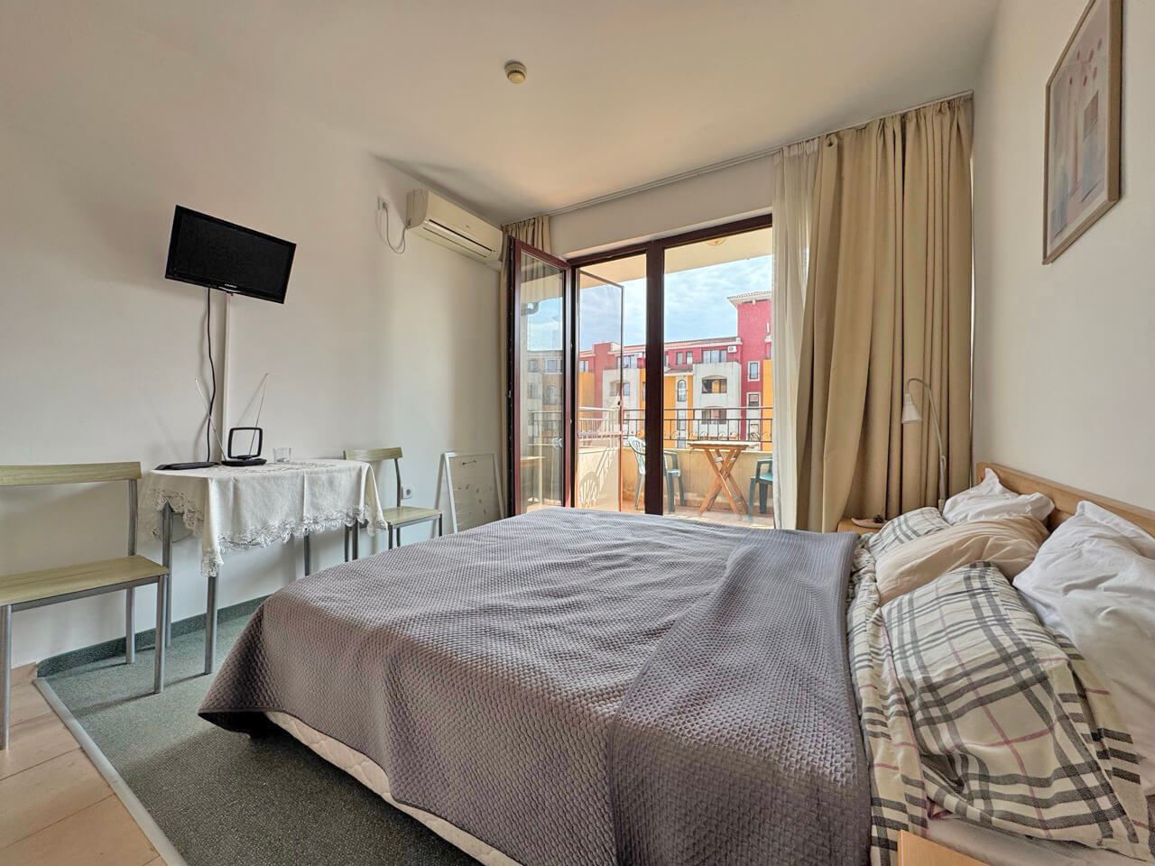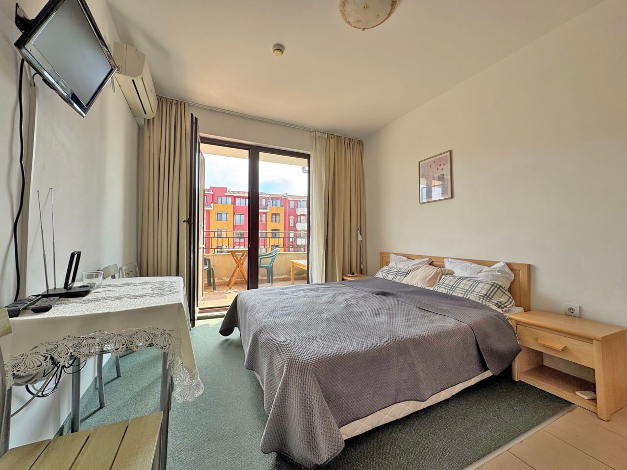 We present to your attention a spacious studio with sea view, located in the picturesque resort of Aheloy. With a total area of 42 m2 this apartment offers the perfect balance between comfort and functionality. Enjoy the spacious and bright room, which provides everything you need for a relaxing and comfortable stay. The access to one balcony allows you to look at the sea waves and soak in the tranquility of the coastal atmosphere. The bathroom is fully furnished, combining modern amenities with elegant design.