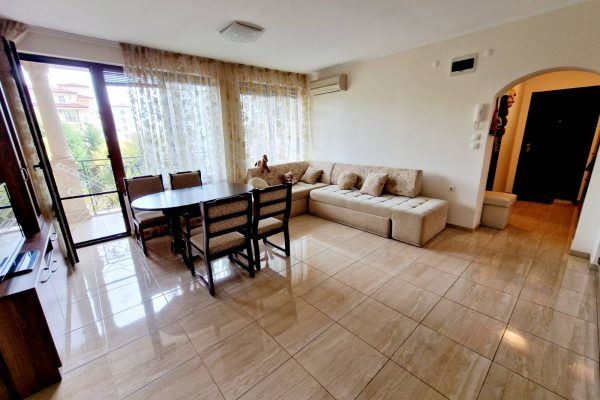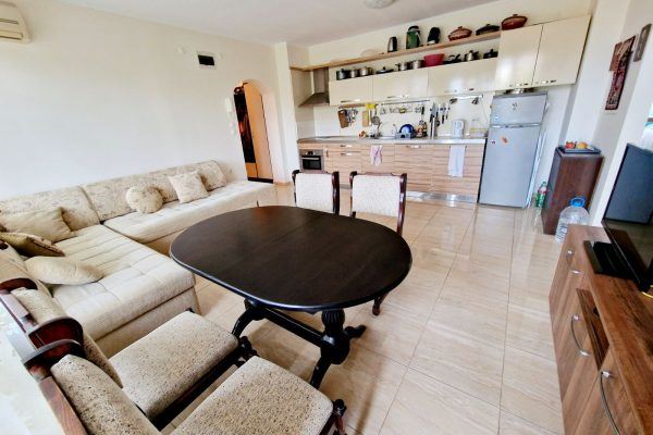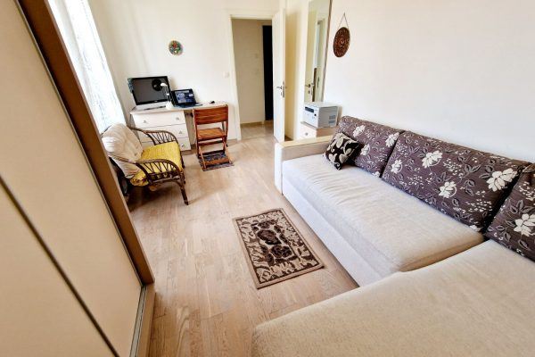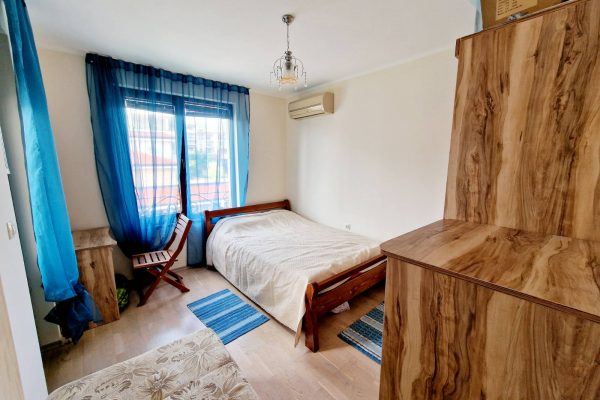 We offer a fully equipped large three bedroom flat in an elegant and modern complex, located 300m from the beach. The complex is distinguished by its architecture and the flats offered in it provide a high standard of relaxation and accommodation. The 109m2 flat is located on the third floor and is offered fully furnished and equipped, with air-conditioners in every room. The complex has excellent infrastructure and is designed for year-round residence and provides well thought-out internal service. The owners and guests of the complex enjoy free and paid services. The facilities are of a high standard, in keeping with the requirements of five-star hotels.