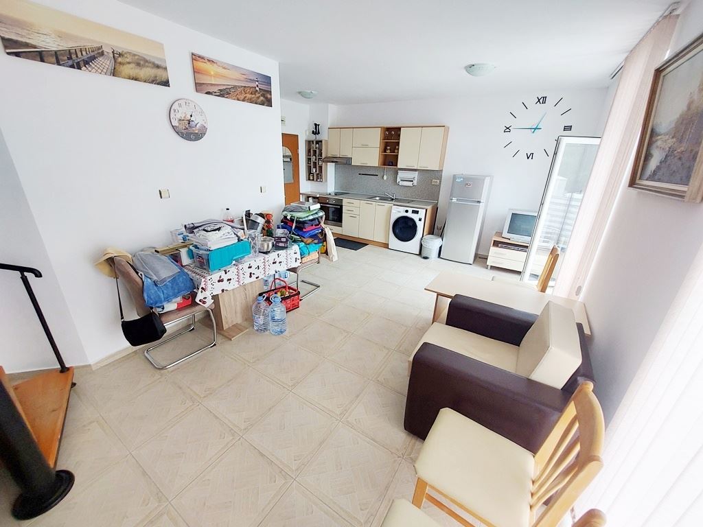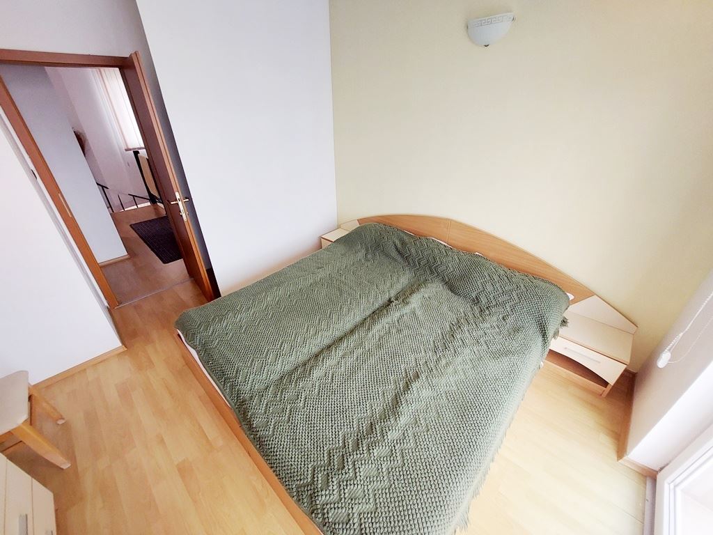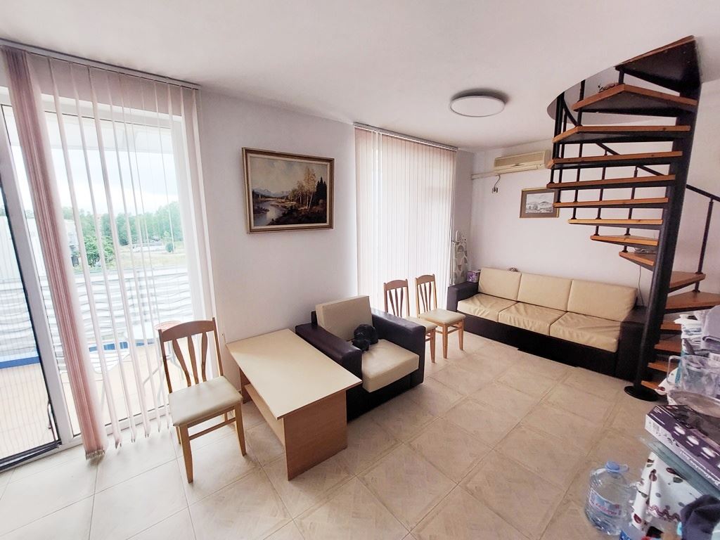 This spacious three bedroom flat on two levels is located in a complex which is situated in the south-western part of the resort of Sunny Beach, 10 minutes walk from the beach. Near the complex there are restaurants, shops, bars, bus stop. The ancient town of Nessebar is a 20 minute walk away. The flat is located on the fourth floor and consists of an entrance hall, living room with open plan kitchen, three bedrooms, two bathrooms with shower and WC and two balconies. The property measures 147 m2. It is sold fully furnished and equipped.
