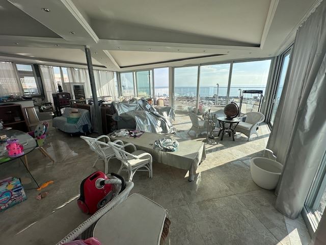 Penthouse with three bedrooms and panoramic sea views located in the prestigious complex in the resort town of Sveti Vlas, just 100 meters from the picturesque sea coast. This cosy residential complex is ideal for both permanent residence and holiday. The apartment, located on the sixth floor, offers a spacious 220 m2, including three bedrooms, three bathrooms, large living room + large summer kitchen of 100 m2 with all necessary equipment. The apartment has a terrace of 150 m2. The convenient location offers comfort and easy access. The sale of this home is made with furniture and equipment, allowing the new owners to start enjoying their acquisition immediately. The complex in which the home is located offers a wide range of amenities for residents. Its spacious grounds include a swimming pool where you can enjoy relaxing in the sun, free parking and a supermarket for easy shopping. 24-hour security ensures safety and peace of mind for all residents. Of particular note is the proximity to the main promenade and marina, making access to a variety of entertainment and restaurants as convenient and quick as possible. This apartment is an excellent offer for those looking for a cosy and comfortable accommodation in the picturesque resort town of Sveti Vlas.