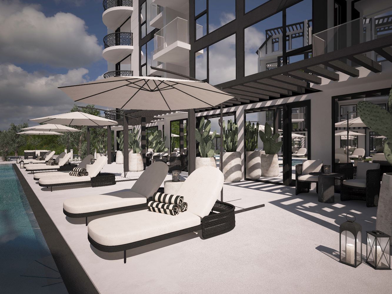 On the territory of the complex, you will find numerous amenities, including a reception with lobby bar, parking spaces, children's playground, swimming pool, outdoor spa area, and pool bar/cafeteria. The apartments are delivered turnkey, with high-quality materials and elegant design in light colors. Furniture packages are available upon request for an additional fee.