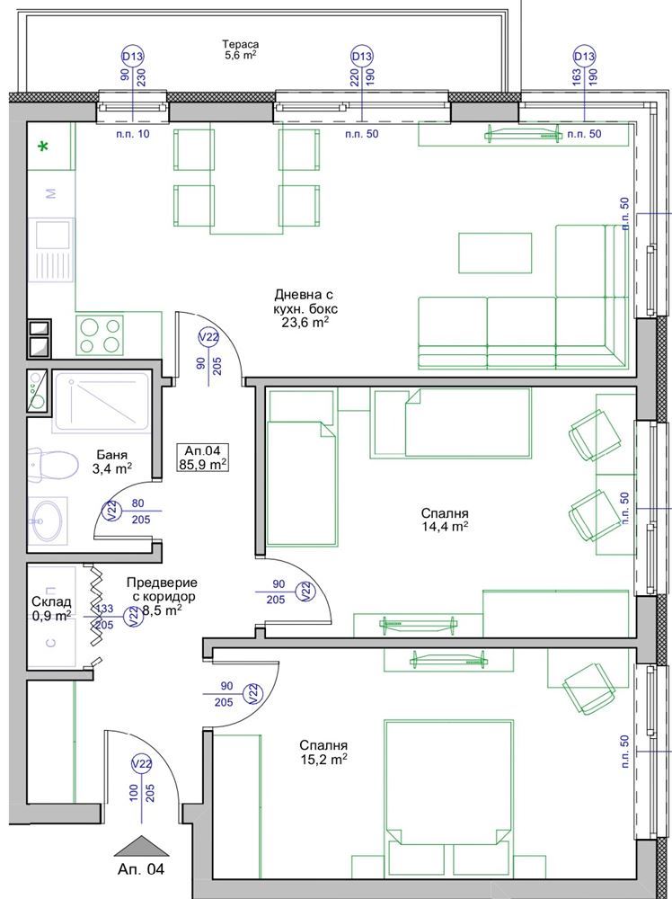 We present a spacious three-room apartment in a newly constructed residential building in one of the most sought-after tourist areas – the town of Pomorie. The property has a total area of 96.04 sq.m, located on the first floor, and combines an attractive seaside location with the conveniences of the city – an excellent choice both for year-round living and as a vacation home or investment. The building is situated on a quiet and peaceful street, “Tuthon,” in a well-developed area. Within walking distance, you will find the famous therapeutic mud baths, medical centers, wide sandy beach, football stadium, city center, and numerous shops. The location offers a perfect balance between tranquility and quick access to everything necessary for comfortable living and quality relaxation.