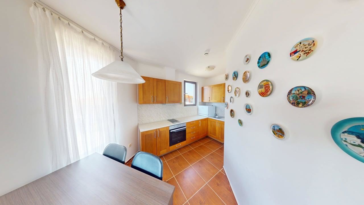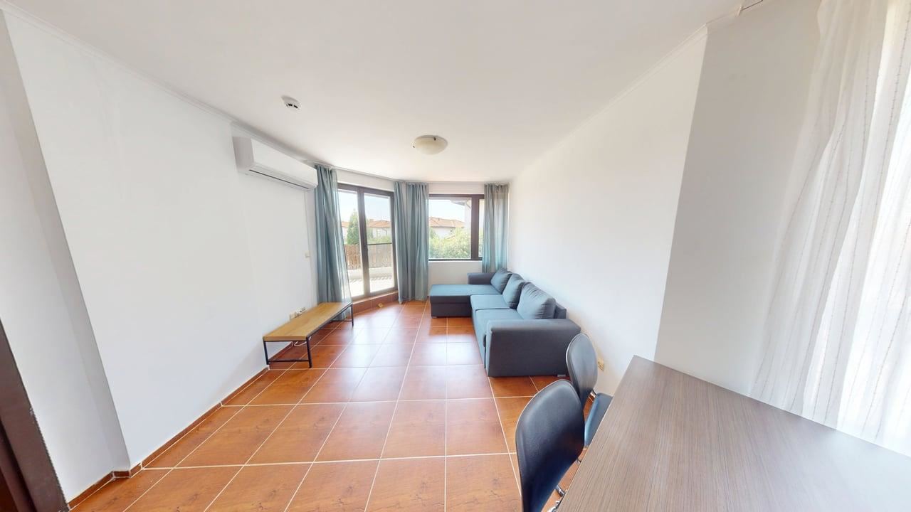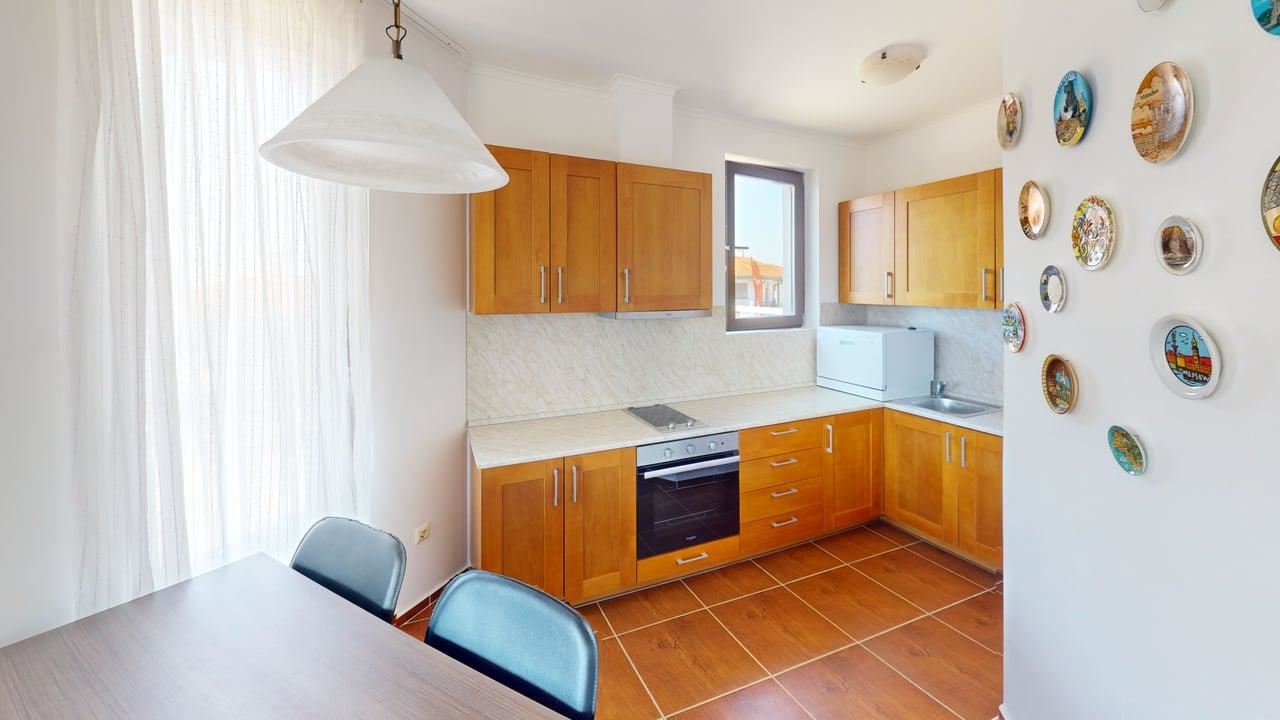 We present to you a wonderful three-room apartment located in the resort area of Sunny Beach, surrounded by stunning nature. This is an ideal home for those who value natural beauty and the comfort of seaside living. The apartment has an area of 90 m² and is situated on the second floor of a three-story villa, offering a beautiful view of the surrounding landscape. It comes fully furnished and equipped with everything necessary for a comfortable stay.