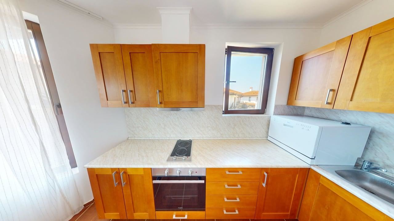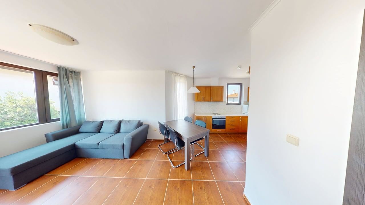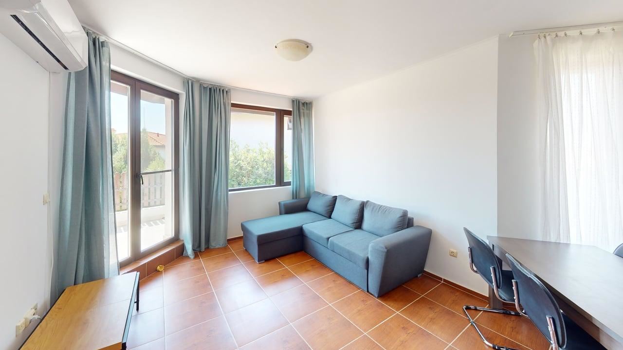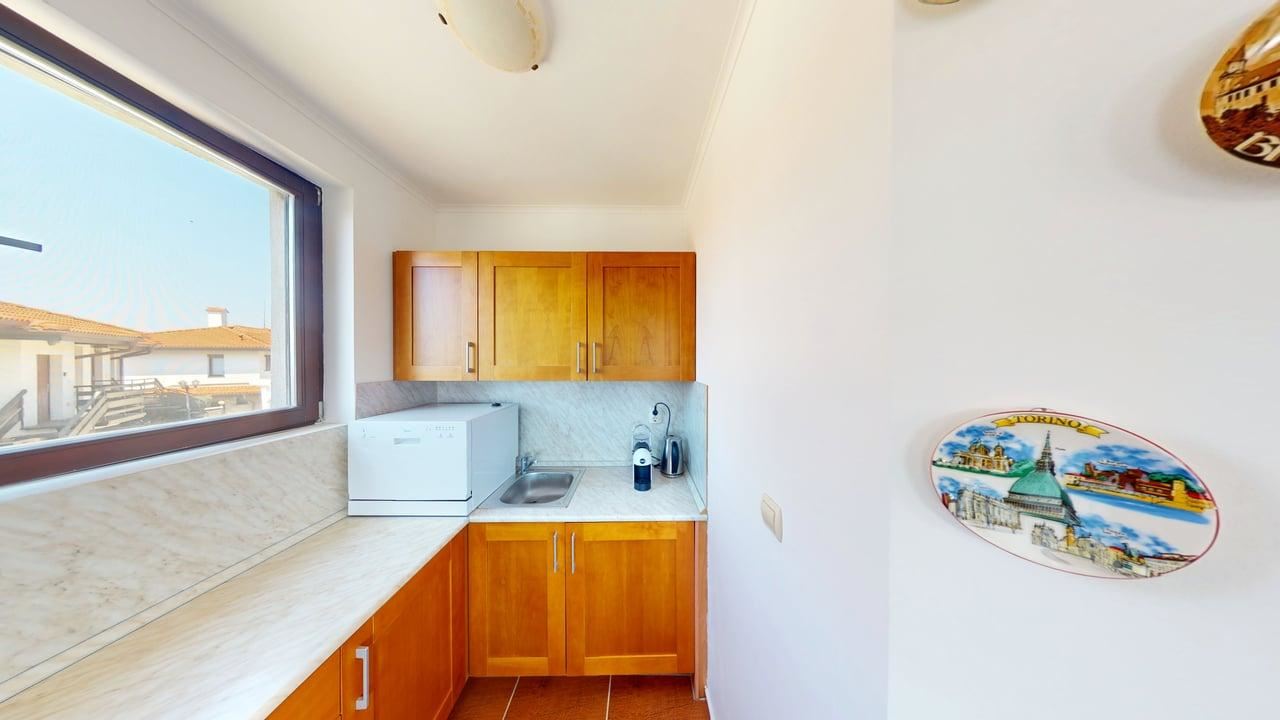 We present to you a wonderful three-room apartment located in the resort area of Sunny Beach, surrounded by stunning nature. This is an ideal home for those who value natural beauty and the comfort of seaside living. The apartment has an area of 90 m² and is situated on the second floor of a three-story villa, offering a beautiful view of the surrounding landscape. It comes fully furnished and equipped with everything necessary for a comfortable stay.