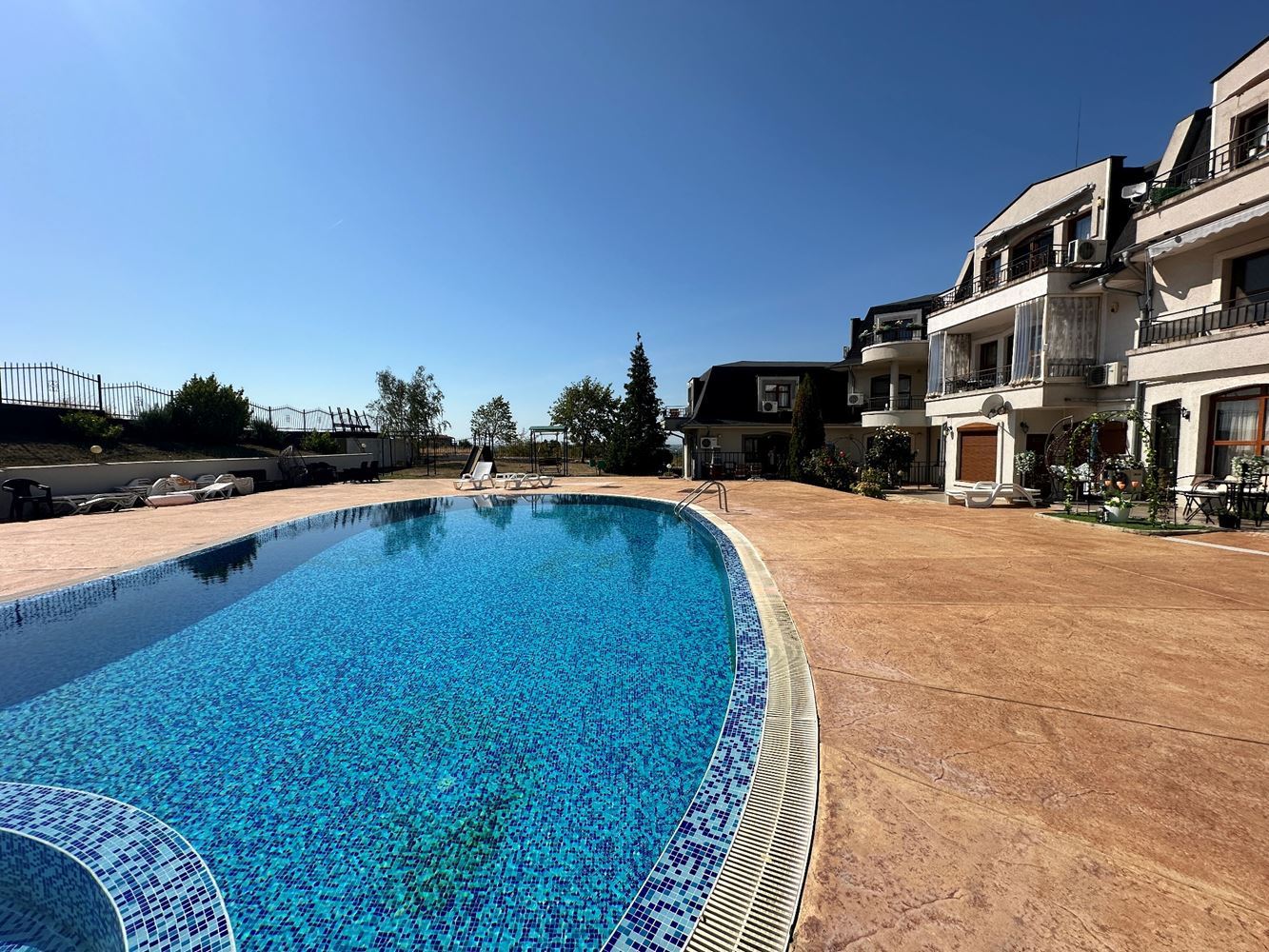 The complex offers excellent conditions for relaxation and leisure. Available to owners and guests are an outdoor swimming pool for adults with a children’s section, a restaurant, a reception, as well as designated relaxation and sunbathing areas with sun loungers. The landscaped green areas contribute to the pleasant atmosphere and create a sense of closeness to nature. For peace and security, the complex provides maintenance and security services. The area is quiet and peaceful, away from the noise of the large resort, yet with convenient transport connections to Sunny Beach, Sveti Vlas, and Nessebar. This allows quick and easy access to beaches, summer attractions, restaurants, and entertainment, while preserving the comfort of a more private environment.