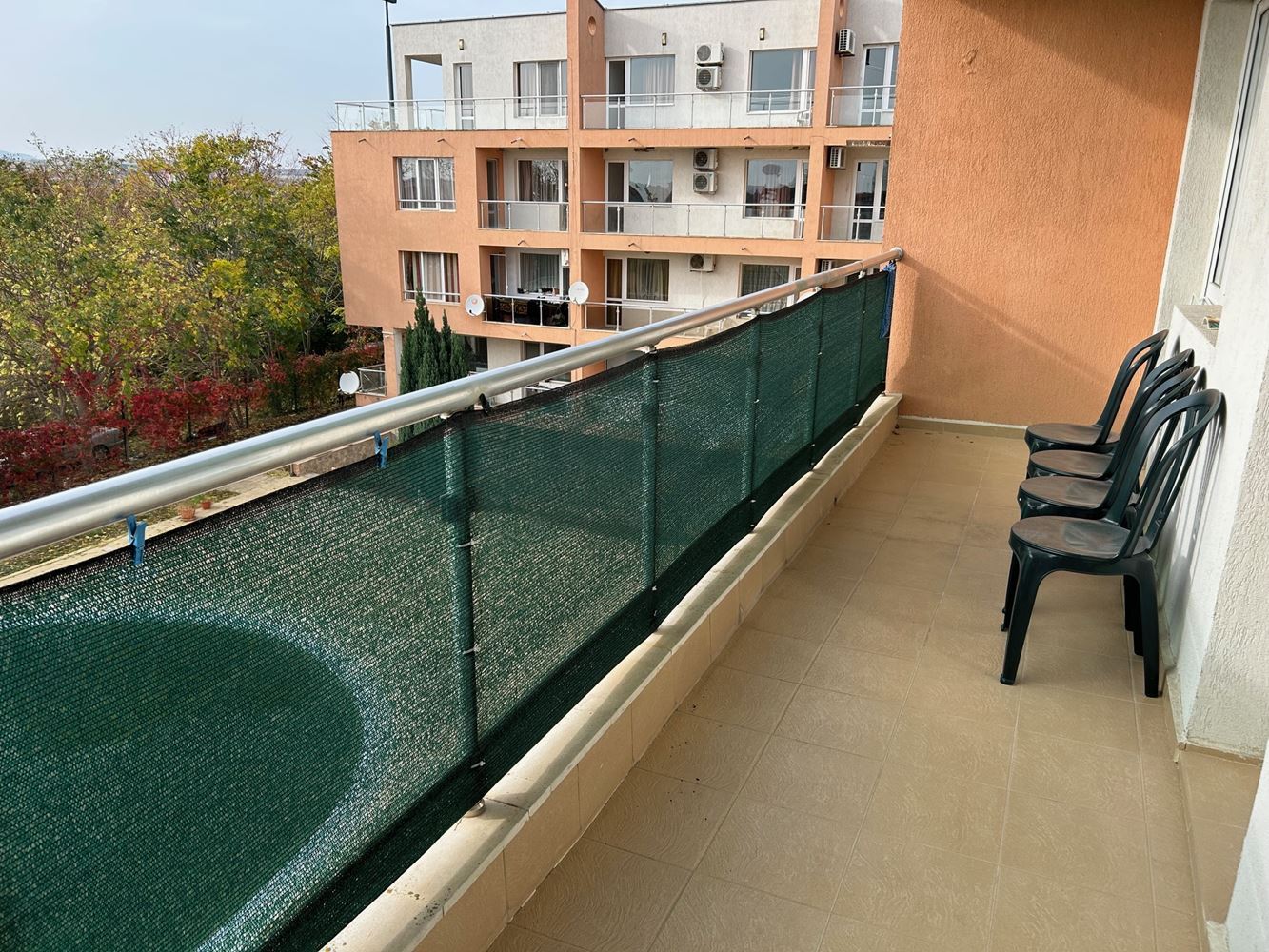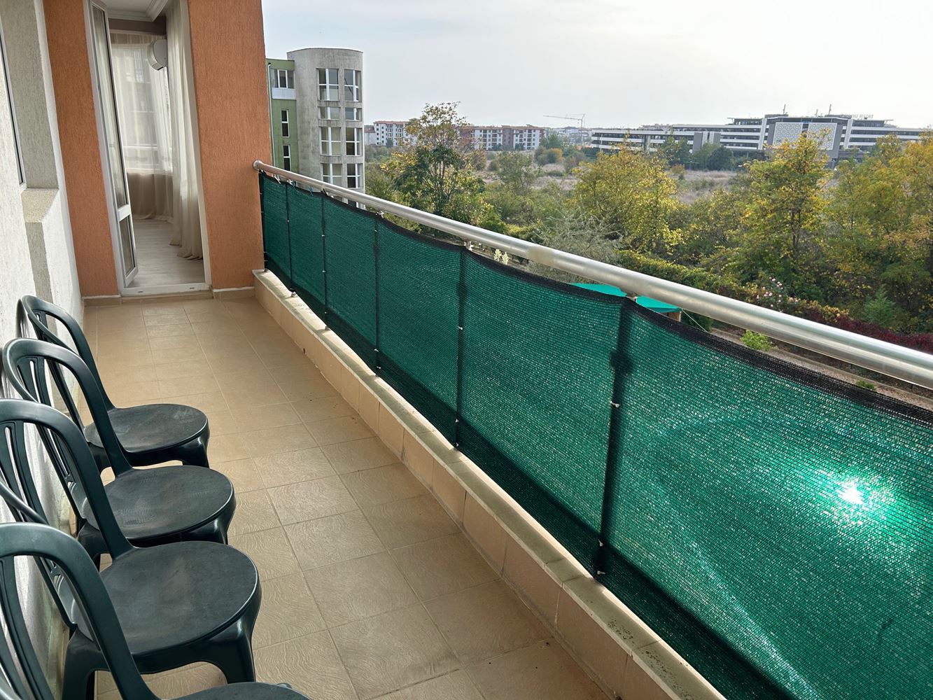 This two-bedroom apartament in a complex near the Aquapark in Nessebar is a comfortable and spacious accommodation with a total area of 113 square metres. Located on the third floor, it offers a wonderful view of the swimming pool and the surrounding area. The apartament has a comfortable layout including a corridor, living room with kitchen area, lounge and dining area. Two cosy bedrooms provide ample privacy for the occupants. The bathroom is equipped with modern amenities. The apartament's terrace provides a beautiful view of the swimming pool, creating a unique outdoor seating area. The apartament also provides an additional room that can be used as a dressing room or to store belongings. The enclosed and landscaped area of the complex includes a swimming pool, children's area, as well as seating and barbecue areas. This creates a cosy atmosphere for socialising and entertaining among the residents of the complex. A year-round supermarket is within walking distance, providing convenience in everyday life. A large Aquapark is only 200 metres away, making it an attractive place for entertainment and recreation.