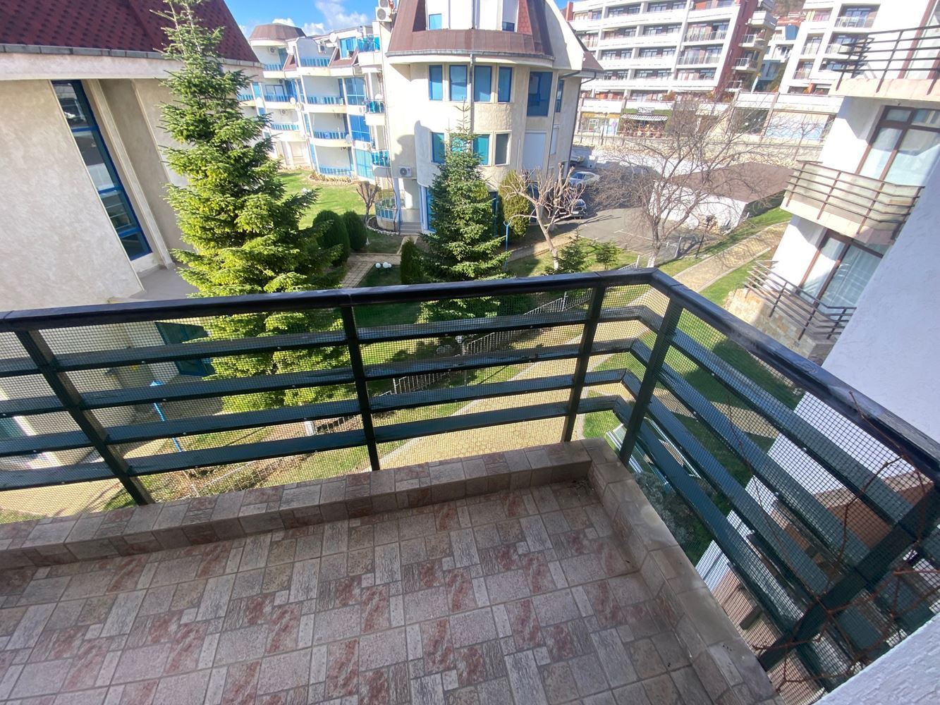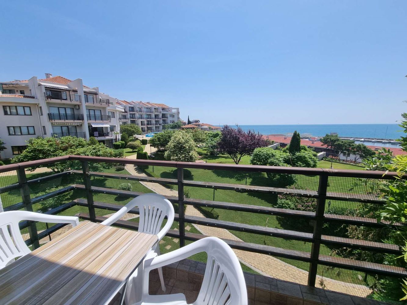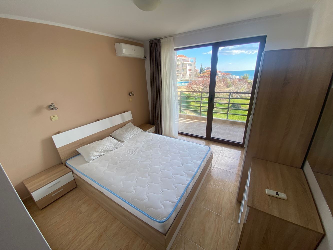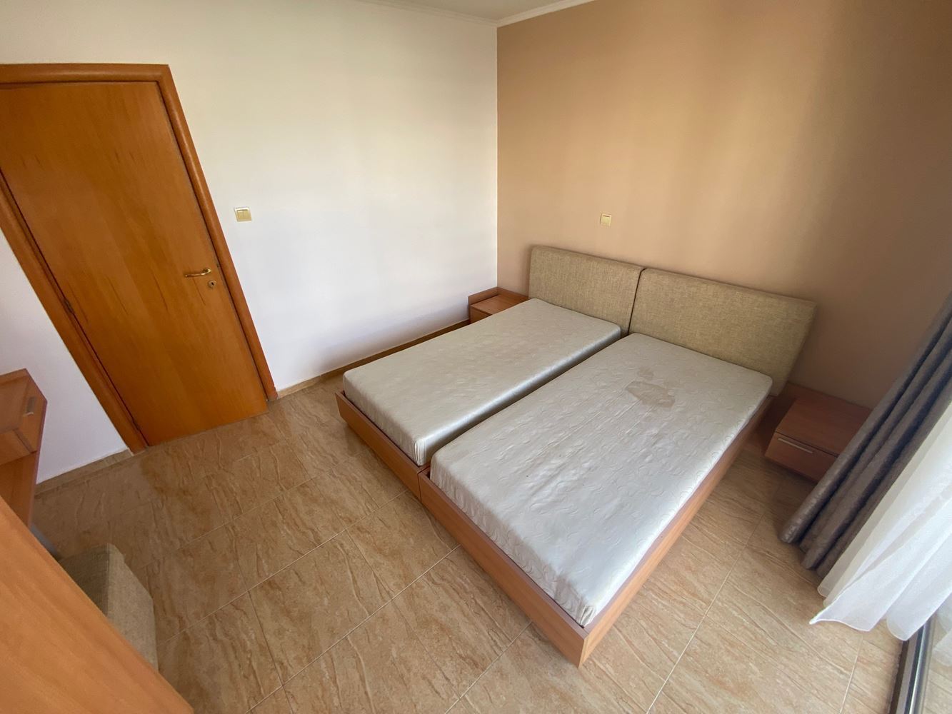 Two-bedroom first line apartament with sea view in a luxury complex in St. Vlas. The complex is located on the beachfront and is within walking distance of the spa centre, night club, shop, restaurant and theatre. Flat with an area of 95 m2 is located on the third floor. It is sold fully furnished. A beauty salon with solarium, karaoke, fitness centre, restaurant, outdoor pool, cafe, children swimming pool, bar, permanent security and maintenance, children playground. The flat has a good layout, including a hall with kitchen area, two bedrooms, two bathrooms and two balconies. Ideal for couples with children. The complex has two swimming pools, aqua bar, fitness room, internet room, beauty salon with sauna, hairdresser, supermarket, exchange office, piano bar, parking.