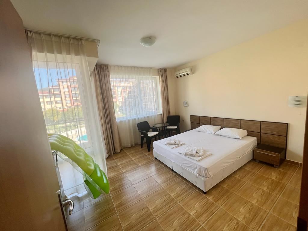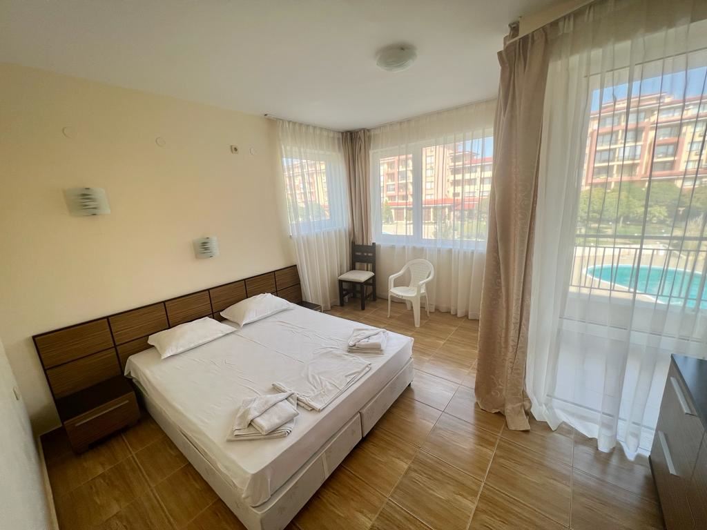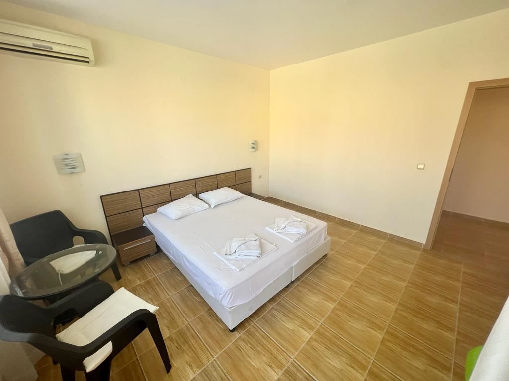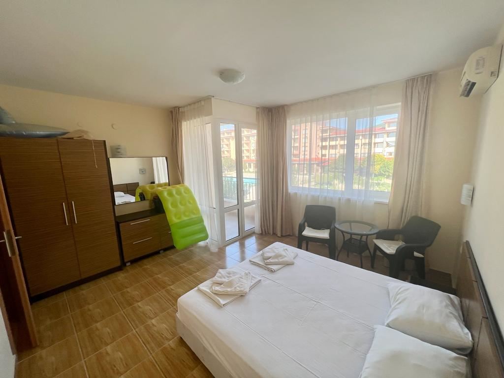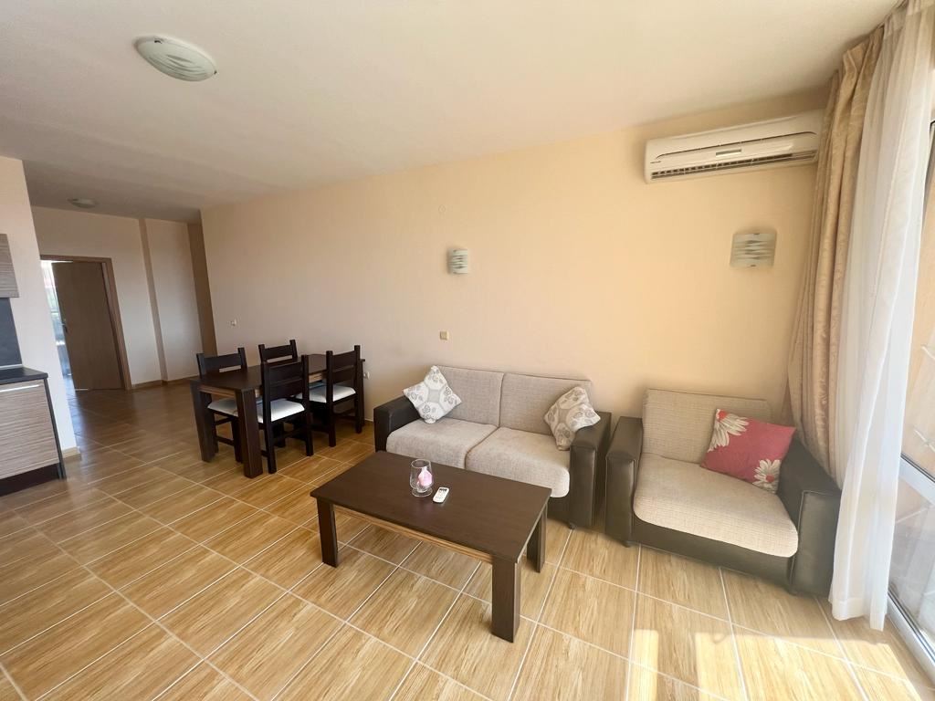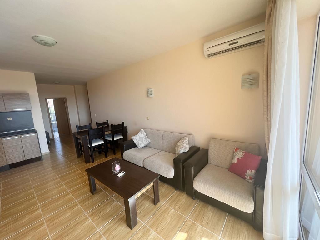 This beautiful two bedroom apartament in St Vlas offers a unique combination of luxury, comfort and sea views. Located on the fourth floor of a magnificent complex, the apartament has a total area of 106 square metres, creating a spacious and comfortable home. The living room welcomes you with a bright and spacious space with a dining area and a cosy seating area. The beautiful sea view from the balcony invites you to enjoy the fresh sea breeze and the breathtaking scenery. The interior is decorated with stylish furniture, creating an atmosphere of cosiness and modernity. The apartament includes two comfortable bedrooms, where the owners can enjoy a comfortable rest after a day spent at the seaside or in the swimming pool of the complex. The sanitary unit is of modern design, and a small hallway adds a sense of cosiness. The complex in which the apartament is located provides its residents with amazing recreational facilities, including swimming pools and recreational area. Located in a quiet and peaceful area just 400 metres from the beach, it allows you to enjoy the silence and beauty of nature. The owners of this apartament have a unique opportunity to enjoy incredible mountain and sea views every day, being away from the hustle and bustle of the city. The famous Sunny Beach resort is very close by, providing additional opportunities for entertainment and recreation.