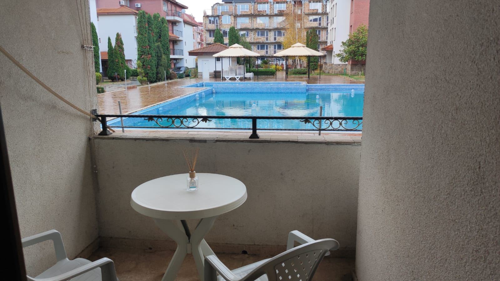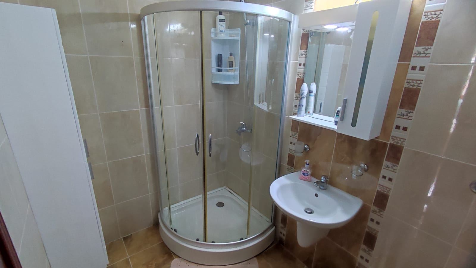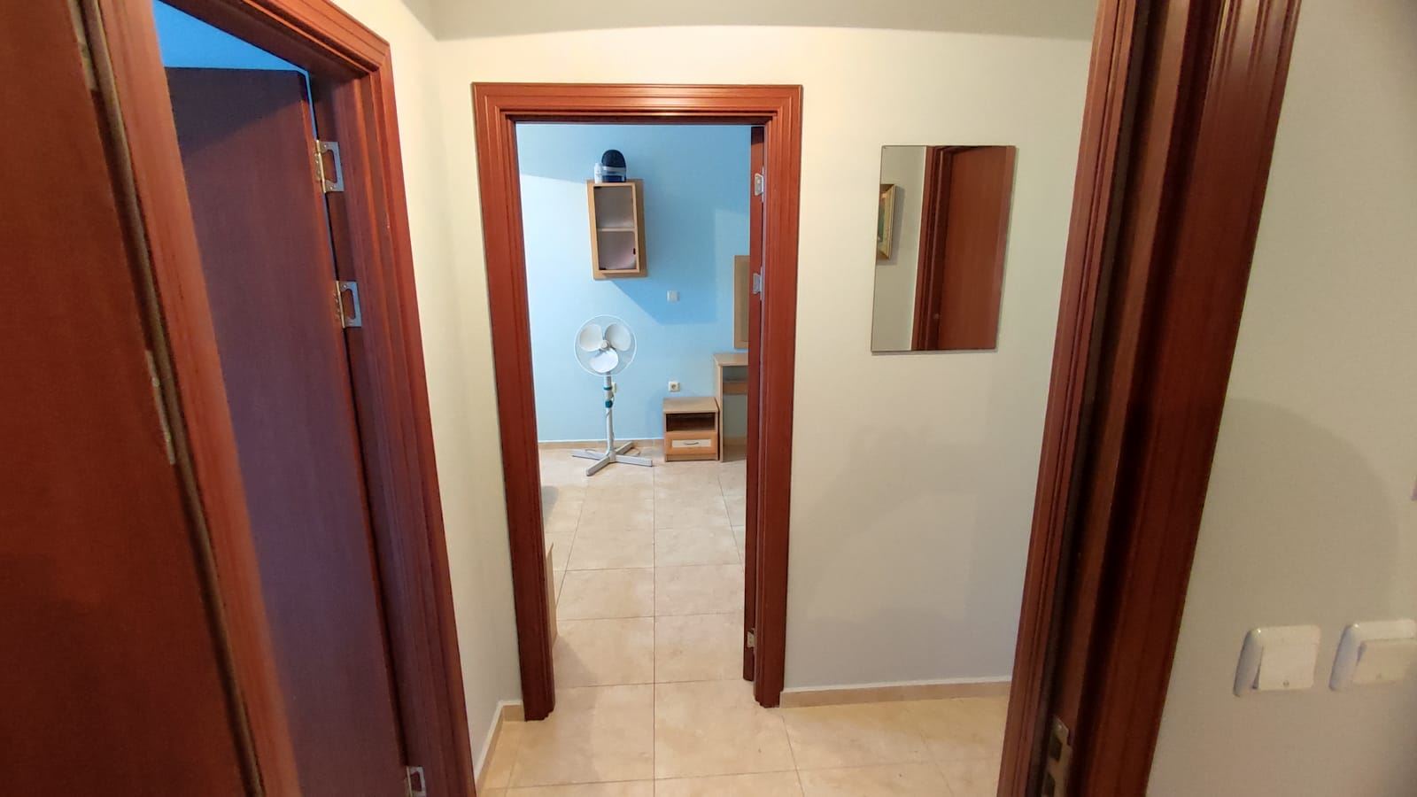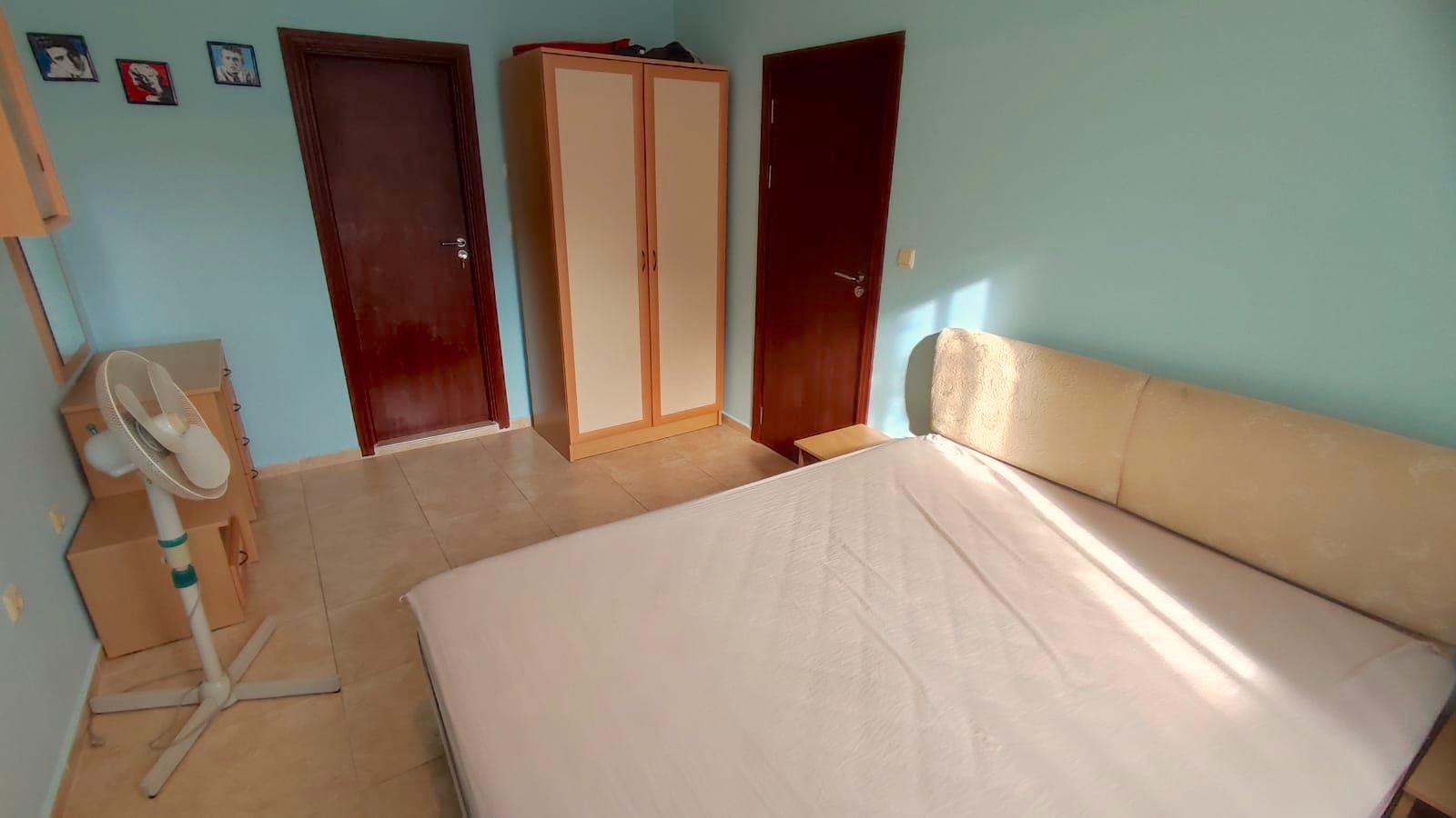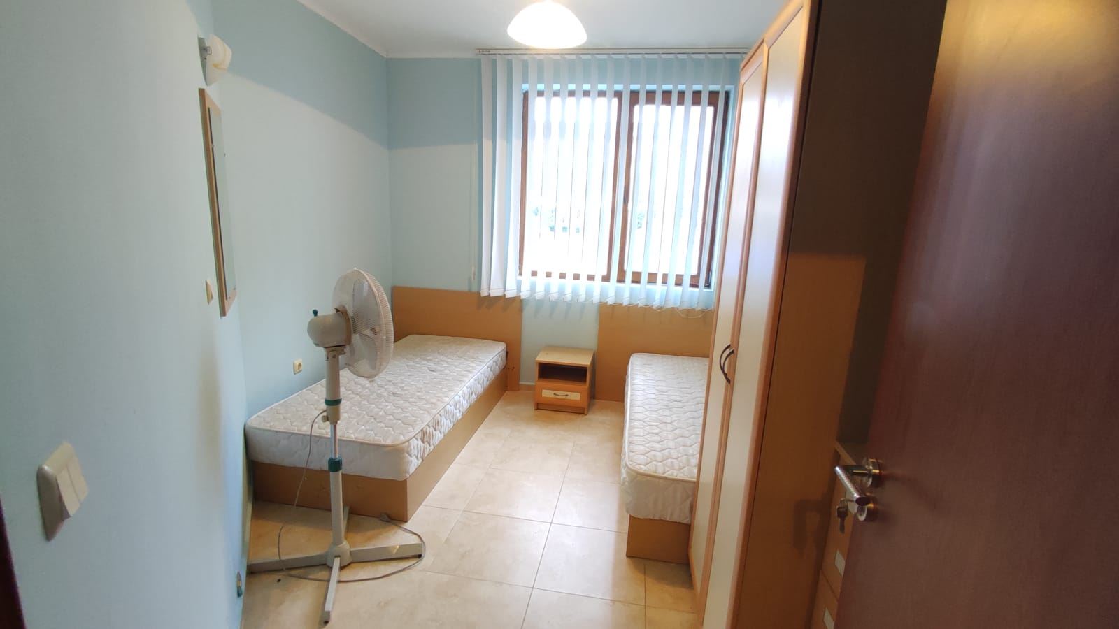 Two-bedroom large flat in a complex, which is located 200 metres from the sea and a good beach. Designed for both summer holidays and year-round residence. The complex consists of four floors and is part of a large mega complex with a common area, playgrounds, sports facilities, parking, restaurants, recreation and relaxation areas, SPA centre, fitness, grocery shop. The flat we offer is located on the low ground floor and has an area of 80 m2. It consists of two bedrooms, a spacious living room with a kitchenette, two bathrooms with WC and a terrace overlooking the pool and the inner complex. The flat is in good condition and ready to move in.