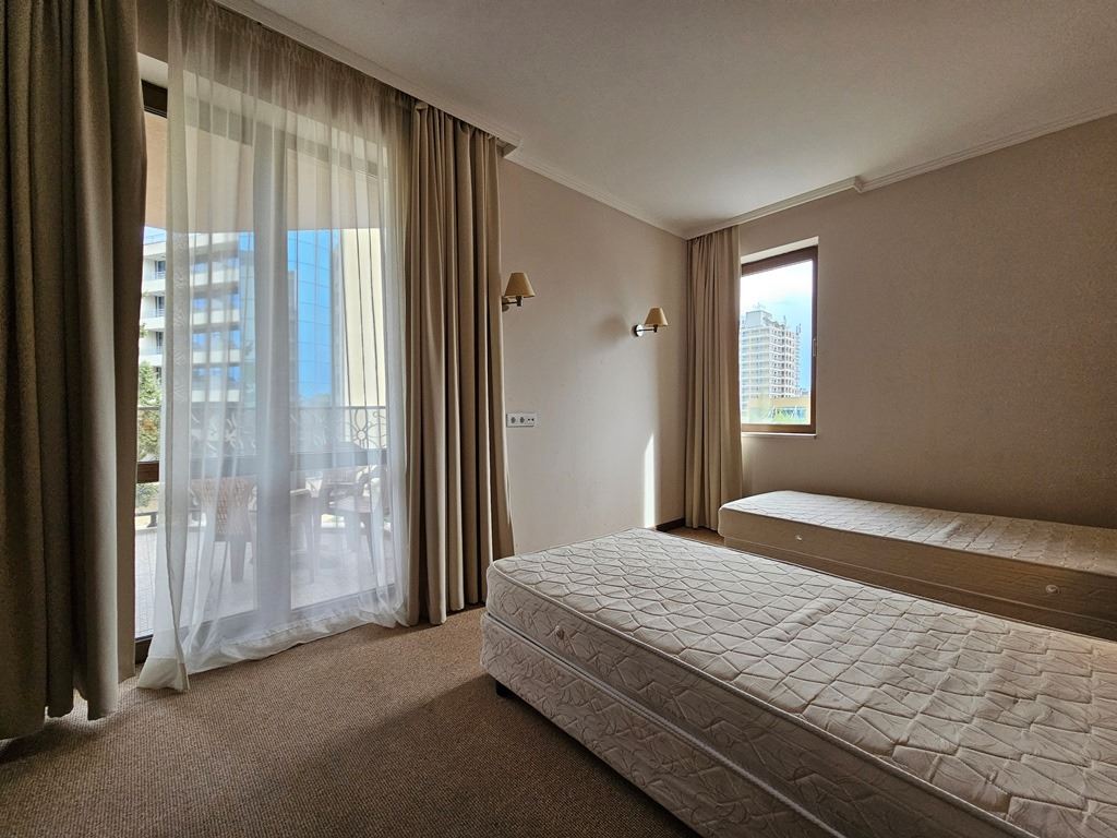 We present you an exclusive opportunity to buy a two bedroom apartment in a luxury complex located in the heart of Sunny Beach, just 50 meters from the golden beaches of the Black Sea. This spacious apartment with a total area of 105 m² offers exquisite comfort and convenience. The apartment has three rooms, including two cosy bedrooms, ideal for relaxing after a long day at the beach or entertaining. The spacious balcony offers a place to relax and enjoy the wonderful views of the complex. Your family's peace of mind and convenience are assured with an en-suite bathroom and an additional toilet.