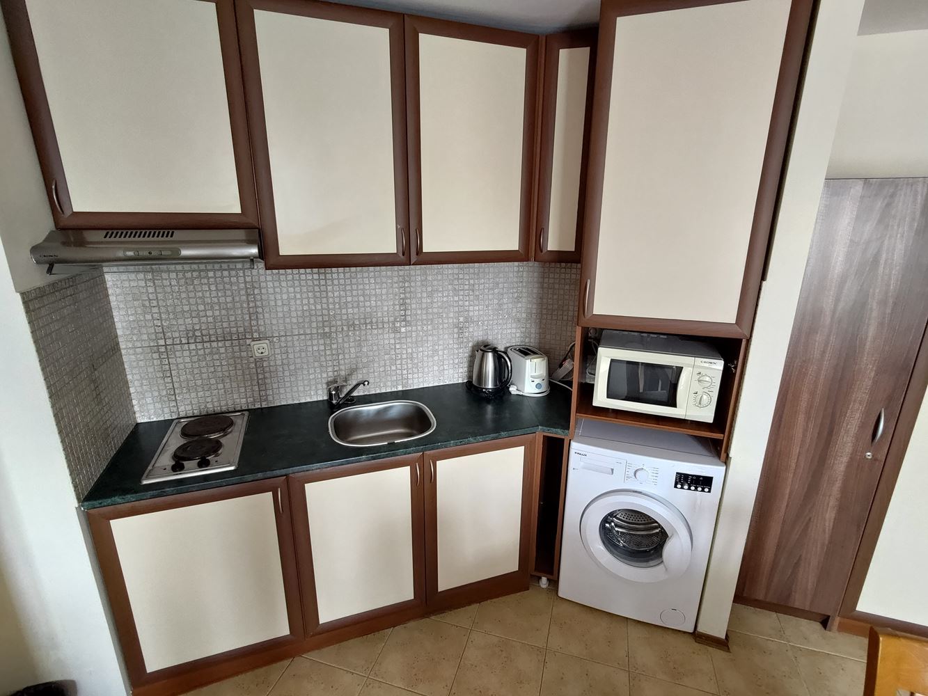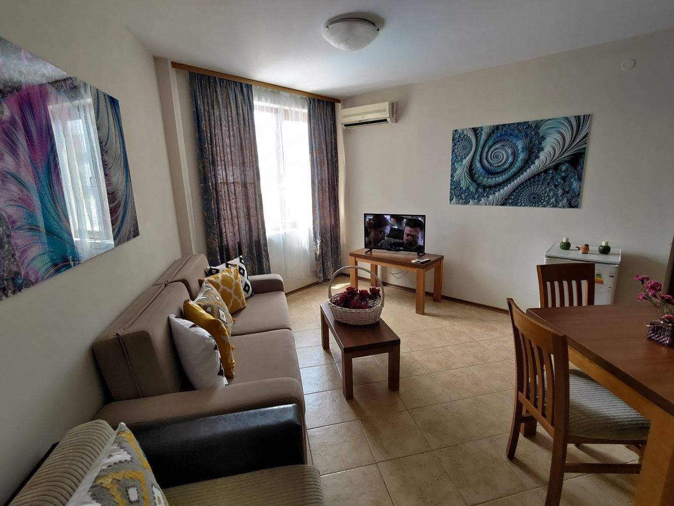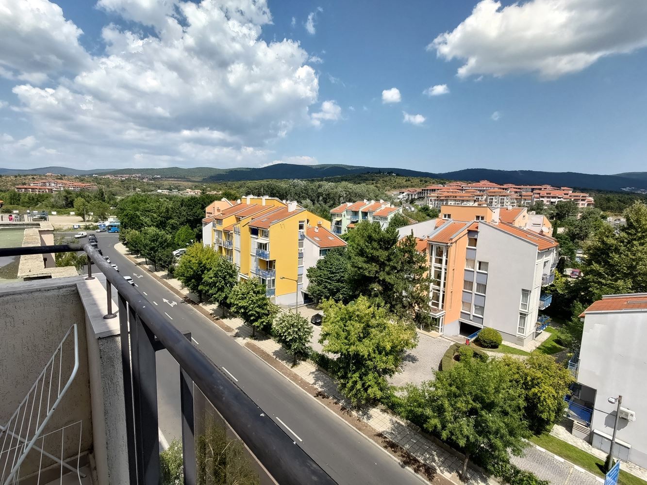 Excellent two-bedroom flat with partial sea and mountain view in a luxury complex in the resort of Sunny Beach. The flat is located in the northern most elite area of the resort, in close proximity to the town of St. Vlas. The beach is about 300 m away. The beautiful complex has a well equipped area with large swimming pools, restaurant and cafe. There is parking and security. The total area of the flat is 78 m2 and it is located on the sixth floor. A modern lift is installed. The flat consists of an entrance hall, living room with kitchenette separated in an alcove, two bedrooms, bathroom with WC, balcony. Furnished and equipped.