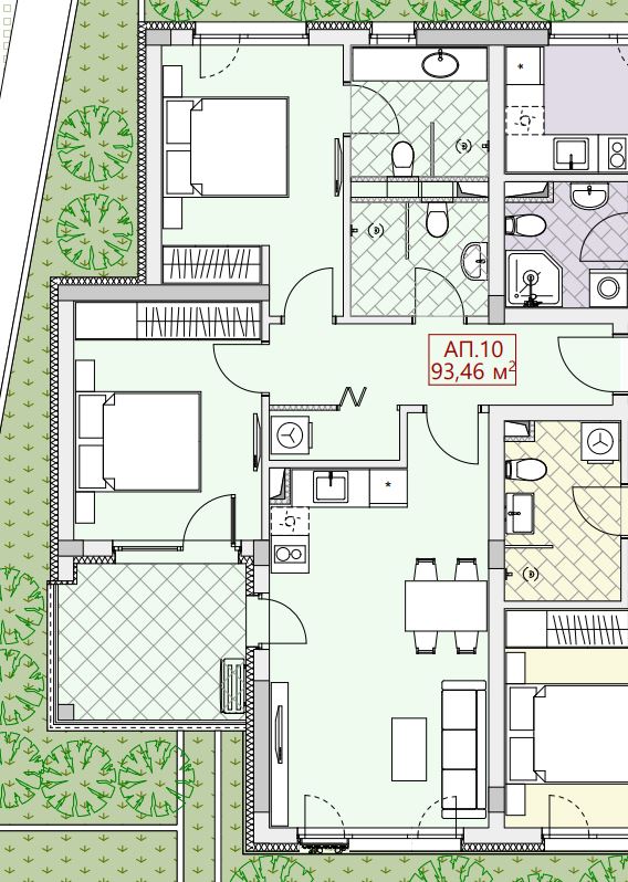 two-bedroom apartments with an area of 94 m2 to 105 m2