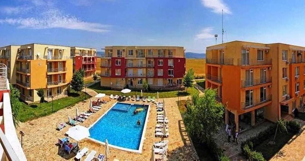 We offer a ready to move in two-bedroom apartment in a picturesque complex located on the outskirts of Sunny Beach, on the Black Sea coast. The apartment is located in a family complex, which is on the outskirts of Sunny Beach, about 3 km away from the sandy beach with golden sand. This area is ideal for those looking for peace, quiet and beautiful nature. There is a convenient bus stop in front of the complex, providing transportation links to the nearest settlements. The total area of the apartment is 68 m2. It is located on the second floor. The layout includes a living room with a kitchenette and a sitting area, two separate bedrooms, a bathroom with a toilet and a balcony. The apartment is in excellent condition and is ready to move in. It is sold furnished and equipped, making it ideal for both permanent residence and rental. The complex provides various amenities including a swimming pool, allowing residents to enjoy rest and relaxation in the grounds.