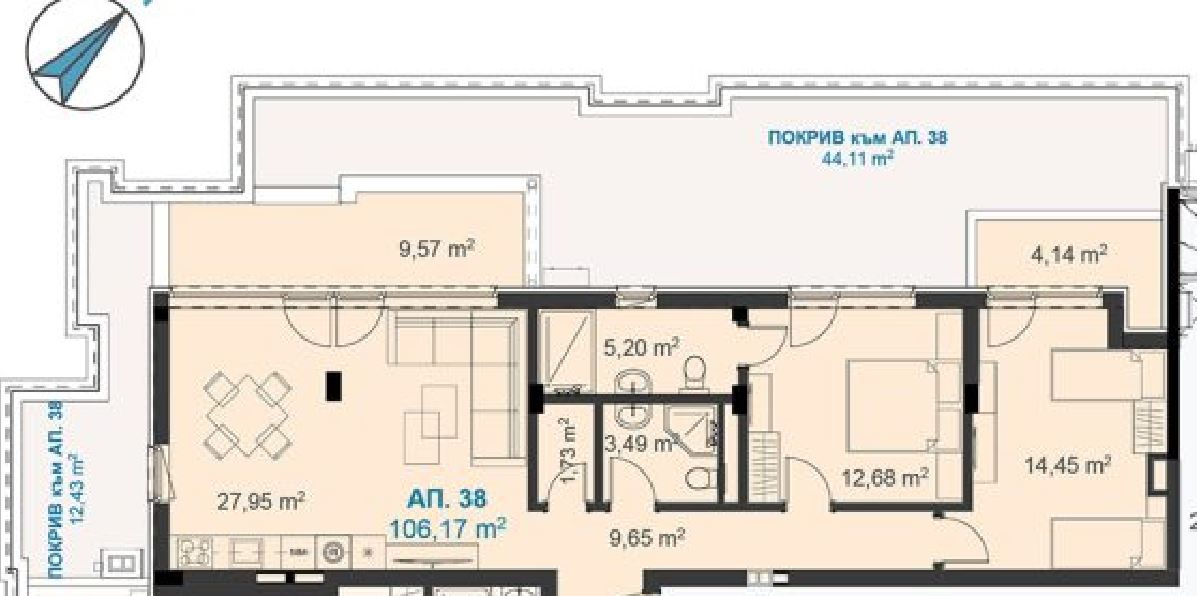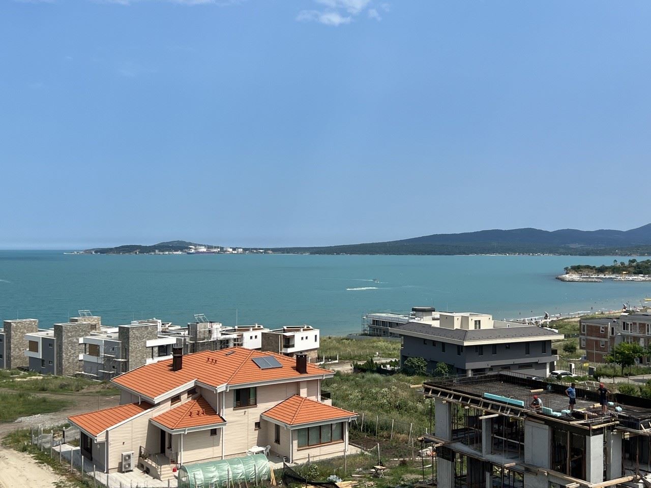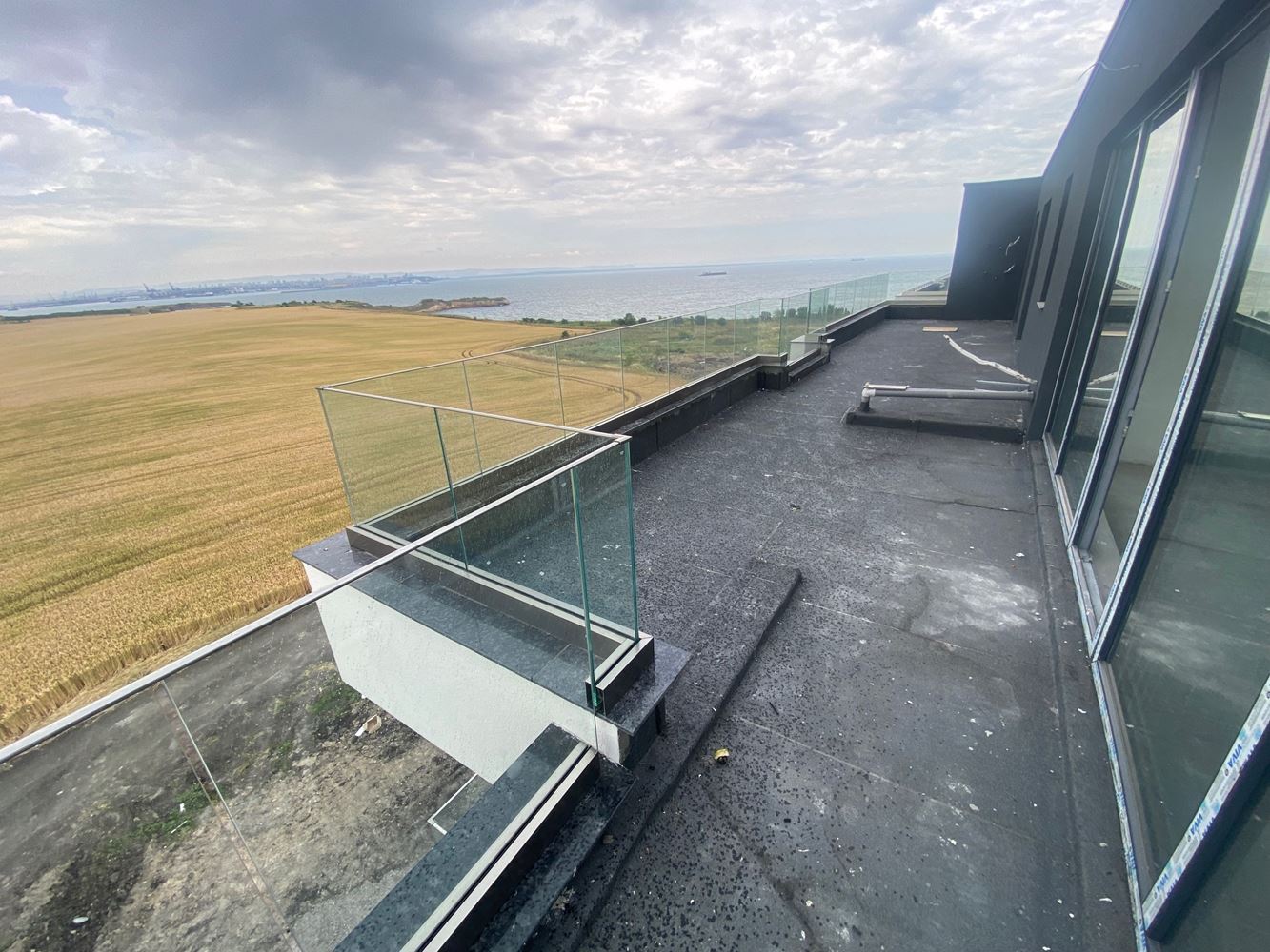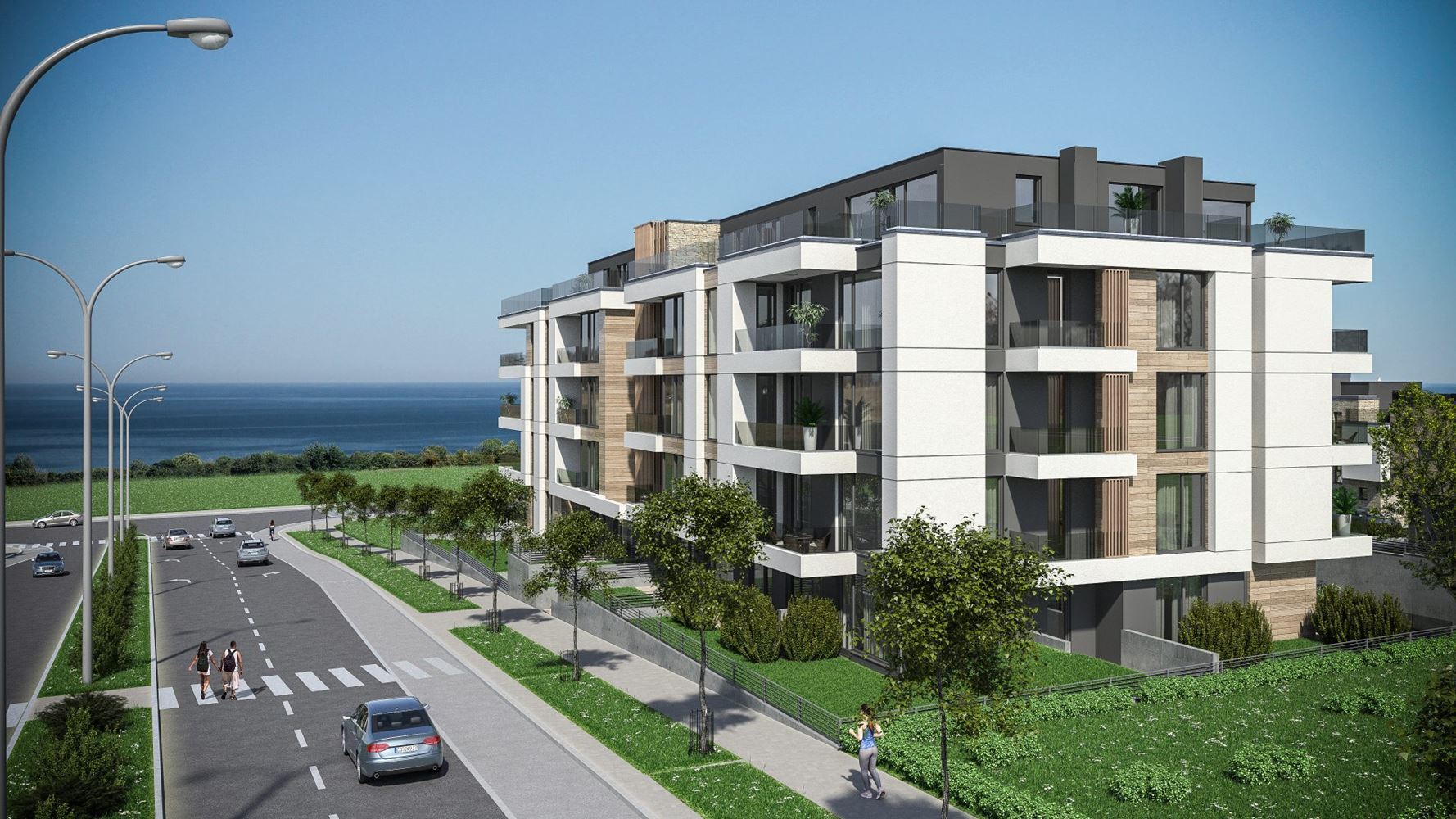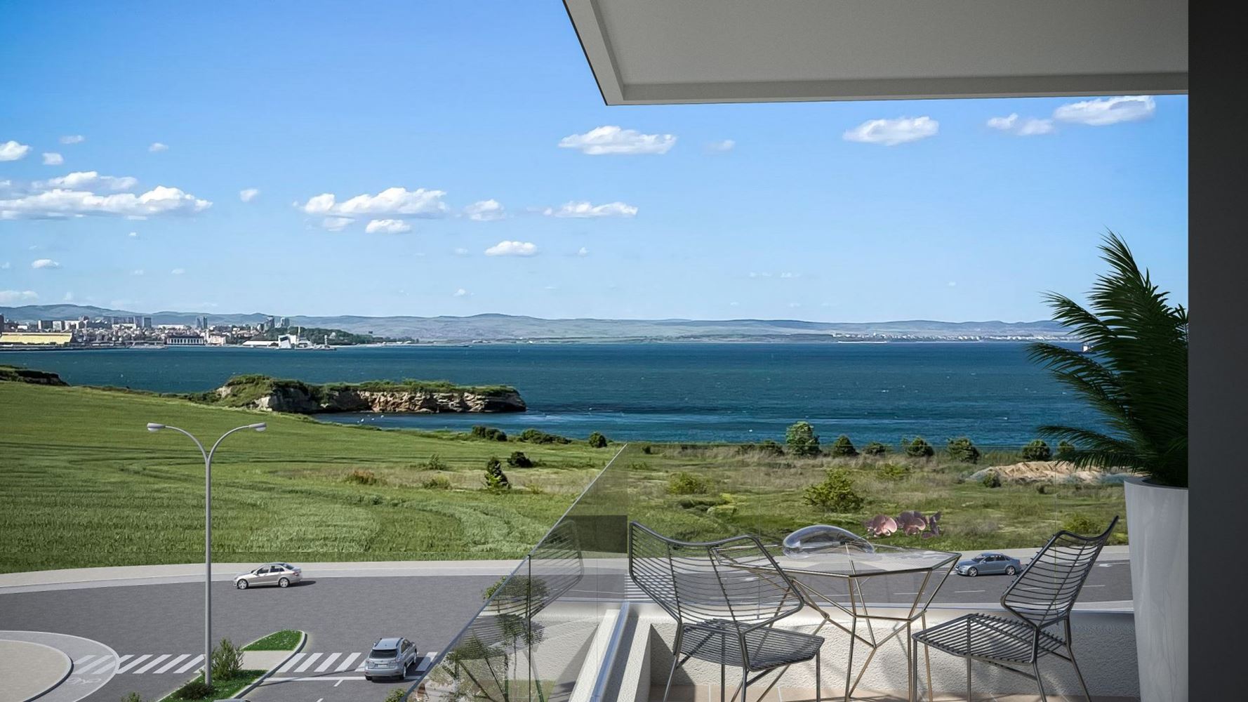 Two-bedroom flat in a stylish new development in the smallest and fastest growing neighbourhood of Burgas. Kraimorie, the seafront quarter, has become an alternative in recent years and property prices are reasonable. The flat is located in a compact four-storey building with one entrance. There are just 34 apartments in the building, each of them overlooking the Bourgas Bay and the beach, just 100m away. The 158.35m2 flat is located on the fifth floor. It has a corridor, a living room with kitchen area, two bedrooms, two bathrooms with WC and two balconies. The property is for sale unfurnished and unfurnished. The common parts are completely finished and tiled with porcelain stoneware.