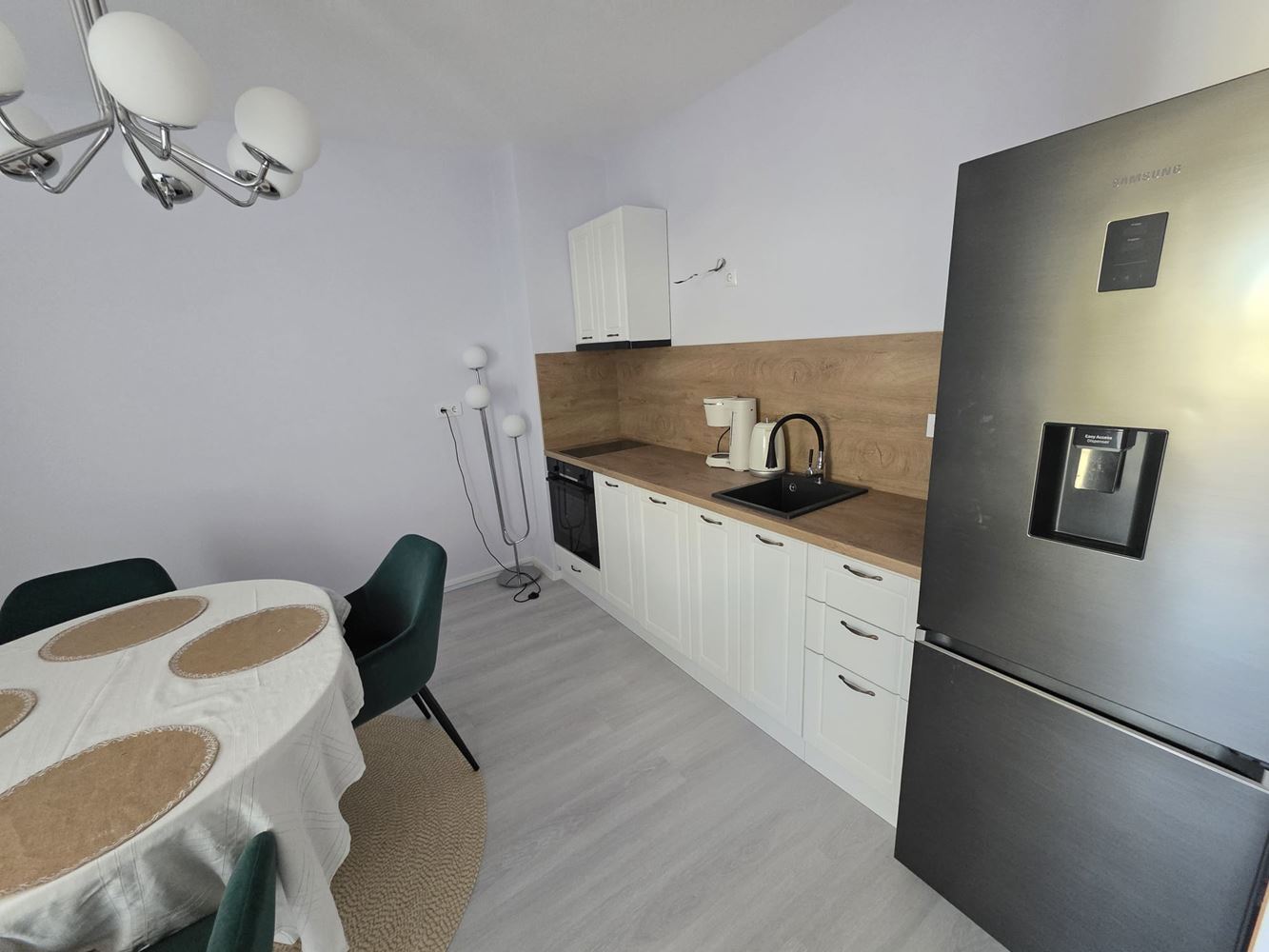 We offer for sale an amazing two bedroom apartment located in the picturesque town of Sveti Vlas. With a total area of 77,70 m2, this renovated apartment offers modern living conditions, combining comfort and luxury. The apartment includes three rooms, making it ideal for families or couples looking for more space. The two bedrooms have been designed with attention to detail and offer comfort and privacy. The spacious living room is the perfect gathering place for family and friends. A balcony completes the living space, giving you beautiful views of the area and the opportunity to relax outdoors. The bathroom is modern and functional, and the presence of an elevator in the building provides additional convenience for the residents.