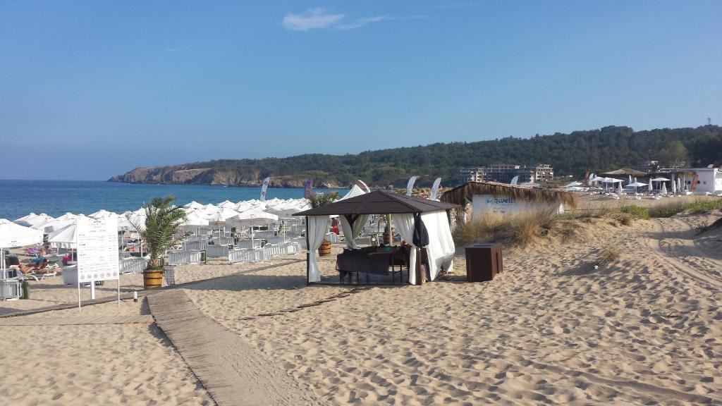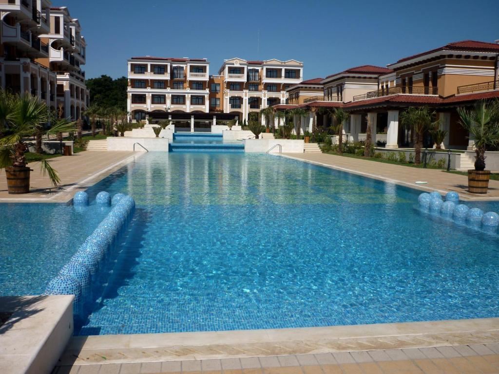 Two bedroom apartment in one of the best complexes on the south coast of Bulgaria. The area of the complex is fenced and guarded all year round. For the convenience of guests and owners of the complex there are many services and amenities, including several swimming pools, playgrounds, restaurant, cafe, bar, grocery shop and more. The 91.33 m2 flat is located on the first floor. The apartment is offered unfurnished and with Euro renovation, turnkey. The option is great for summer holidays, permanent residence, as well as an investment for renting.