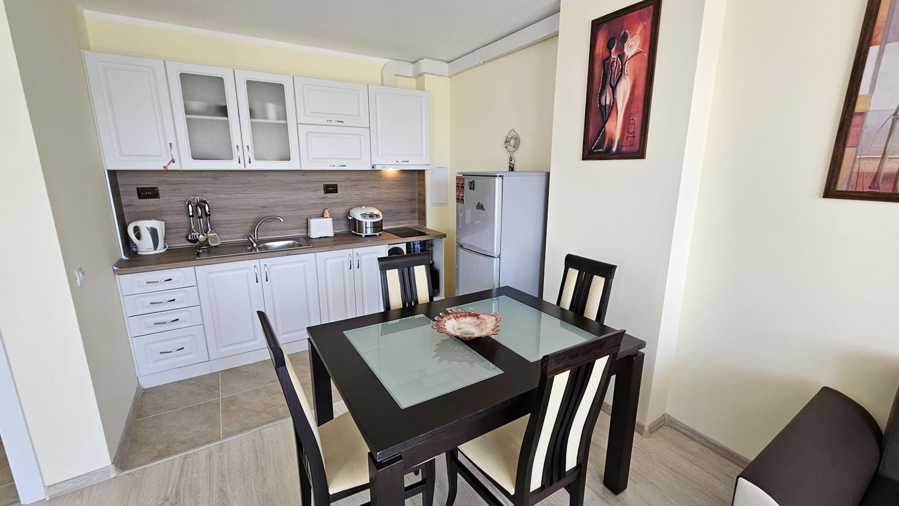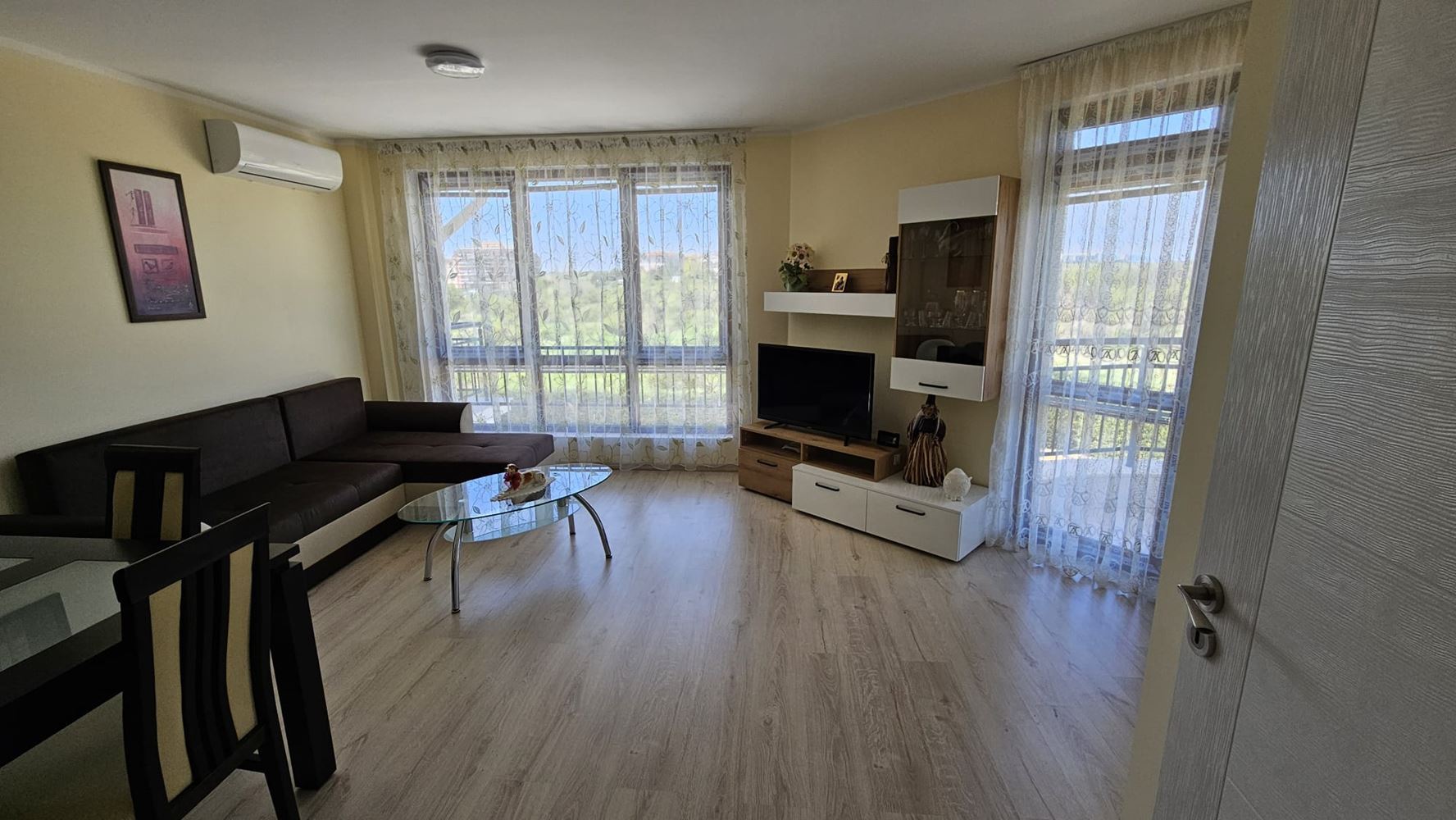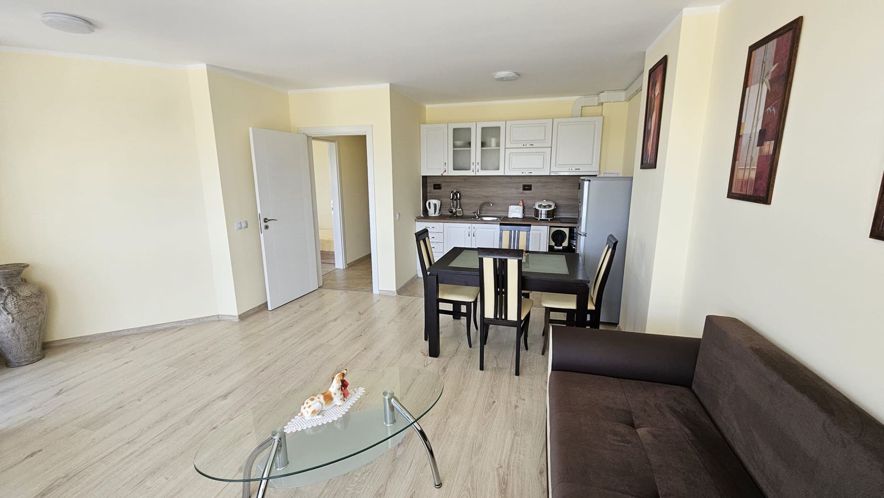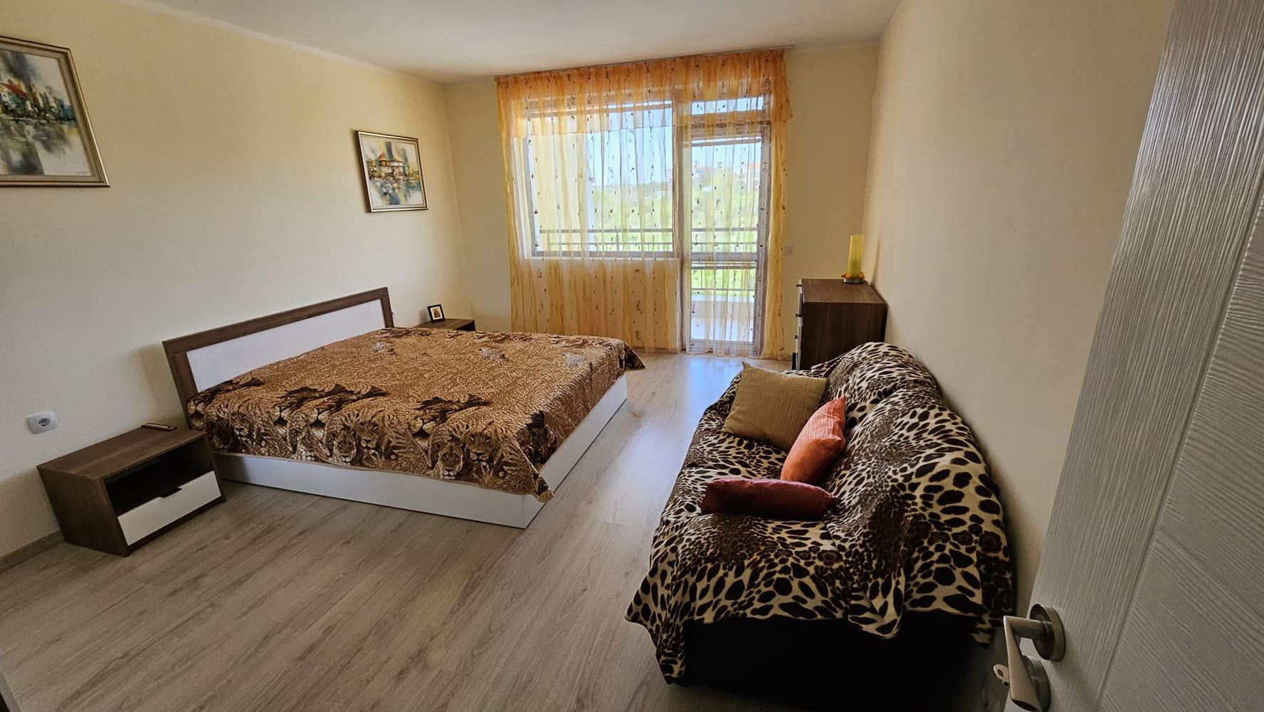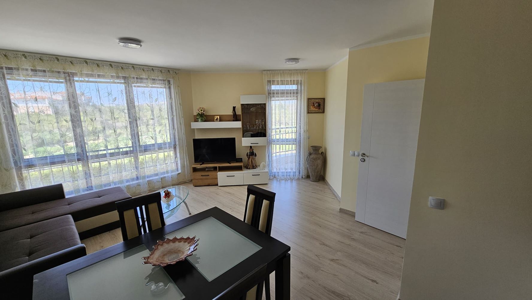 We present to you a fully furnished two bedroom apartment located in the attractive resort of Ravda, just 300 meters from the Black Sea. This impressive property with a total area of 111 m2 offers a spacious and functional design, ideal for both year-round living and summer recreation. The apartment has three bright and comfortable rooms, including two cosy bedrooms, ensuring a homely feel and peace of mind. The apartment has one stylish bathroom equipped with all the necessary amenities. The two spacious balconies, offering views of the complex and surrounding area, are ideal for a morning coffee or an evening break.