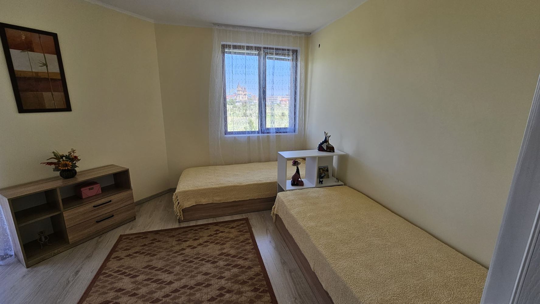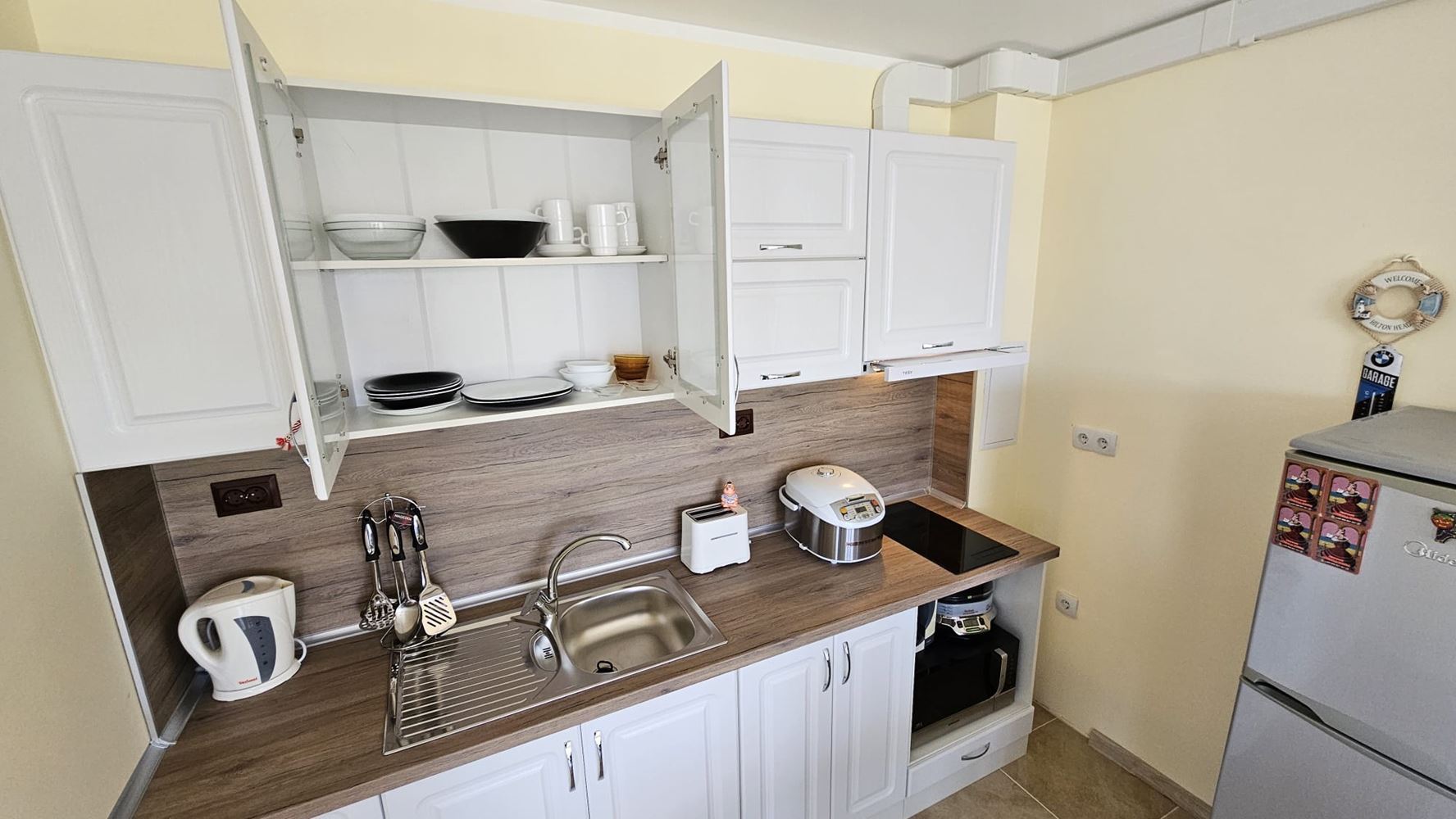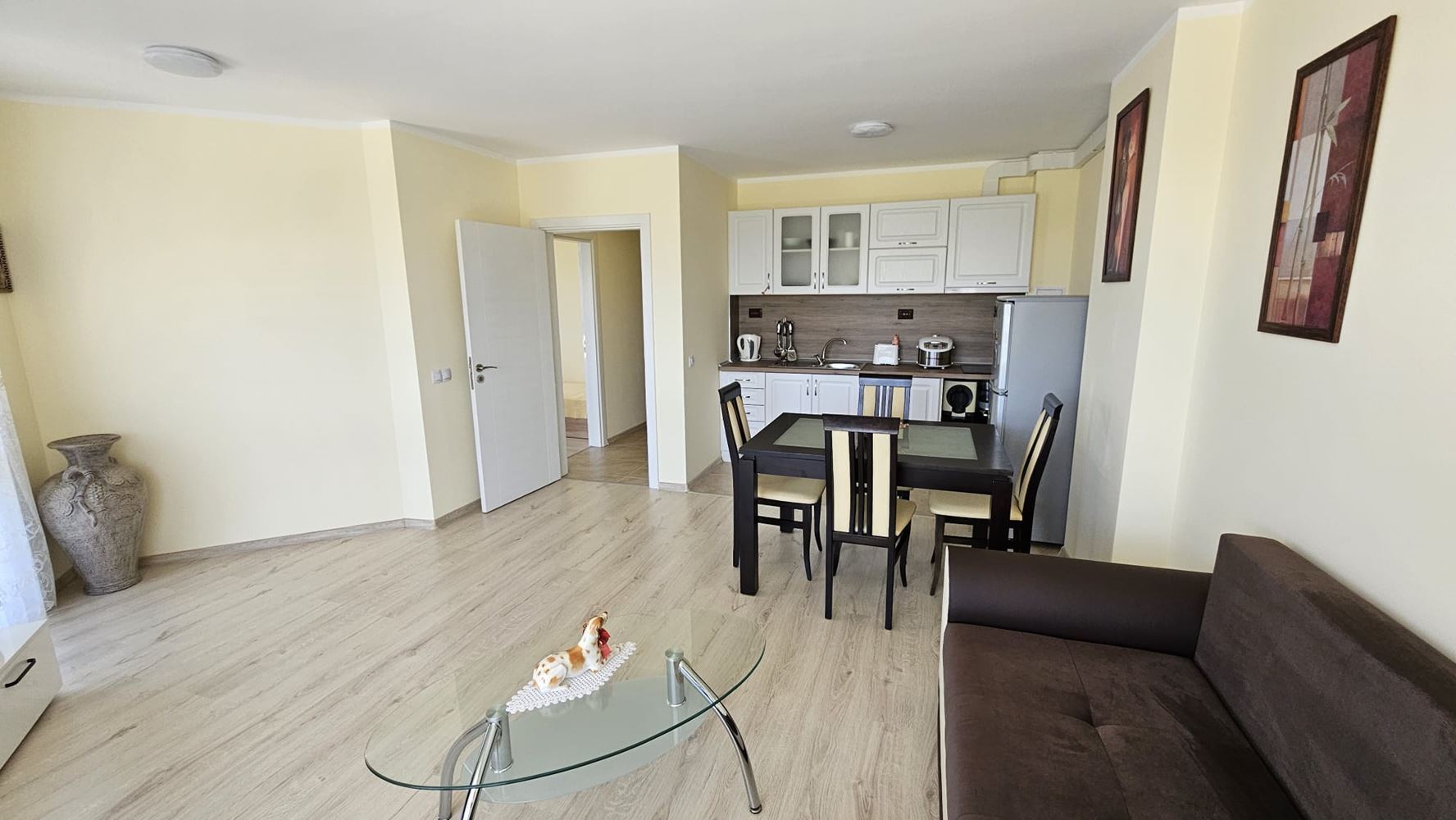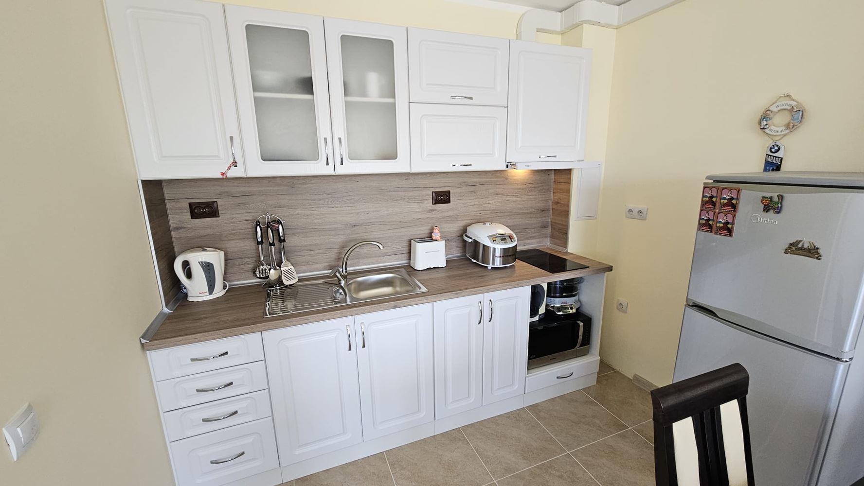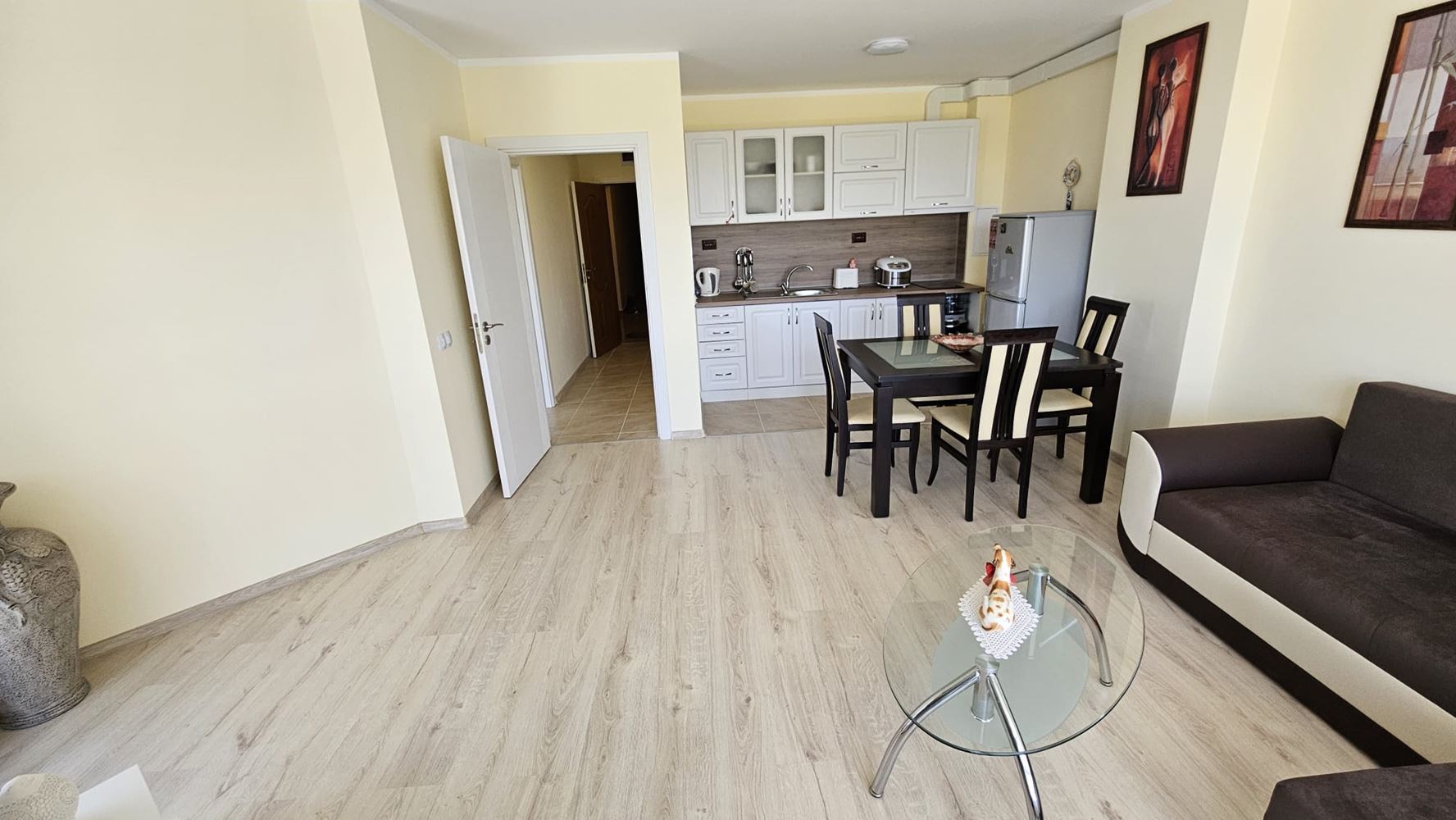 We present to you a fully furnished two bedroom apartment located in the attractive resort of Ravda, just 300 meters from the Black Sea. This impressive property with a total area of 111 m2 offers a spacious and functional design, ideal for both year-round living and summer recreation. The apartment has three bright and comfortable rooms, including two cosy bedrooms, ensuring a homely feel and peace of mind. The apartment has one stylish bathroom equipped with all the necessary amenities. The two spacious balconies, offering views of the complex and surrounding area, are ideal for a morning coffee or an evening break.
