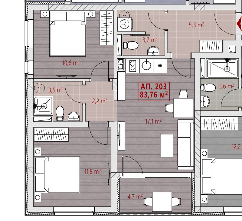 We present you an exclusive opportunity to buy a two bedroom apartment in the new part of Nessebar. This modern property offers comfort and coziness with a total area of 83,76 m2, skillfully distributed in three spacious rooms. Located in a newly constructed building designed for year-round use, the apartment features contemporary architecture and high quality building materials. The apartment includes two comfortable bedrooms, making it ideal for a family or those looking for extra space. The two bathrooms provide convenience even with multiple guests, and the spacious living room and kitchen create a feeling of spaciousness and freedom. From the balcony you will be able to enjoy wonderful views and fresh sea air. The building is equipped with an elevator, providing easy access to the apartment for all ages.