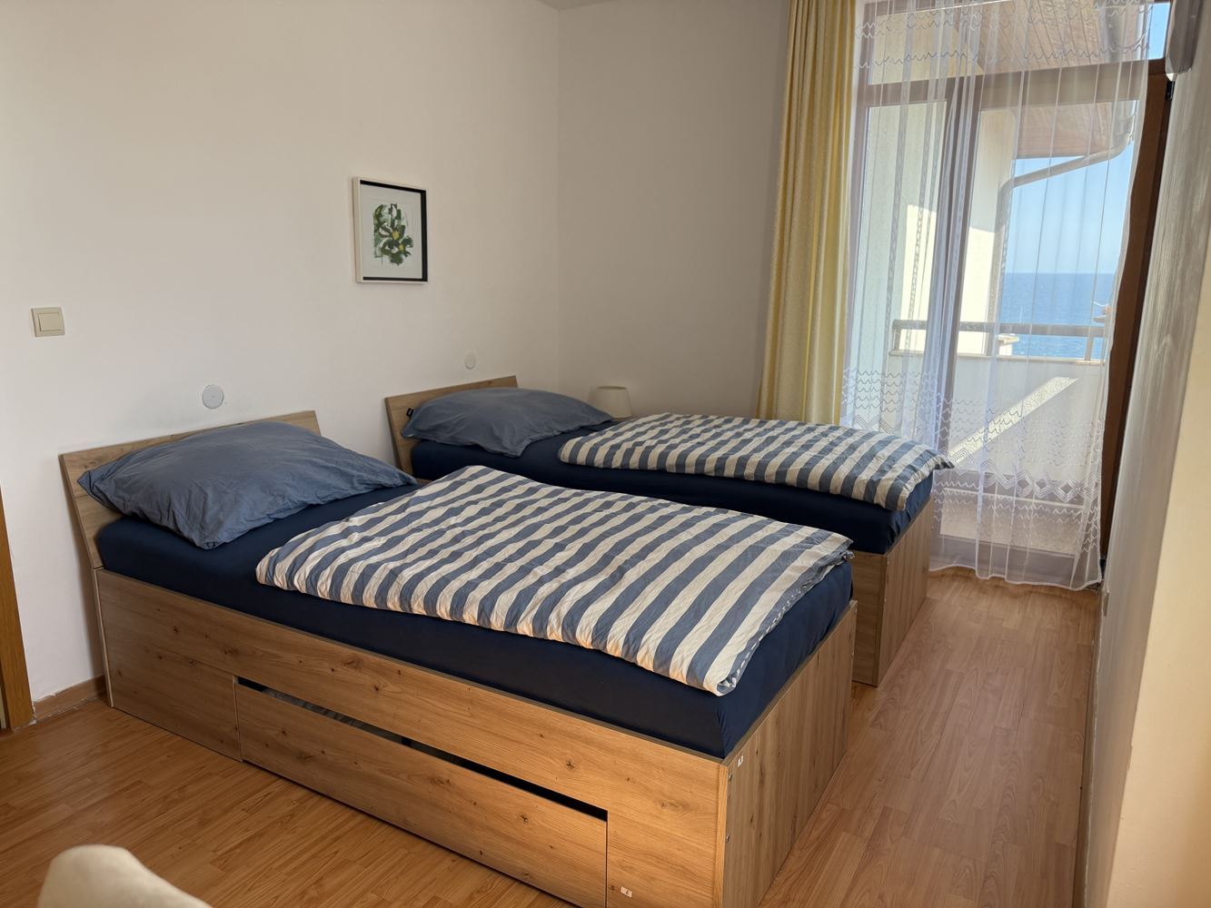 The apartment is located on the 3rd floor and has a total area of 116 m². It consists of a spacious living room with kitchen and dining area, two cozy bedrooms, and two bathrooms. In addition, the property features a large terrace with direct panoramic sea view. The apartment is fully furnished and equipped with household appliances, ensuring maximum comfort and a carefree stay.