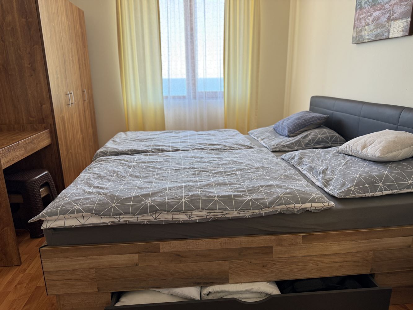 We present to you a luxury two-bedroom apartment with sea view in a stunning first-line complex in the beautiful town of Sveti Vlas. This apartment is perfect both for holidays and year-round living, offering an incredible level of comfort and enjoyment. The complex itself is renowned for its impressive infrastructure – considered one of the best on the entire coast. Here you can combine various outdoor activities with peaceful sea views.