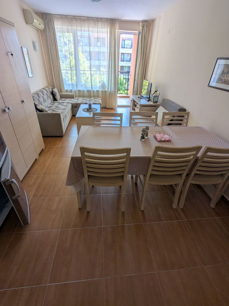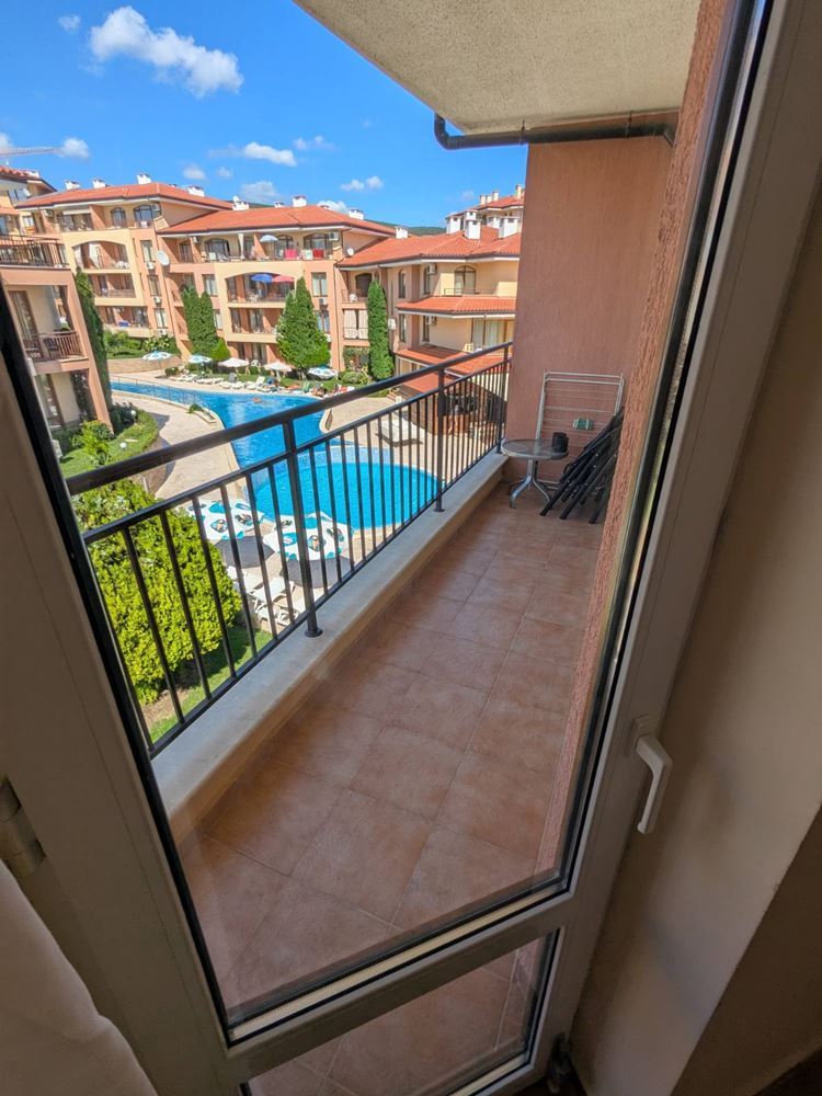 Fully furnished two-bedroom apartment with pool view in a complex in Sveti Vlas is located in a beautiful and quiet area 200 meters from the seashore. The complex is distinguished by its unique architecture, excellent infrastructure, good communications, and nearby bus stops, making it ideal for permanent living.
