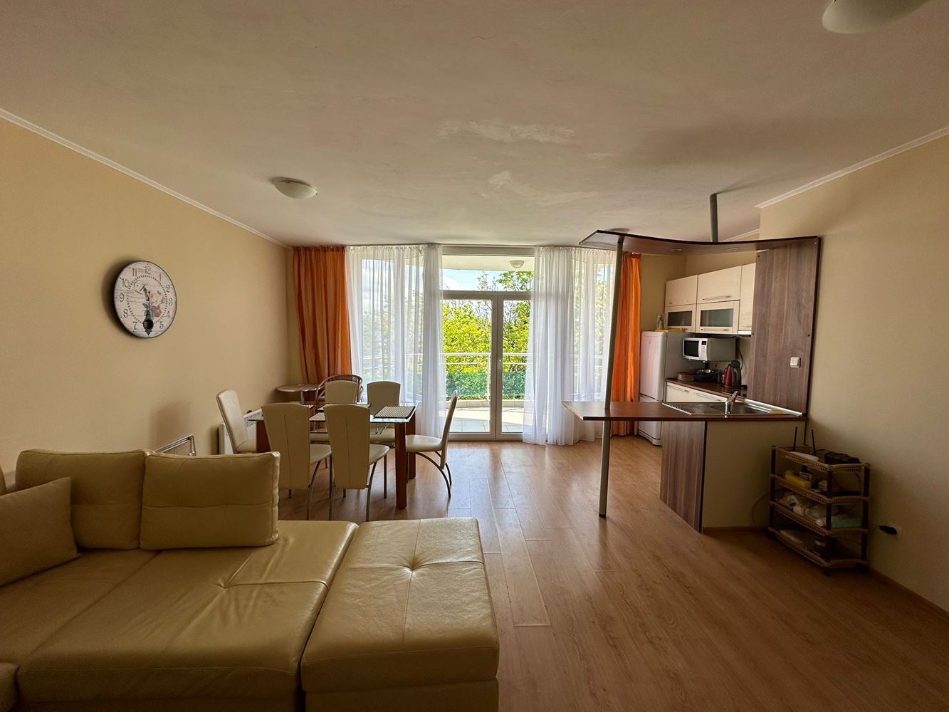 Large two-bedroom apartment just 50 meters from the sea. The building has already been commissioned. The apartment consists of an entrance hall, living room with kitchen, two bedrooms, three bathrooms with toilet and three balconies. The apartment is offered with furniture and appliances, with equipped kitchenette. Beautiful apartment complex with beautiful grounds surrounded by green hedges. From the balcony overlooking the landscaped area. Suitable for permanent residence due to the proximity to urban infrastructure. On the site, in addition to the building, there are swimming pool with an adjacent area for recreation and sunbathing, richly landscaped area and an area for parking. The complex has a fitness room, game room, restaurant, children's playground. Parking in the complex is guarded.