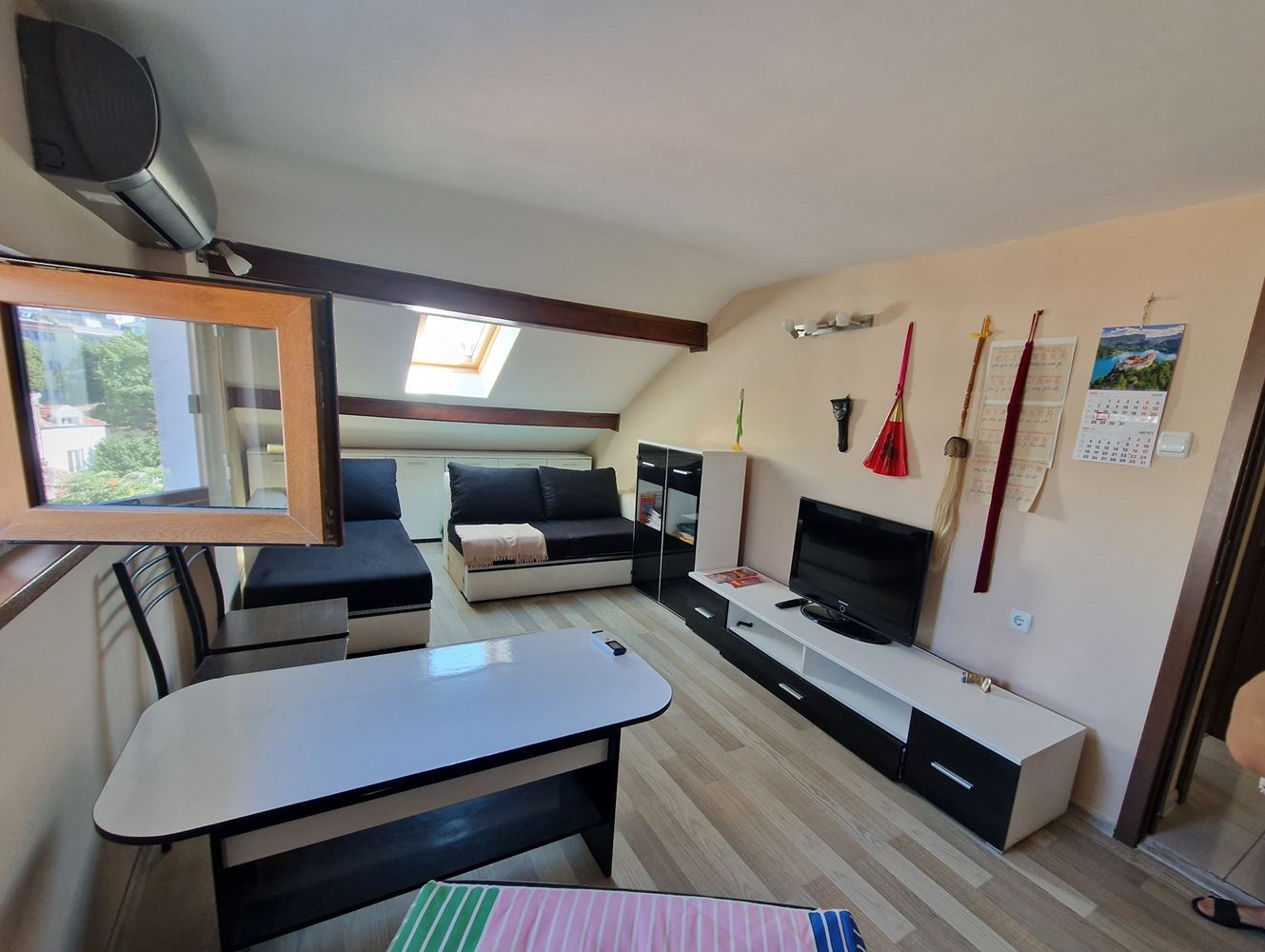 We present you a cozy and functional two-bedroom apartment with a total area of 60 m2, located in the very center of Burgas - on a quiet and peaceful street, just a 10-minute walk from the sea. The property is located on the third (top) floor of a well-maintained building without an elevator, with a Certificate of Completion (Act 16) and no maintenance fee – an extremely practical choice for both personal use and investment. The apartment is in excellent condition, without moisture or leaks, and is sold fully furnished and equipped – ready to move in or rent out immediately. The space is optimally utilized and offers comfortable living in an urban environment.