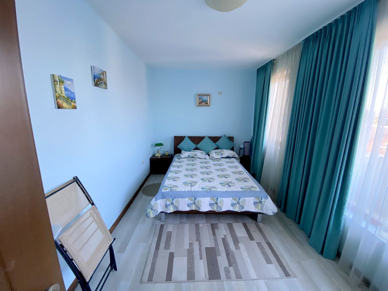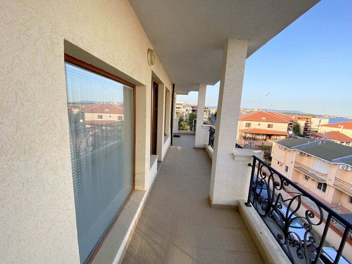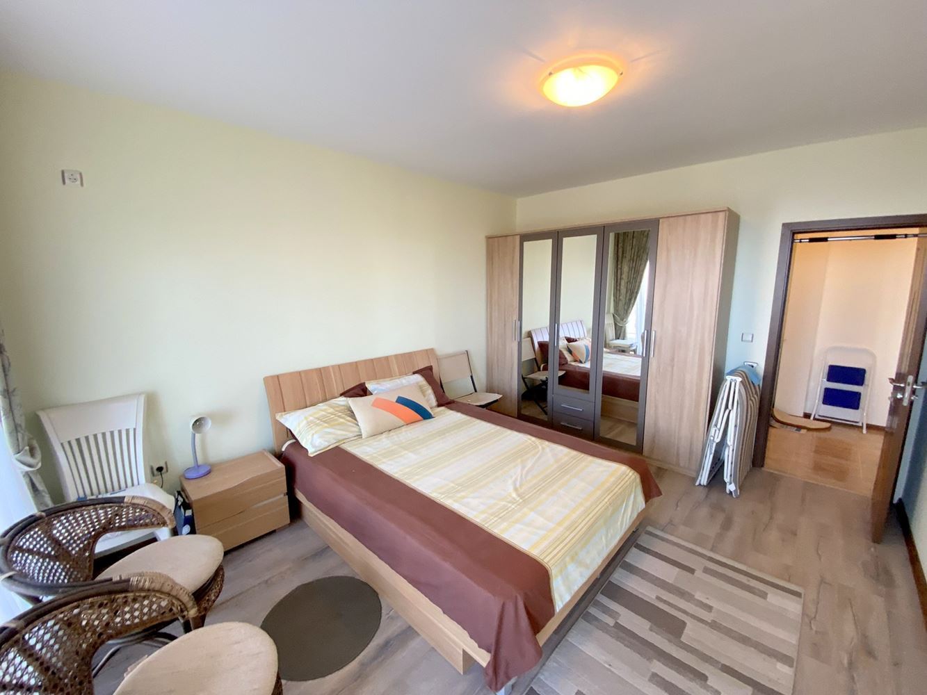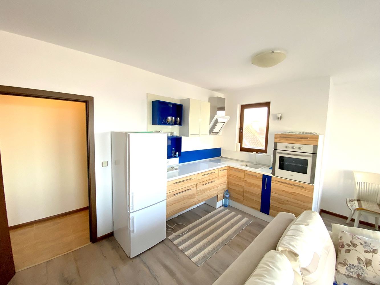 The two-bedroom apartment, located just 50 meters from the sea, represents an excellent accommodation in Ravda resort with a great location and modern design. Near the complex there are many infrastructures such as cafes, restaurants, stores, vegetable stores, pharmacy and bus stop. The complex where the apartment is located is small and cozy. It offers beautiful sea and mountain views, which makes it attractive for vacation and living. The living space is 105 square meters, which makes this apartment spacious and comfortable to live in. The apartment has a corridor, living room with kitchen, two bedrooms, two bathrooms with shower and toilet and a large terrace with stunning sea and mountain views. The building is characterized by modern design and high quality construction, which gives it a stylish and modern look.
