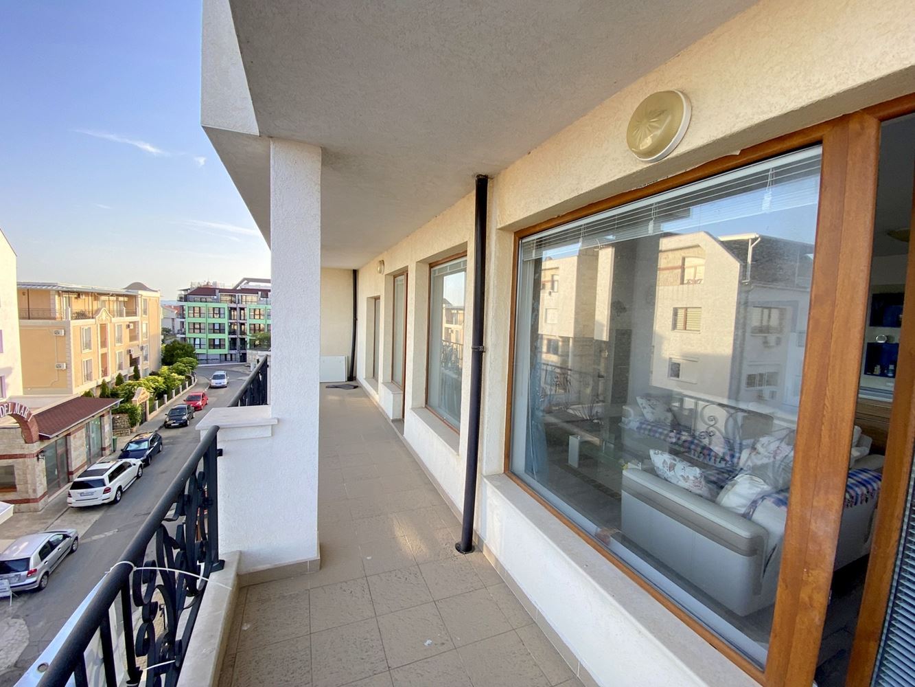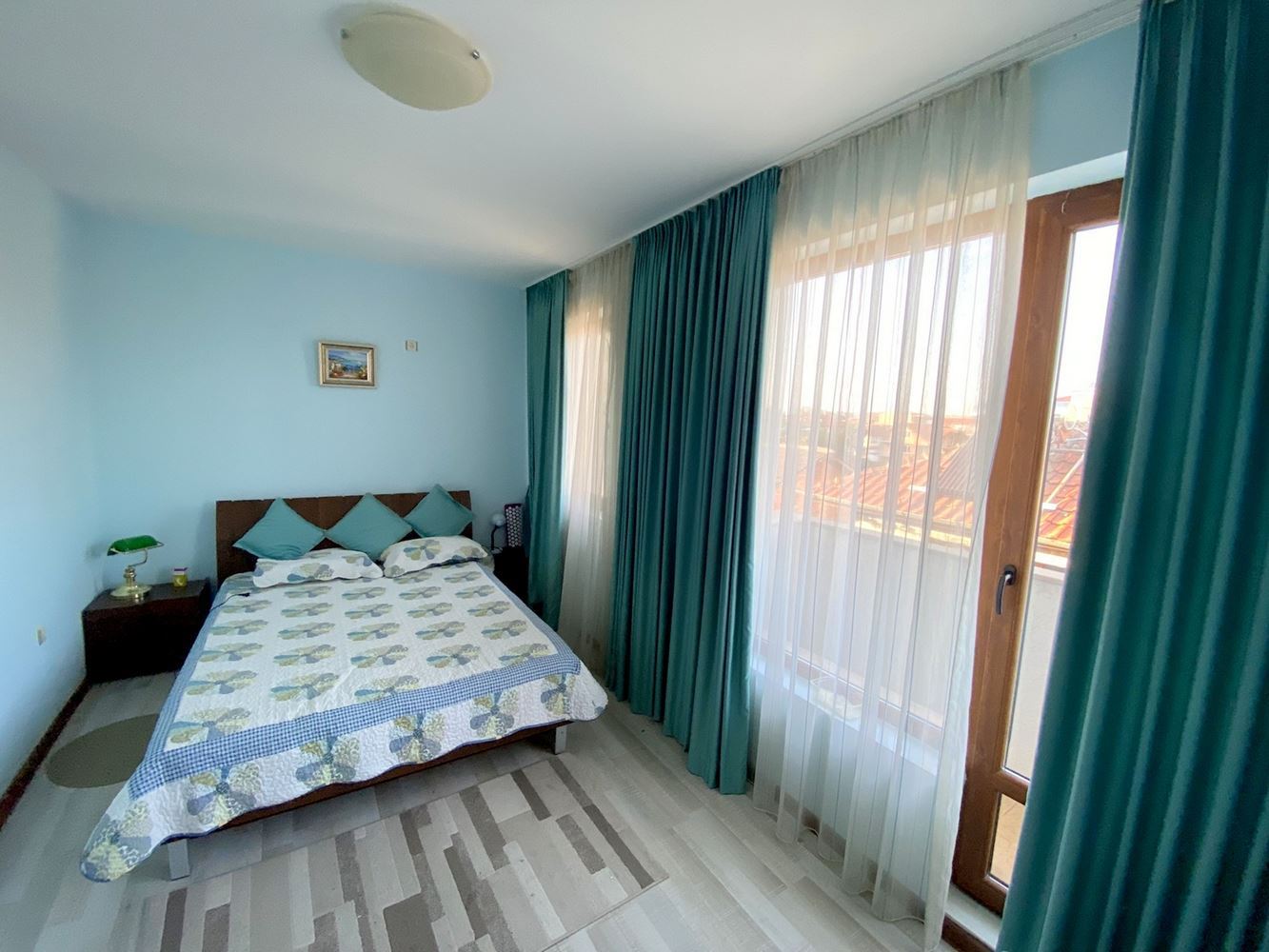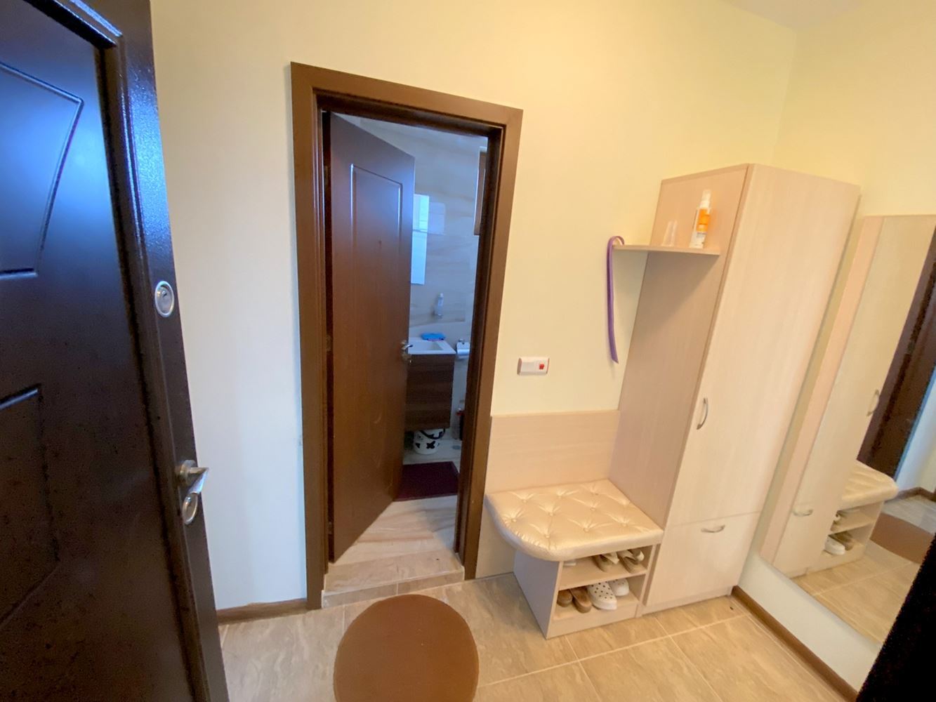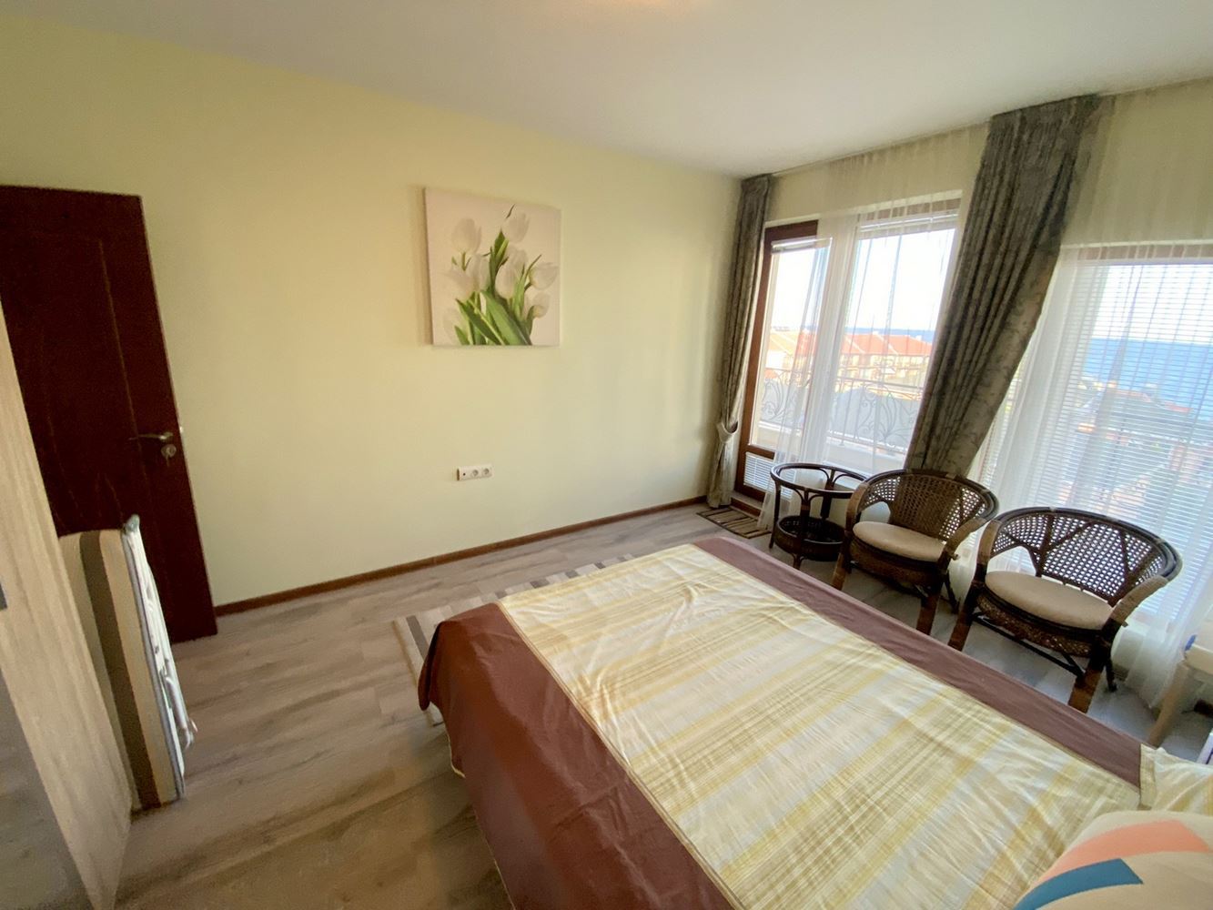 The two-bedroom apartment, located just 50 meters from the sea, represents an excellent accommodation in Ravda resort with a great location and modern design. Near the complex there are many infrastructures such as cafes, restaurants, stores, vegetable stores, pharmacy and bus stop. The complex where the apartment is located is small and cozy. It offers beautiful sea and mountain views, which makes it attractive for vacation and living. The living space is 105 square meters, which makes this apartment spacious and comfortable to live in. The apartment has a corridor, living room with kitchen, two bedrooms, two bathrooms with shower and toilet and a large terrace with stunning sea and mountain views. The building is characterized by modern design and high quality construction, which gives it a stylish and modern look.
