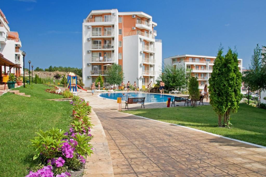The complex in which the property is located offers a number of exceptional amenities, including 18 swimming pools, some with artificial waves, free umbrellas and sun loungers, an outdoor fitness center, and three exquisite restaurants with a bar. For your security and peace of mind, 24-hour security and maintenance are provided. Other attractive amenities include green areas, parking, a tennis court, and a sports hall.