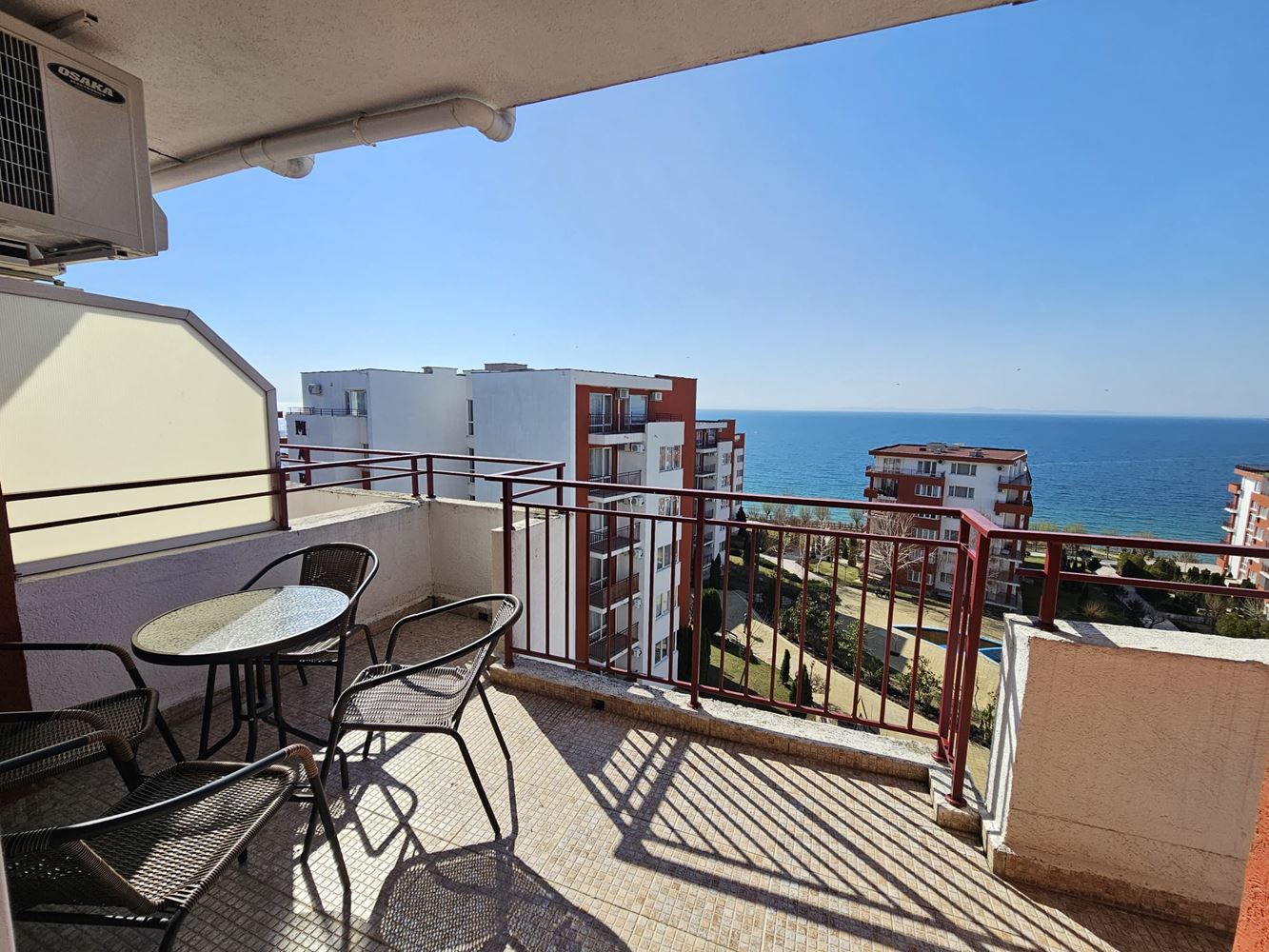 We present to you an exclusive two bedroom apartment with panoramic sea views, located in the beautiful resort of Sveti Vlas. With a total area of 105 m2, this impressive property is located on the sixth floor of a modern complex, offering modern comfort and high standards of living. The apartment features a spacious living room combined with a fully equipped kitchen - the perfect place to create cosy memories with family and friends. The two bright bedrooms have a comfortable layout. There are two modern furnished bathrooms with WC providing comfort and functionality. One of the advantages of this apartment is the spacious terrace, which offers breathtaking views of the blue sea. The elevator in the building provides additional convenience for easy access to the apartment. The apartment is being sold fully furnished and is ready to move in, the furniture and appliances are of high quality and stylish design.