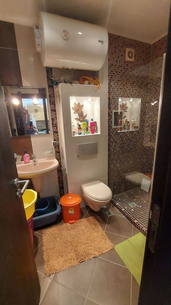 Two hundred metres from the beach, a two bedroom flat with a sea view. The flat is fully furnished with good furniture and appliances. It is ideal for all-weather living and for family holidays. It is located on the third floor, and the total area is 101 m2. Unique, aesthetic and very comfortable residential complex is an oasis on the coast of St. Vlas. It is separated from the picturesque yacht marina by only three hundred meters, which can be enjoyed from the open roof with a panoramic deck. There is a swimming pool, a Jacuzzi, a Finnish sauna and a fitness centre. There is a lift in the building, and the entire space is guarded by 24-hour security. The central part of the resort is a short walk away.