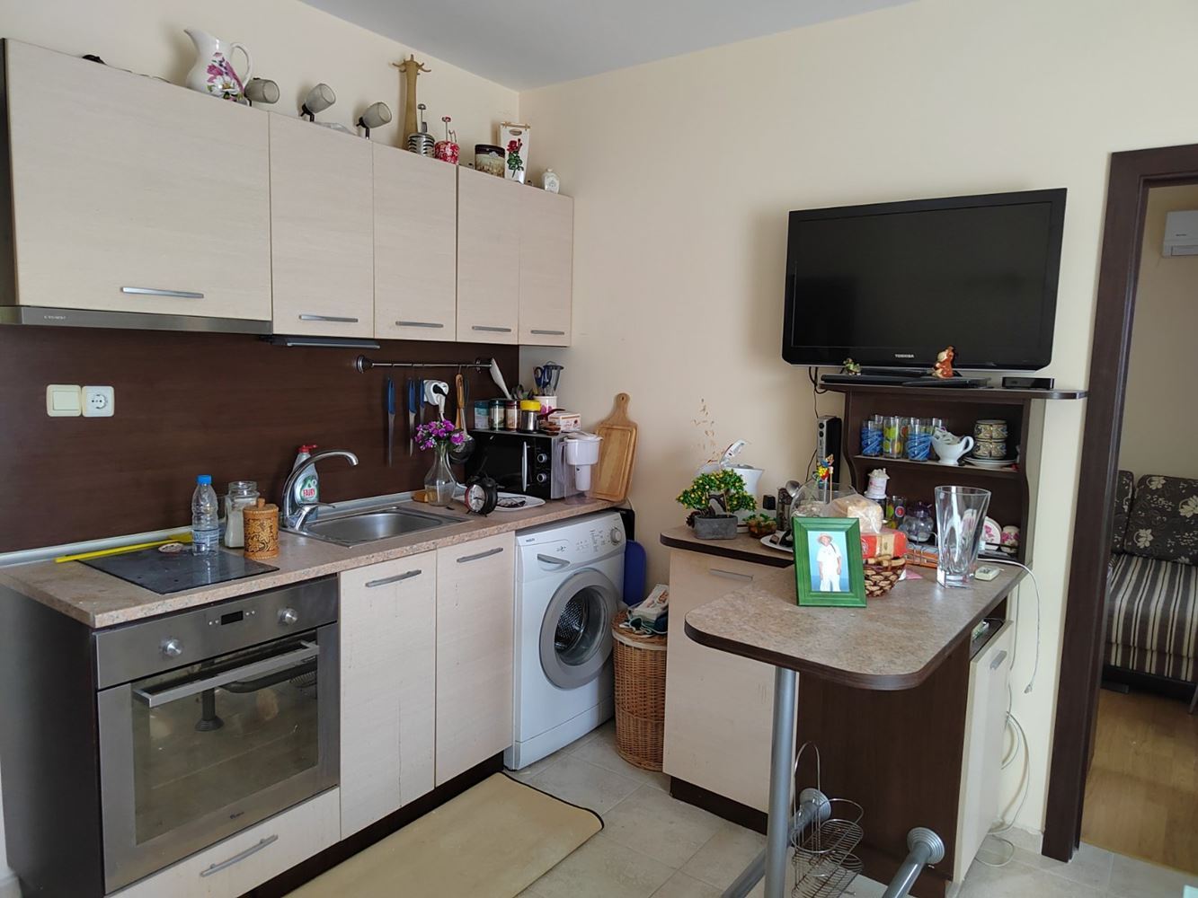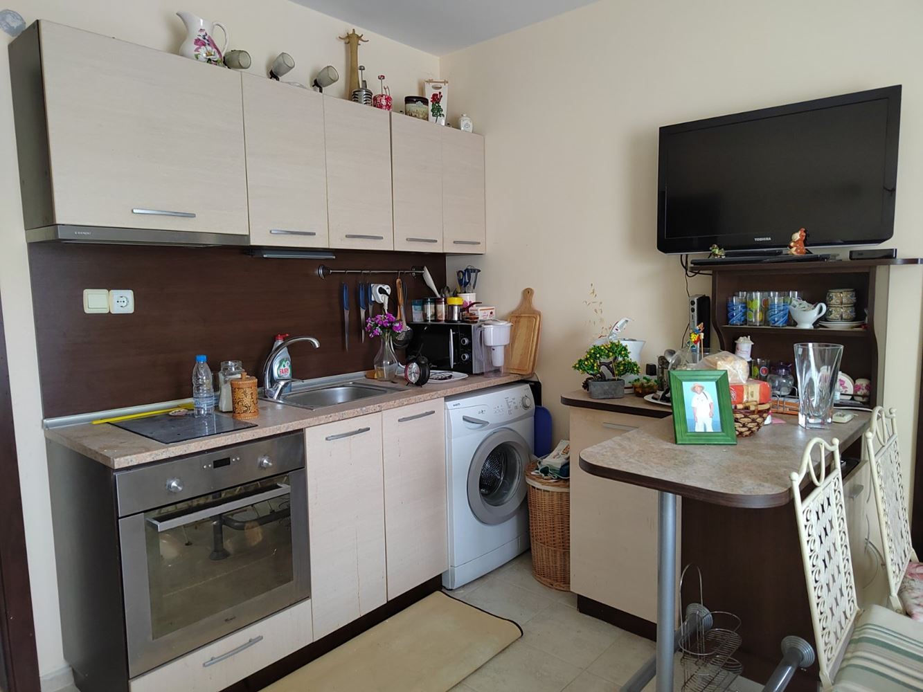 Two-bedroom compact apartment with total area 59m2 is located on the third floor in a small beautiful family complex in the seaside town of Ravda. The flat is sold furnished and equipped with WC, installed boiler and air conditioner. The complex is located 400 m away from the sea and sandy beach, five minutes walk to the centre of Ravda. Near the complex there are restaurants, supermarkets, cafes all year round. The complex has a beautiful recreation area with a swimming pool, landscaped patio with seating. The area is completely closed to unauthorized access.