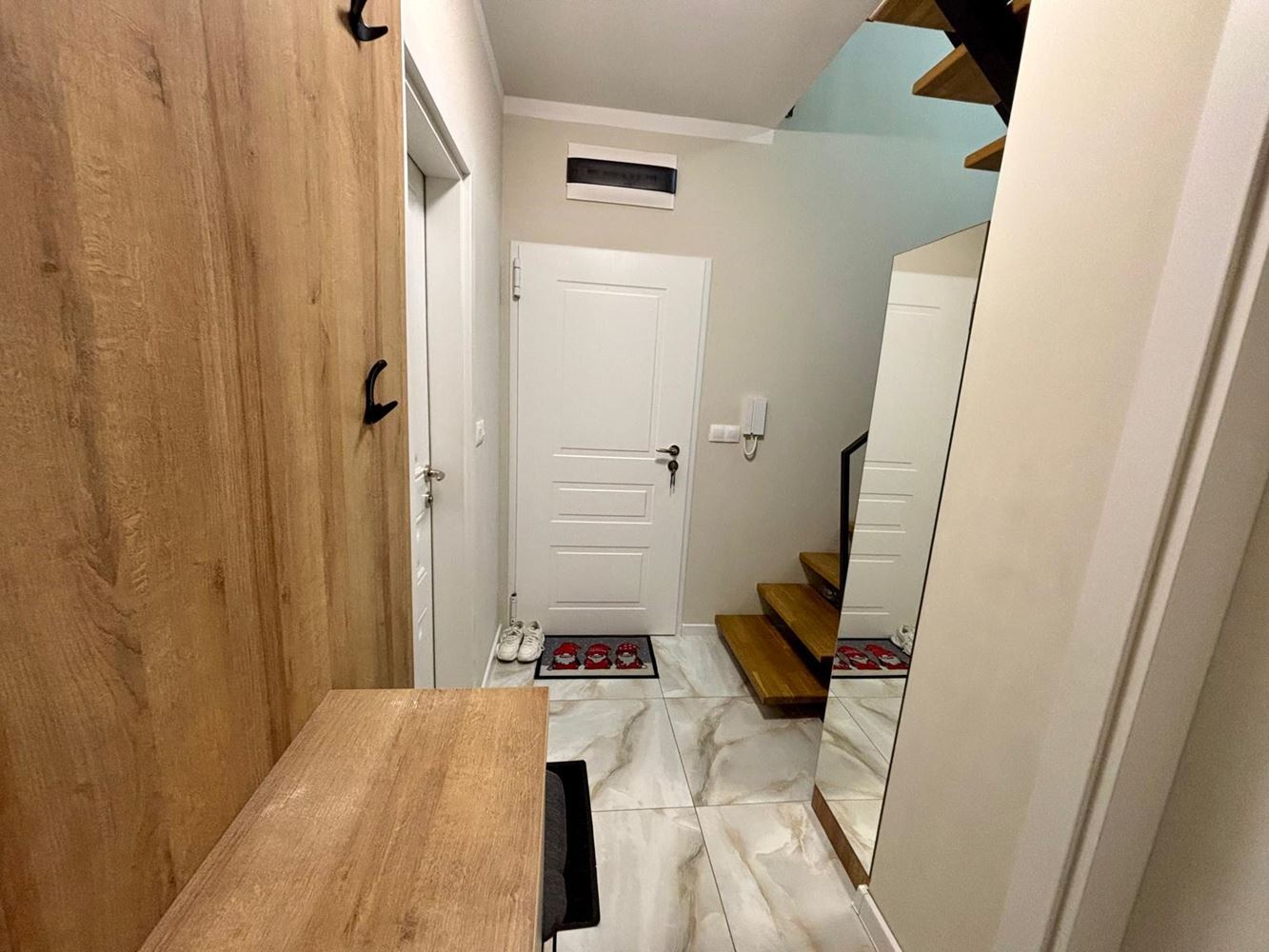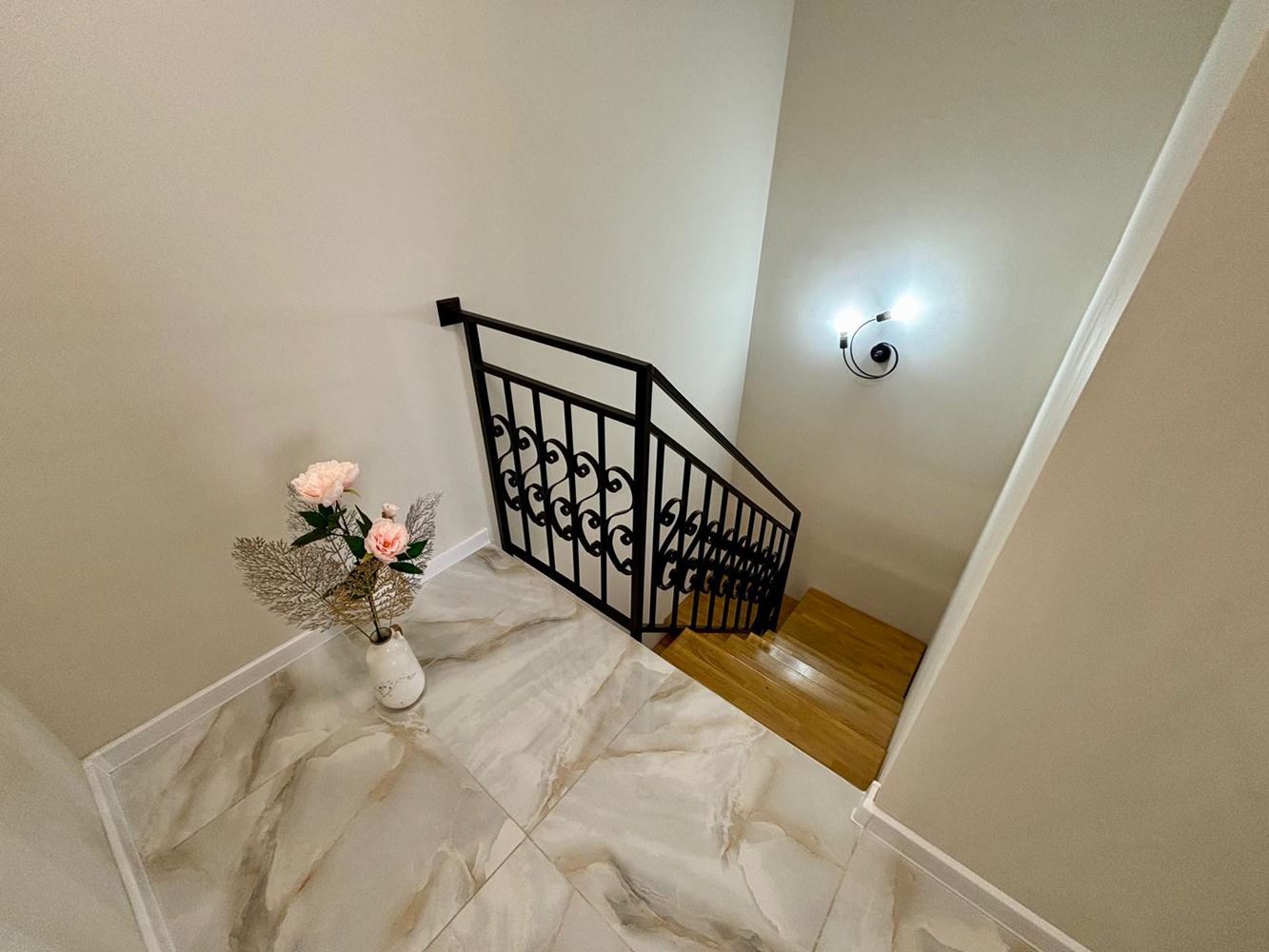The layout is thoughtfully designed for maximum comfort. On the main level, you will find a spacious living room with a kitchenette and dining area, naturally lit by large windows overlooking the pool zone. There is also a separate bedroom, arranged as a children’s room. Here, you can truly feel the privilege of the property – you have direct access to the beautiful pool area (27 m long and 15 m wide), creating the perfect setting for relaxation and sunny summer days. On the same level, there is one of the two bathrooms – modern and convenient for everyday use.