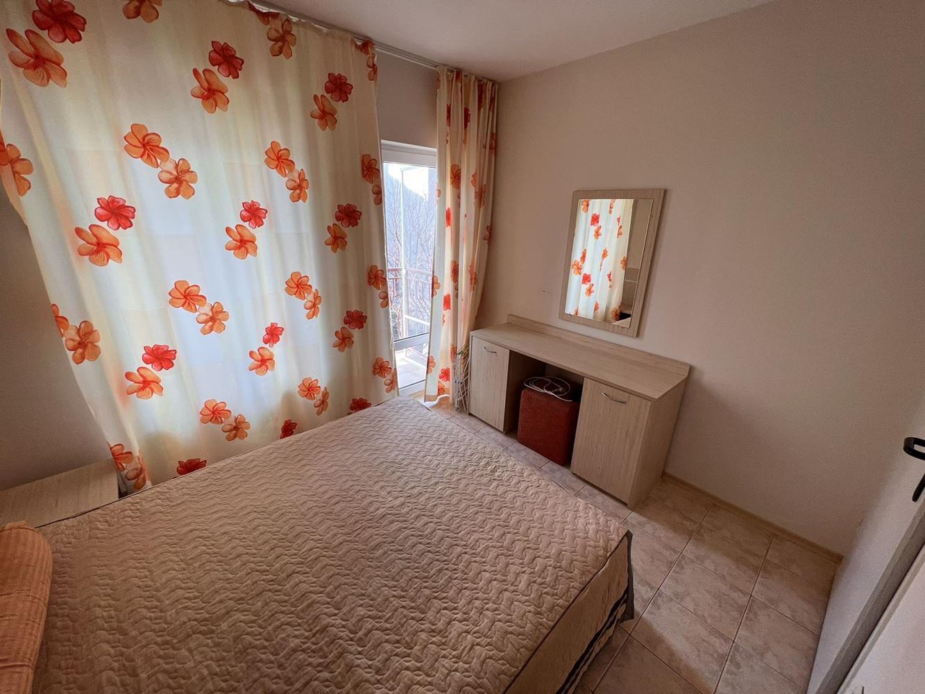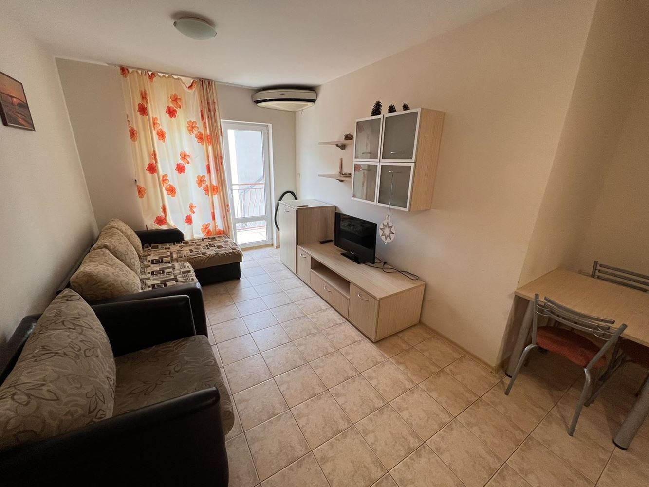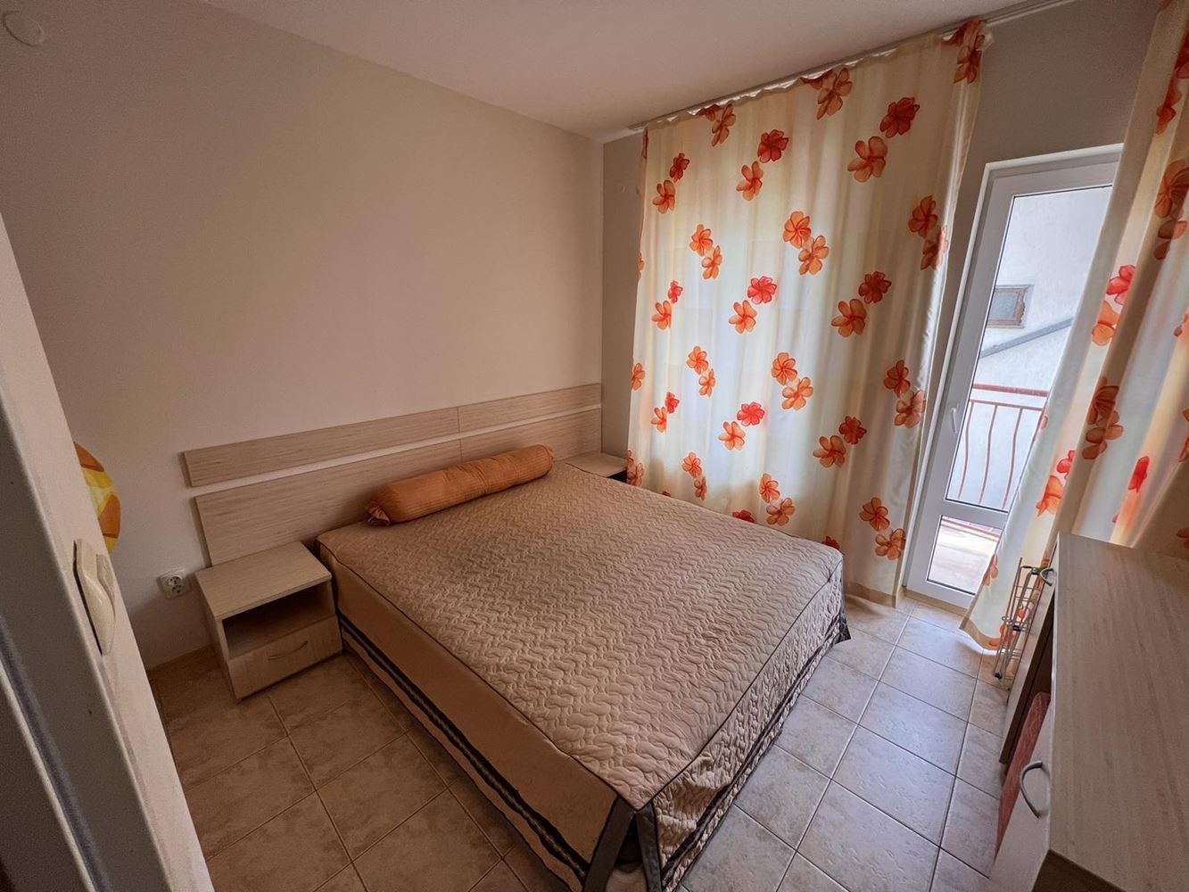 Two-bedroom furnished apartament is located in a complex on the second line of the sea between the resorts of Sunny Beach and Sveti Vlas. The apartment is suitable for year-round living, summer holidays and rentals. Flat of 70 m2 is located on the first floor and consists of an entrance hall, two bedrooms, living room with kitchenette, bathroom with toilet and a terrace. The apartment is sold with good quality furniture and appliances. The complex offers an area with a swimming pool with children's section, a playground, parking and security. Within walking distance there is a large supermarket, restaurants, shops, public transport stop. The beach is no more than 200 meters away.