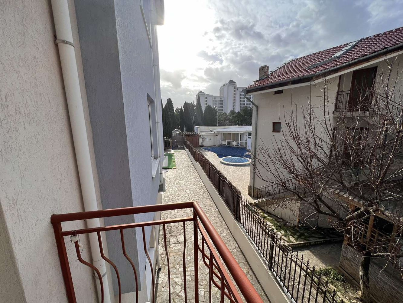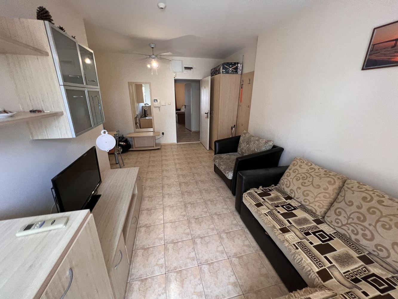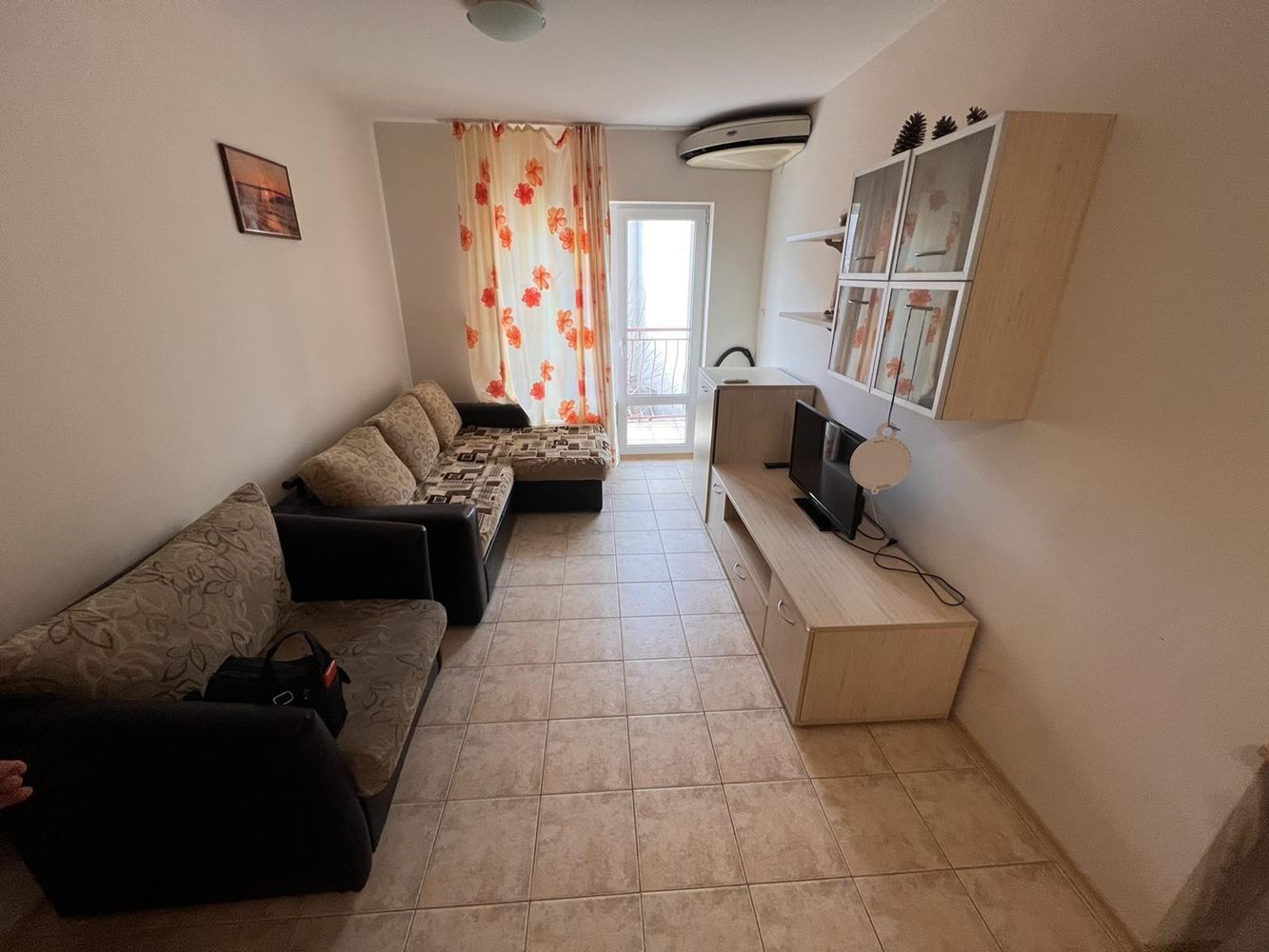 Two-bedroom furnished apartament is located in a complex on the second line of the sea between the resorts of Sunny Beach and Sveti Vlas. The apartment is suitable for year-round living, summer holidays and rentals. Flat of 70 m2 is located on the first floor and consists of an entrance hall, two bedrooms, living room with kitchenette, bathroom with toilet and a terrace. The apartment is sold with good quality furniture and appliances. The complex offers an area with a swimming pool with children's section, a playground, parking and security. Within walking distance there is a large supermarket, restaurants, shops, public transport stop. The beach is no more than 200 meters away.