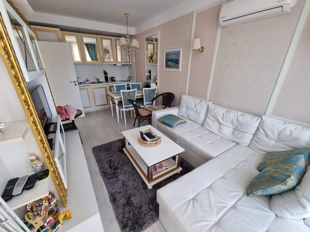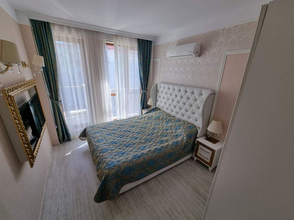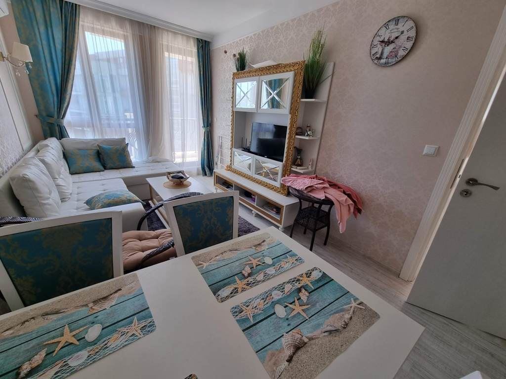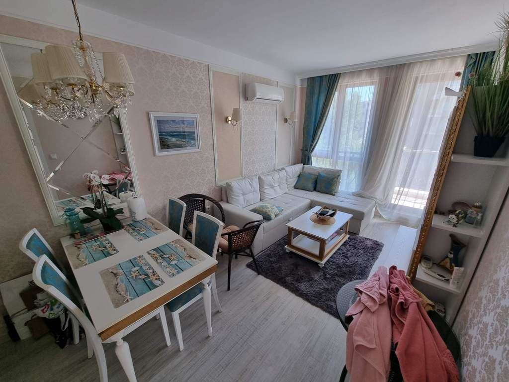 Two bedroom furnished apartment in the elite complex of Sunny Beach. The apartment is located in a quiet area, just 500 meters from the beach. This area provides ideal conditions for a quiet vacation, but is also close enough to the main attractions and infrastructure of the resort. The apartment has an area of 67 m2 and is located on the 4th floor. It is offered for sale fully furnished and equipped. The apartment has an excellent layout and a balcony where you can enjoy the fresh air and views of the surrounding area. The complex offers a wide range of amenities and activities for residents including a unique state-of-the-art spa with indoor pool, large landscaped surrounding space, an Olympic-sized outdoor pool and its own mini water park. This is the perfect place for relaxation and outdoor activities.