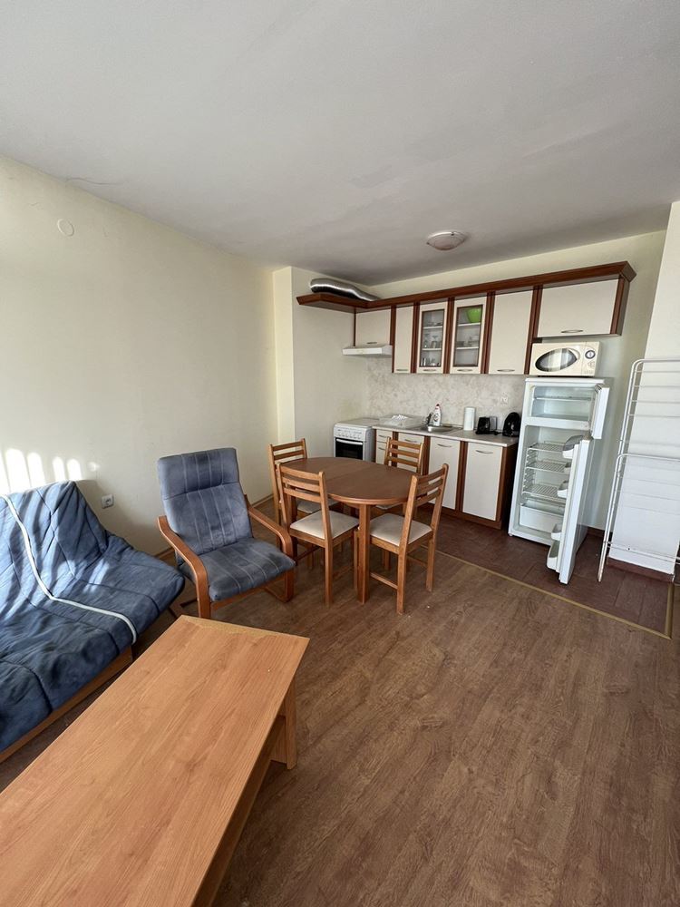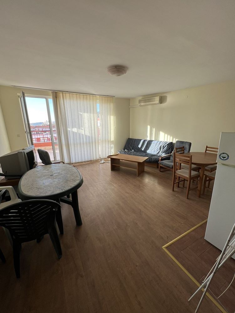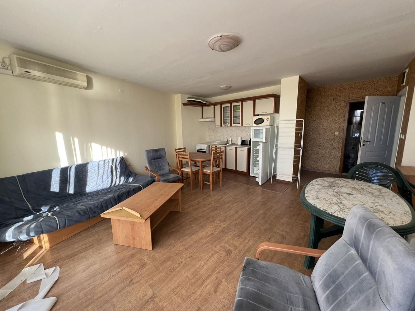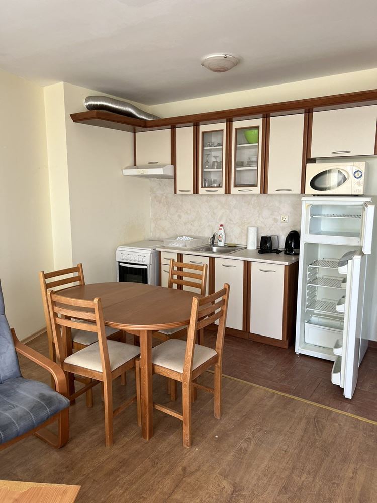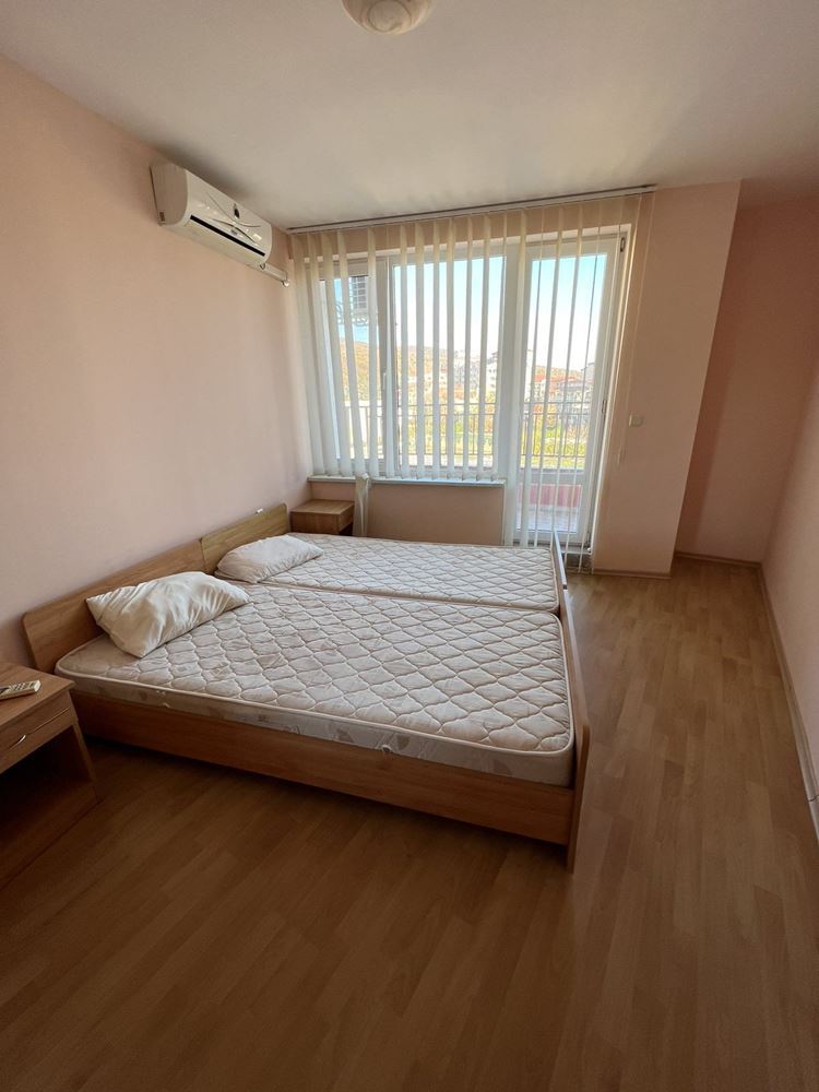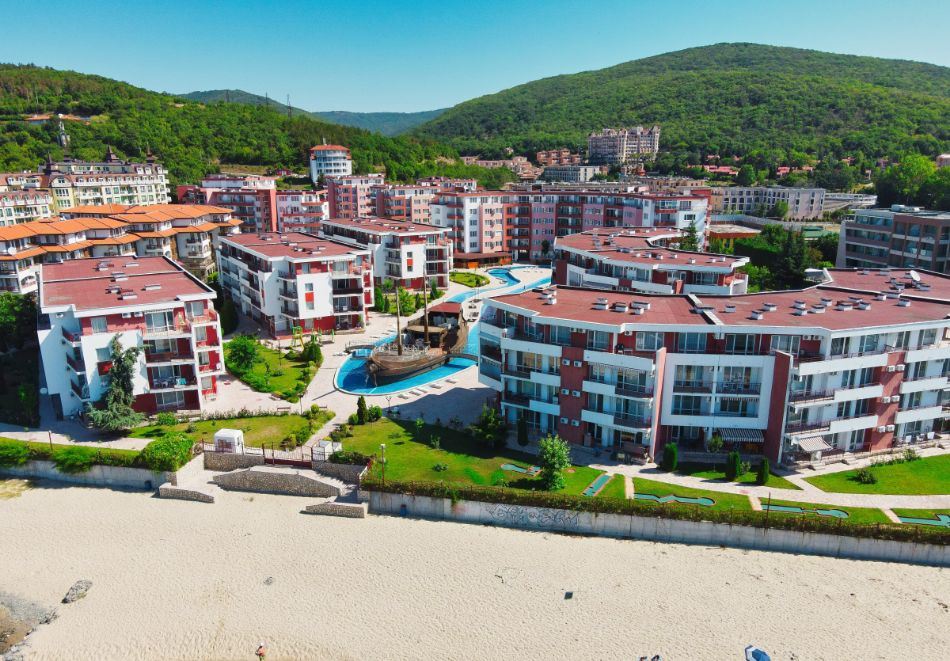 Two-bedroom penthouse with sea views in a lovely apartment complex located in a picturesque area in the elite resort of Elenite. In this location you can enjoy unique panoramic views of the sea, mountains and surrounding resorts. The complex has a large yard and its own sandy beach. This chic complex has swimming pools, four playgrounds with slides, fitness, sauna, beauty centre, massage parlour, supermarket, parking, security, restaurant bar, pizzeria, office, reception, parking and security all year round. The flat of 110 m2 is located on the fifth floor and comprises entrance hall, large living room with kitchen, two bedrooms, bathroom with WC, WC, storeroom and spacious balcony with view to the mountains and the sea. The flat is fully furnished.
