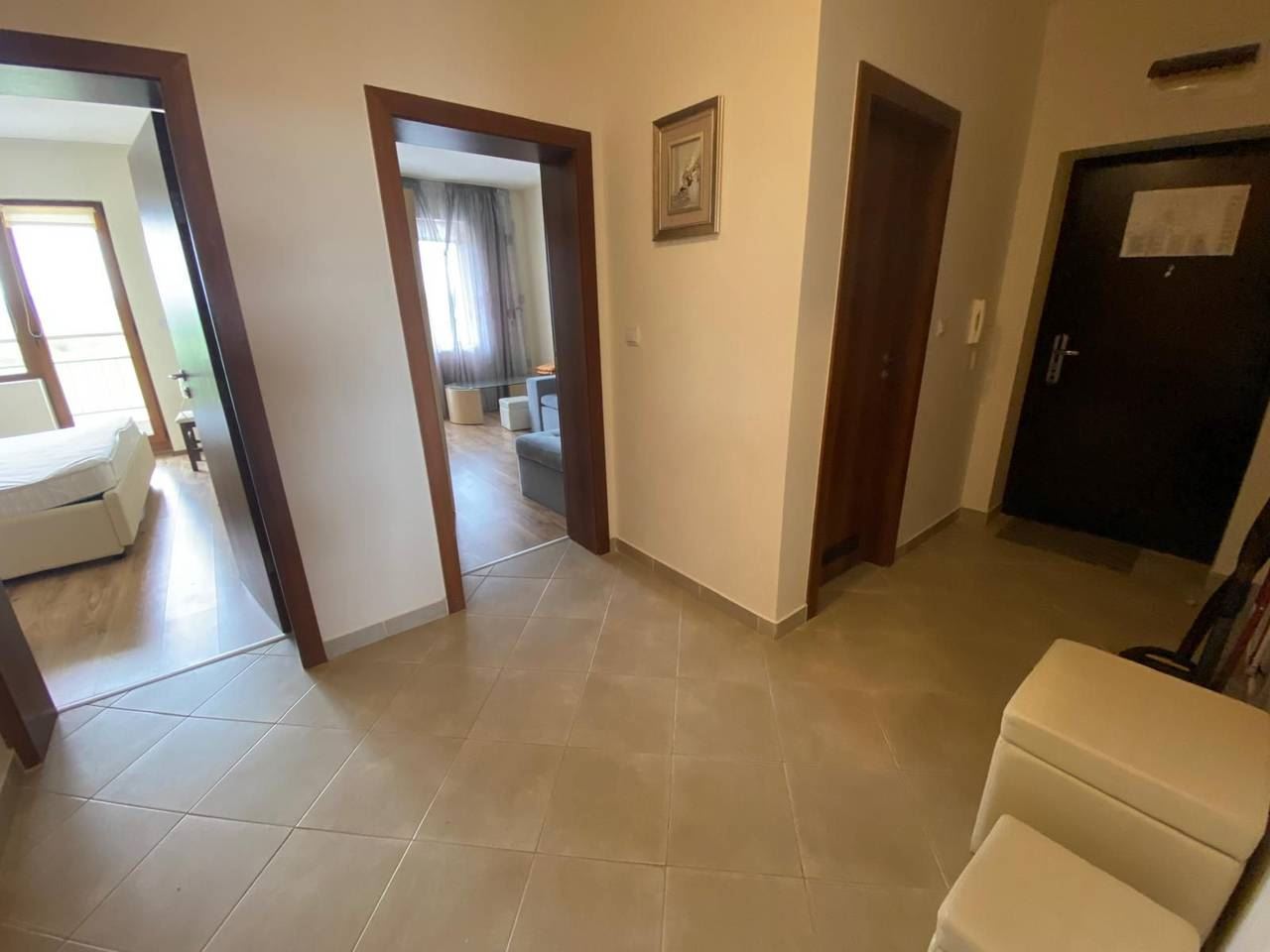 Two bedroom panoramic apartment in Obzor is an excellent place to live for those who are looking for comfort and coziness on the Black Sea coast. Located on the fifth floor, the apartment has an area of 100 m2, which provides enough space for comfortable living. The internal layout of the apartment includes an entrance hall, a spacious living room with a kitchenette, two separate cozy bedrooms, a terrace where you can enjoy your morning coffee or the sunsets, a bathroom and a toilet. The apartment is sold with furniture and appliances, making it ready to move in without any extra care. Obzor is a beautiful town with developed infrastructure and beautiful beaches, making it an ideal place for a pleasant holiday and quality living.