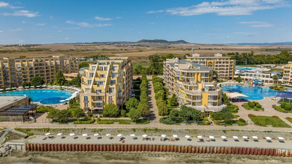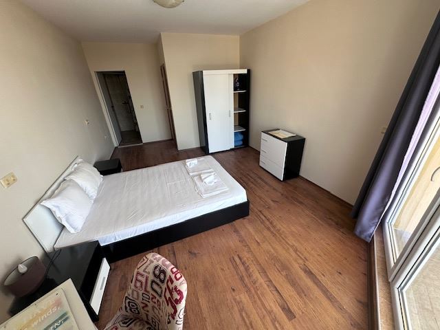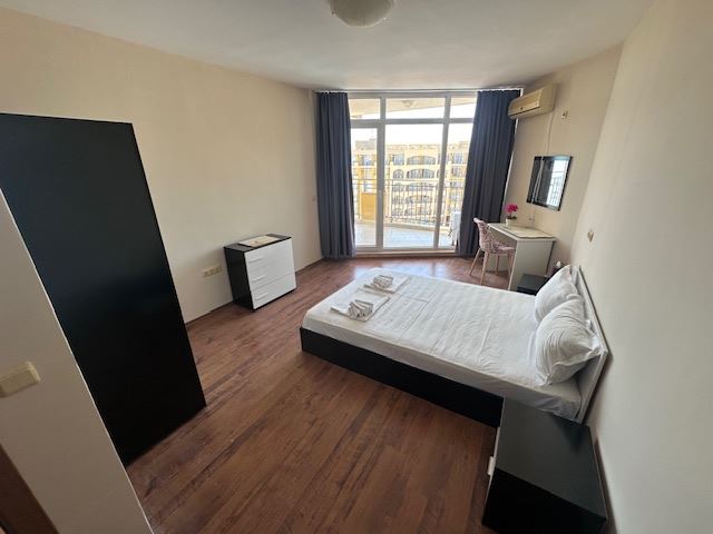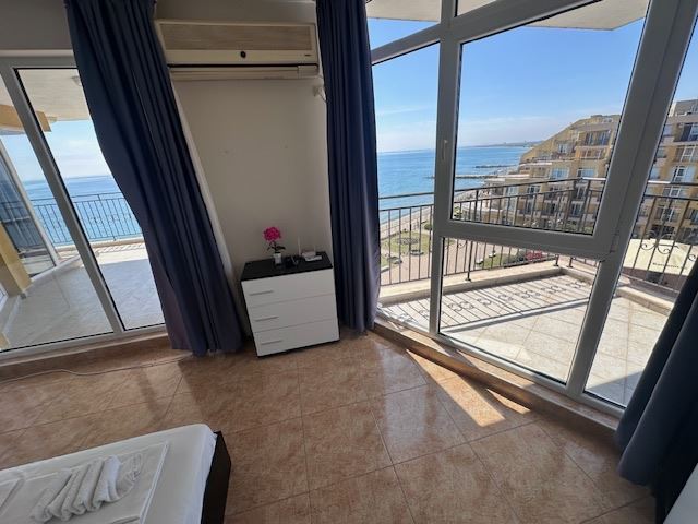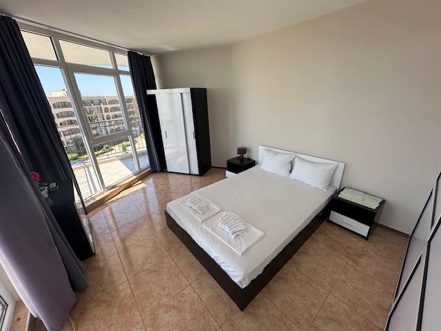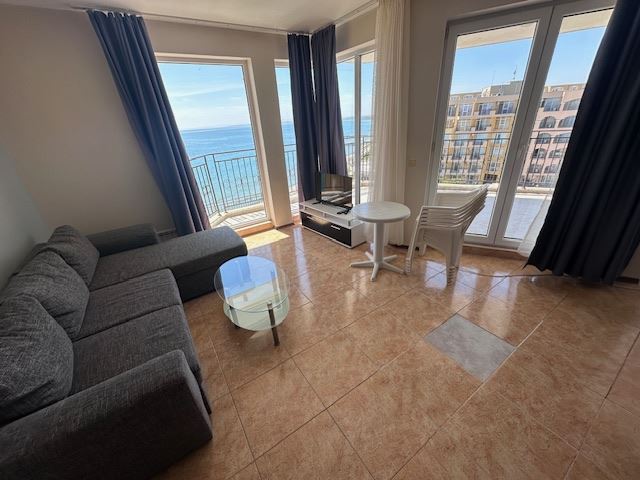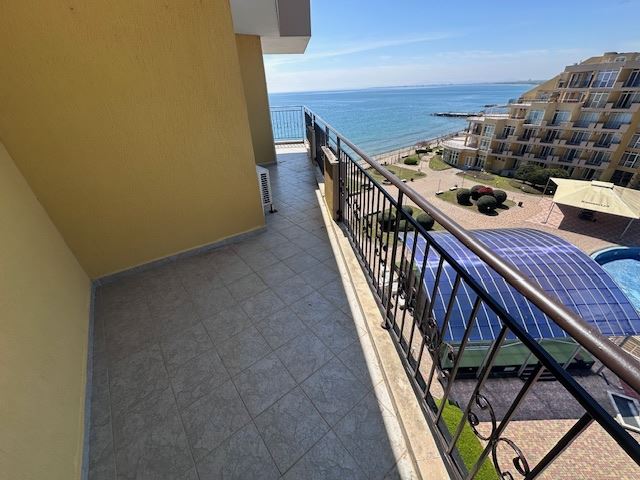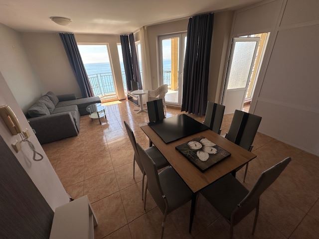 We present to you an exclusive panoramic two bedroom apartment located on the first line in the picturesque Aheloy. The property has a total area of 114 sq.m. and offers a unique view of the sea and the pool of the complex. The apartment is located in a secure complex providing peace and comfort to its residents. It consists of three spacious rooms, including two cozy bedrooms, suitable for families or people looking for a cozy space to relax. The two bathrooms are stylishly furnished and offer everything you need for your comfort.
