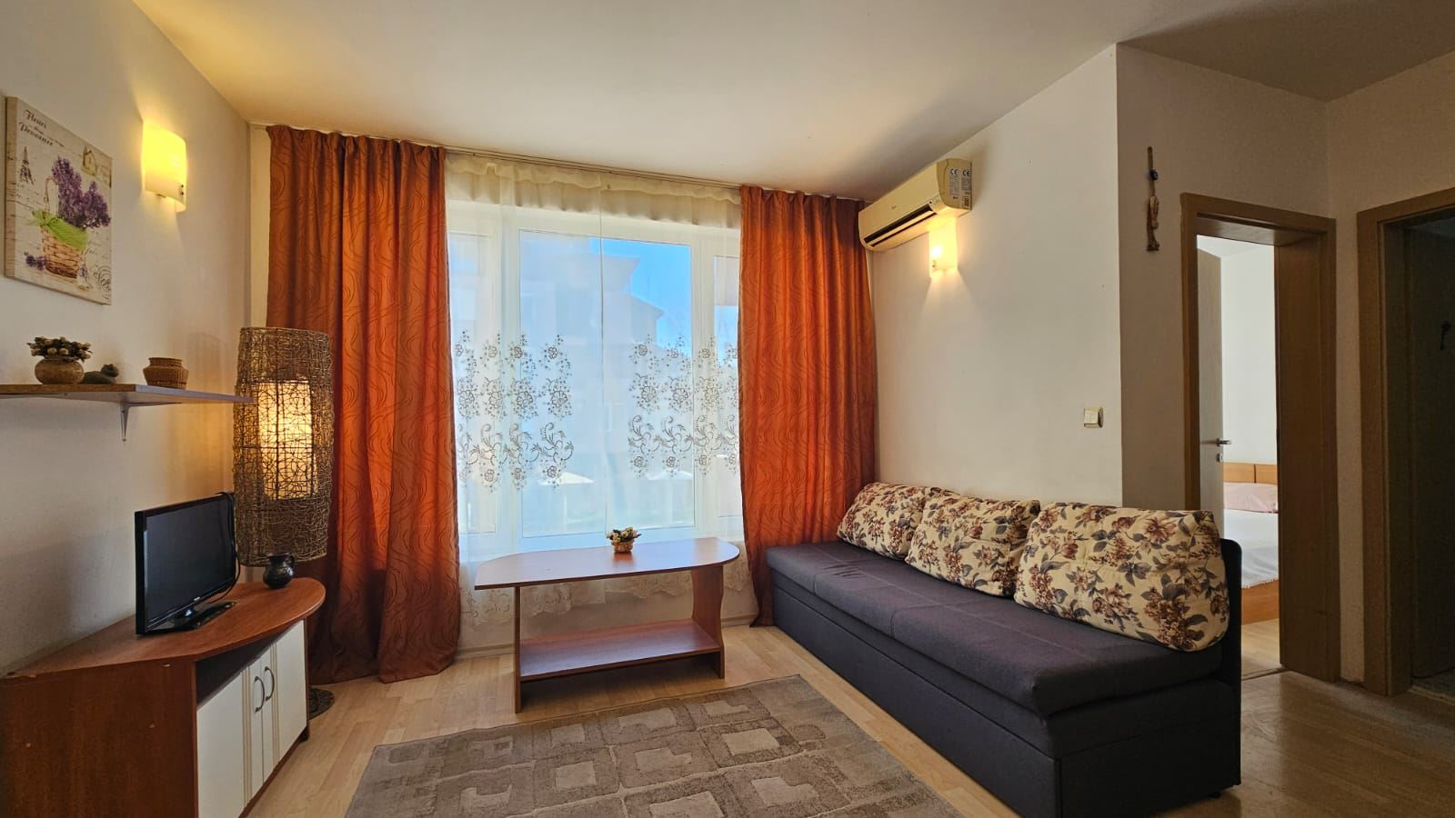 We present a two-room apartment with a total area of 43.8 m², located on the second floor of one of the most prestigious and sought-after complexes in Sunny Beach. The property is fully furnished with everything necessary for immediate occupancy, making it an excellent choice for personal use or as an investment with guaranteed rental potential.