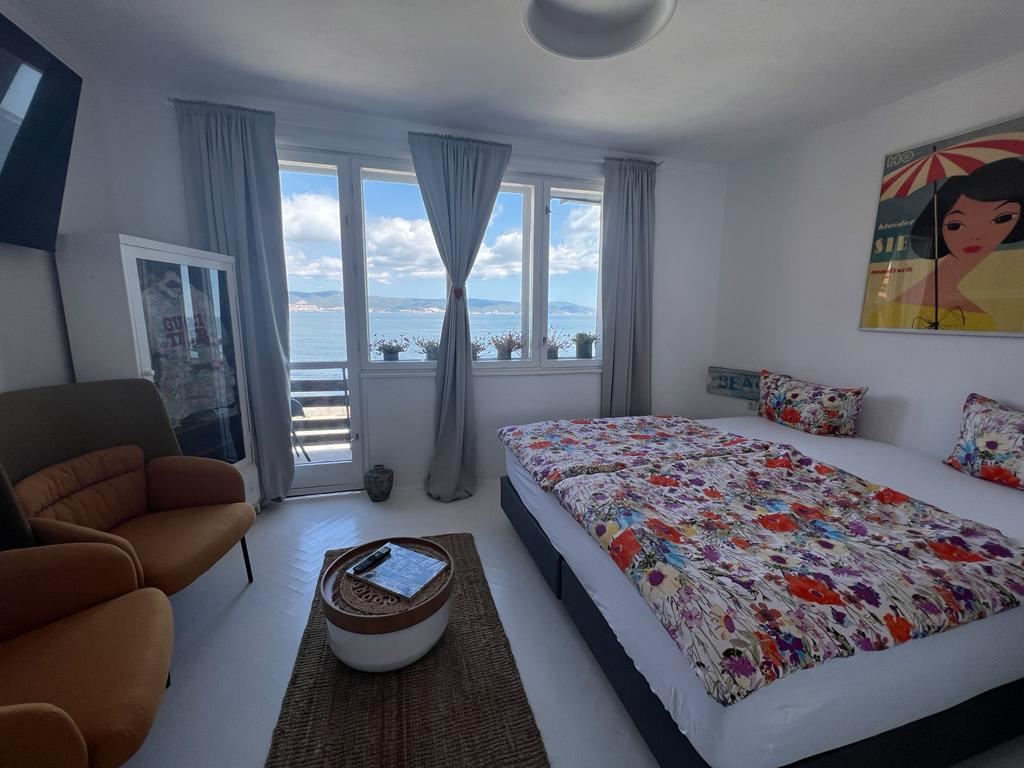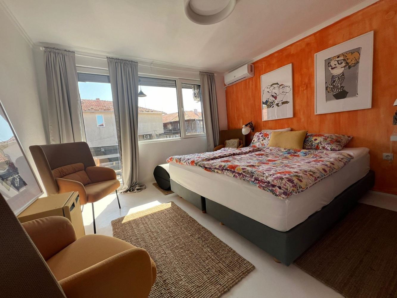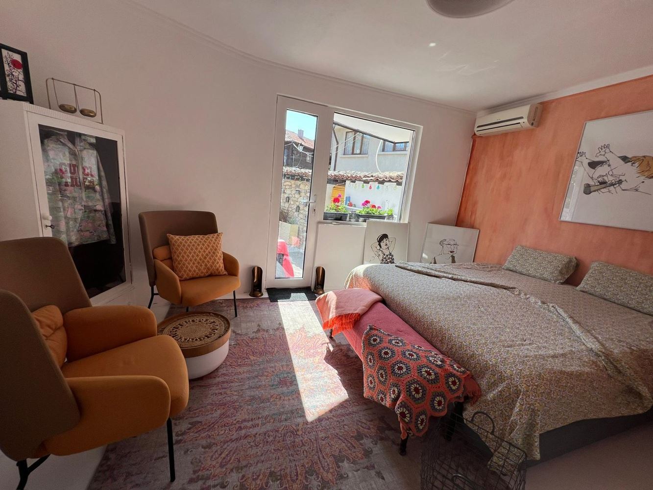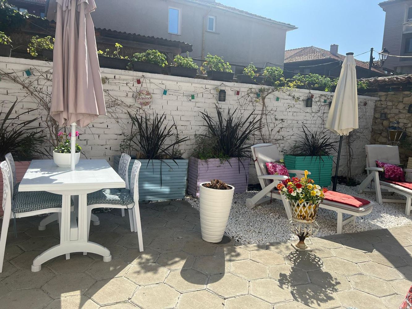 A three-storey house on the first line in Old Nessebar offers a unique opportunity to live in the historical and cultural part of this beautiful place. The total area of the house is 266 square metres and the plot of land around the house has an area of 133 square metres. It is quite a spacious accommodation. The house is renovated and updated, including new electrical wiring and plumbing, which guarantees a reliable and comfortable living. The house has 5 bedrooms, each with its own bathroom. It is ideal for a large family or guests. The house includes a large living room with kitchen combined in one room, creating an open and spacious space for socialising and hosting guests. There is the possibility of extending the house by building an attic floor, which could add even more living space. The house is furnished with designer furniture, which creates a stylish and cosy interior. The bathrooms have also been renovated, providing modern comfort.