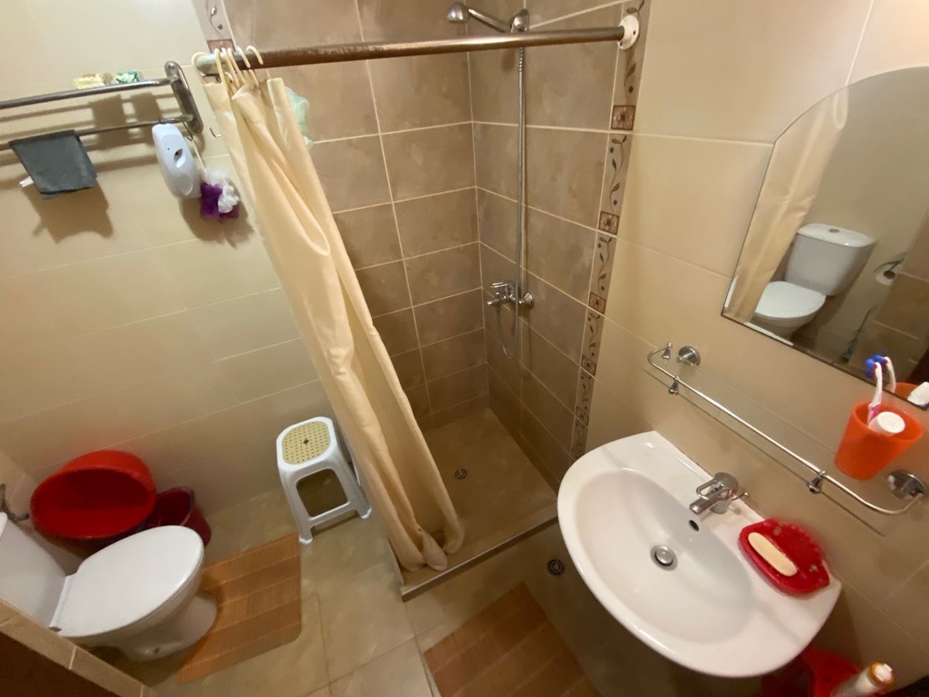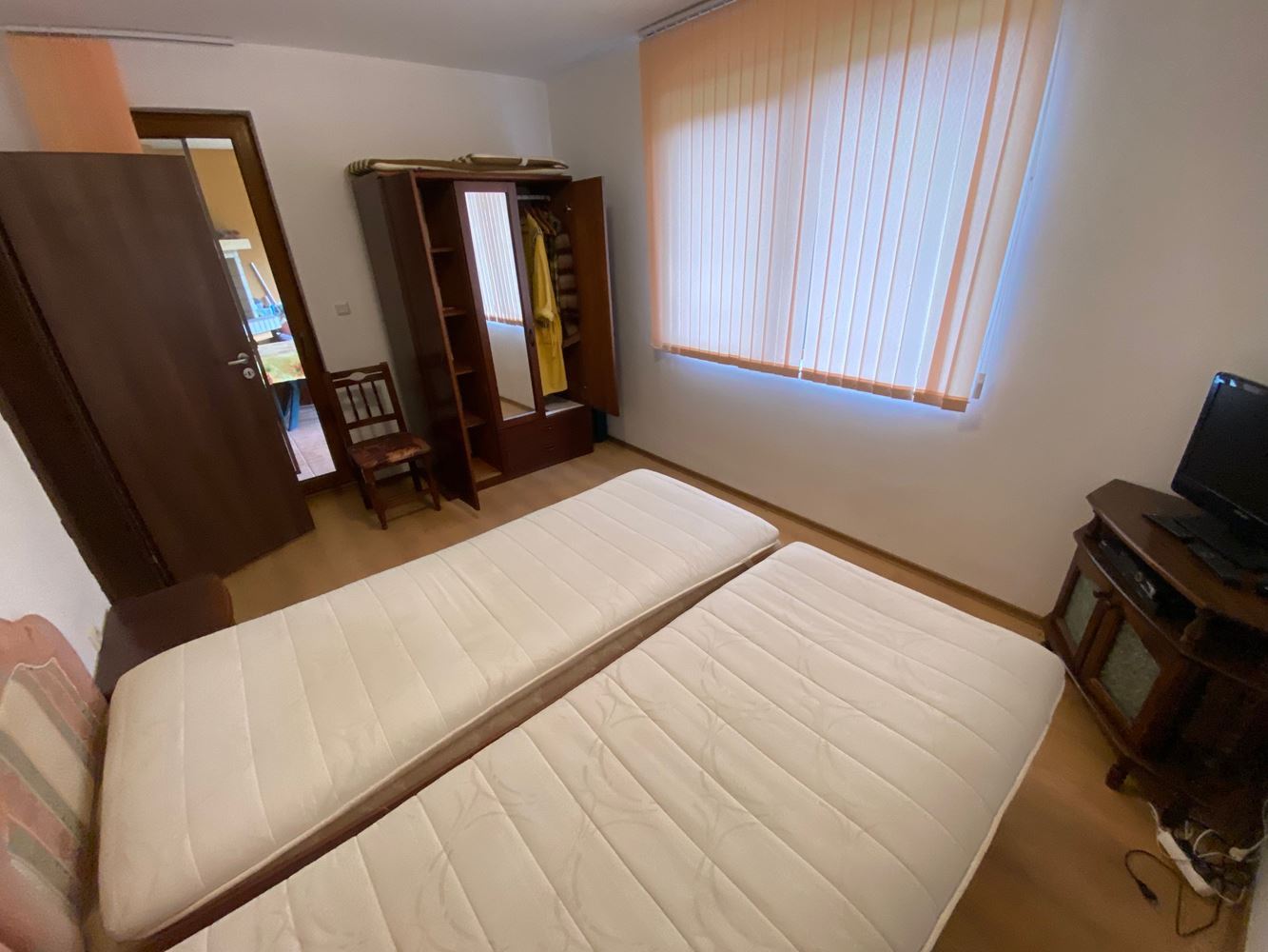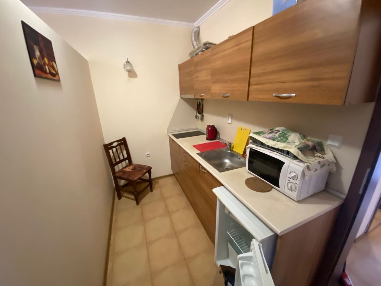 One bedroom unique apartament overlooking the swimming pool in a comfortable residential complex located in the picturesque part of the resort Sveti Vlas. Sandy beaches are at a distance of 500 m from the complex.The territory of the complex is protected, landscaped and greened. There is a swimming pool, recreation areas, a playground for children and a car park. The offered apartment is located on the ground floor and consists of a living room with a fully equipped kitchen, a bedroom, a bathroom with WC and a veranda with access to the adjacent private patio. The beautifully appointed and incredibly cosy complex is ideal for year-round living and seasonal holidays. The property has an outdoor swimming pool, car parking and an equipped barbecue area. Within walking distance to many local amenities, several beaches, yacht harbour and much more.