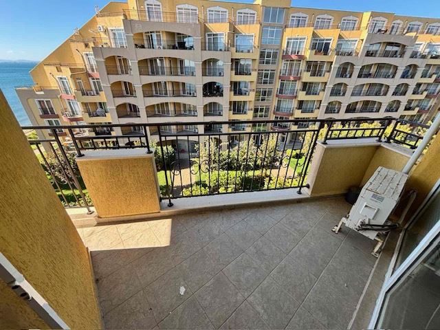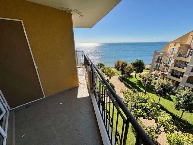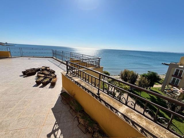 We present to you an exceptional one-bedroom apartment with a total area of 213 m², located in an elite gated complex right on the seafront in Aheloy. This property has true character – stylishly furnished, with a captivating frontal sea view, and situated on the fourth (not top) floor of a building with an elevator and Act 16 (use permit). The apartment is sold fully furnished and equipped, ready for immediate move-in or rental.