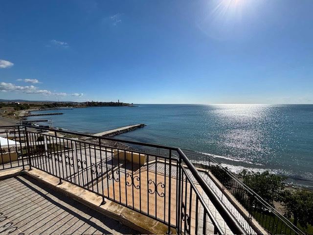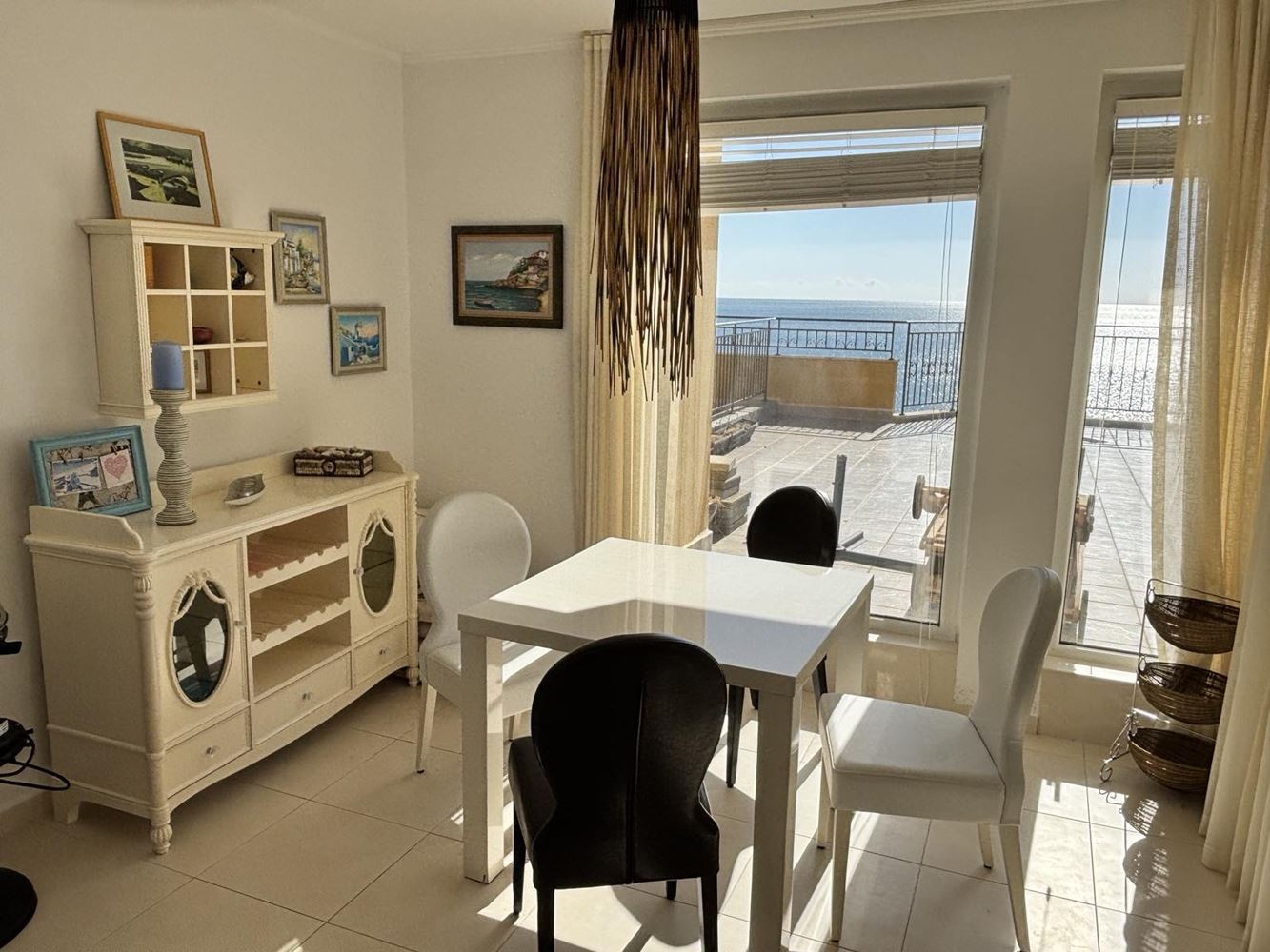 The home impresses with its spacious, bright, and functionally designed rooms, each offering a direct view of the sea. The living area with kitchen and dining zone is wide and sun-filled thanks to panoramic windows that emphasize the proximity to the coastline. The large bedroom is cozy and quiet, with a relaxing view of the horizon. The bathroom is elegantly finished. The crown jewel is the impressive panoramic terrace – a true outdoor living room surrounding the apartment and offering endless sea views all year round.