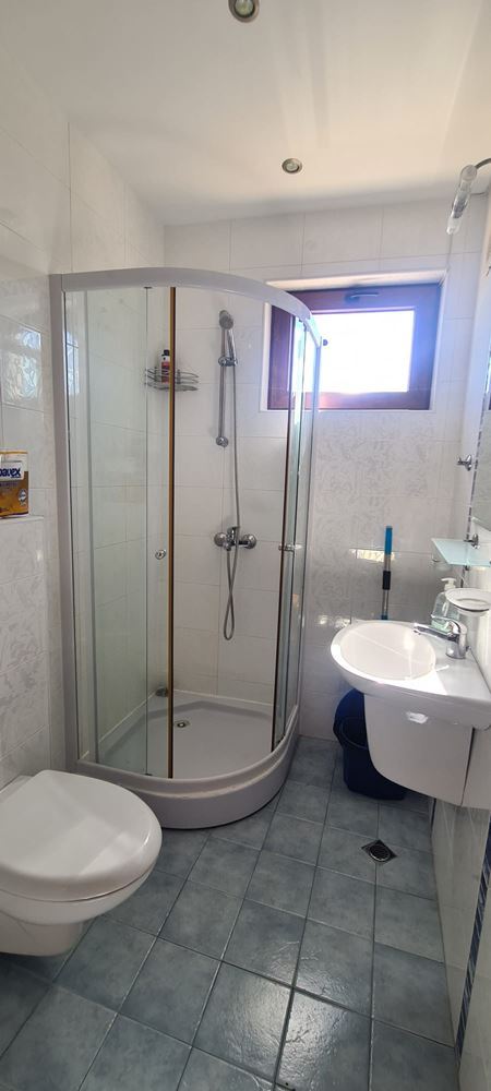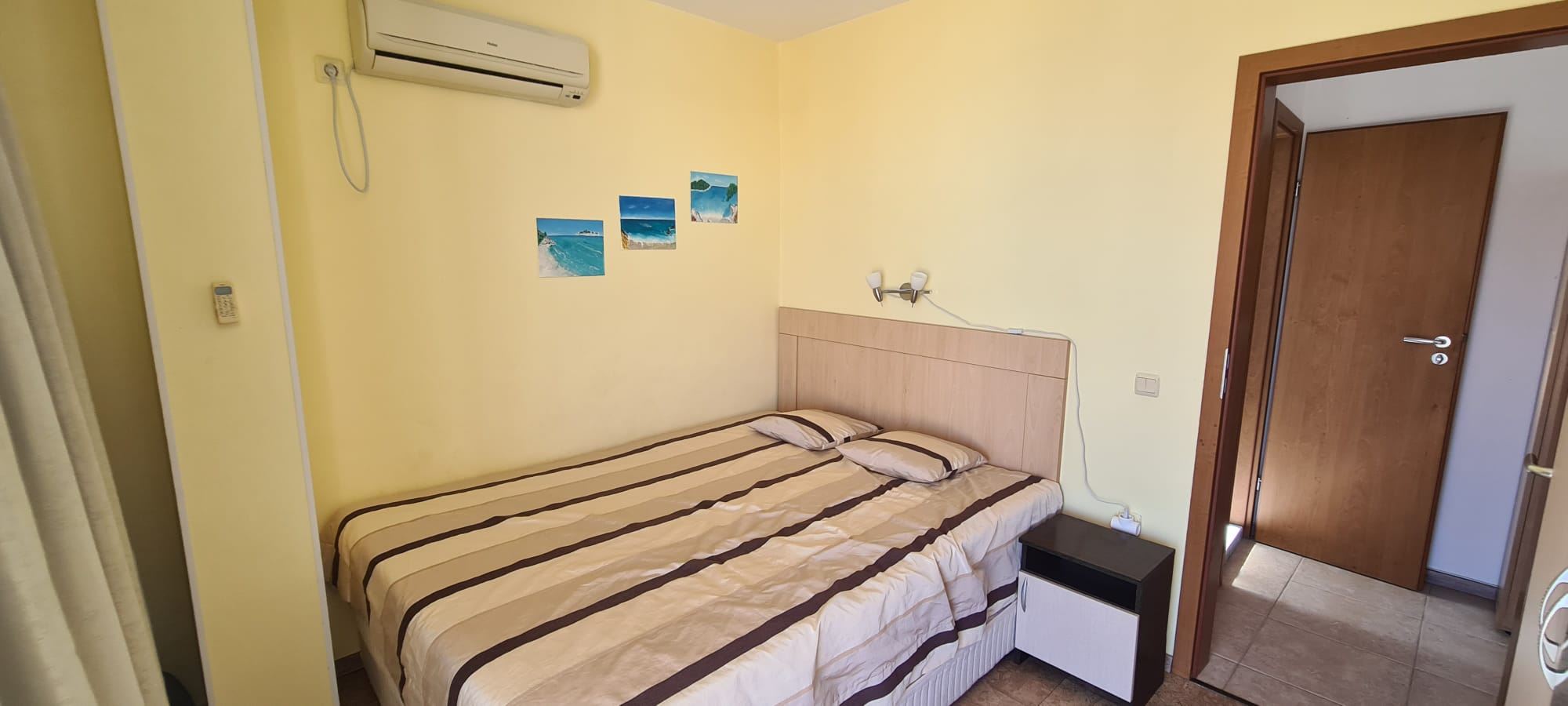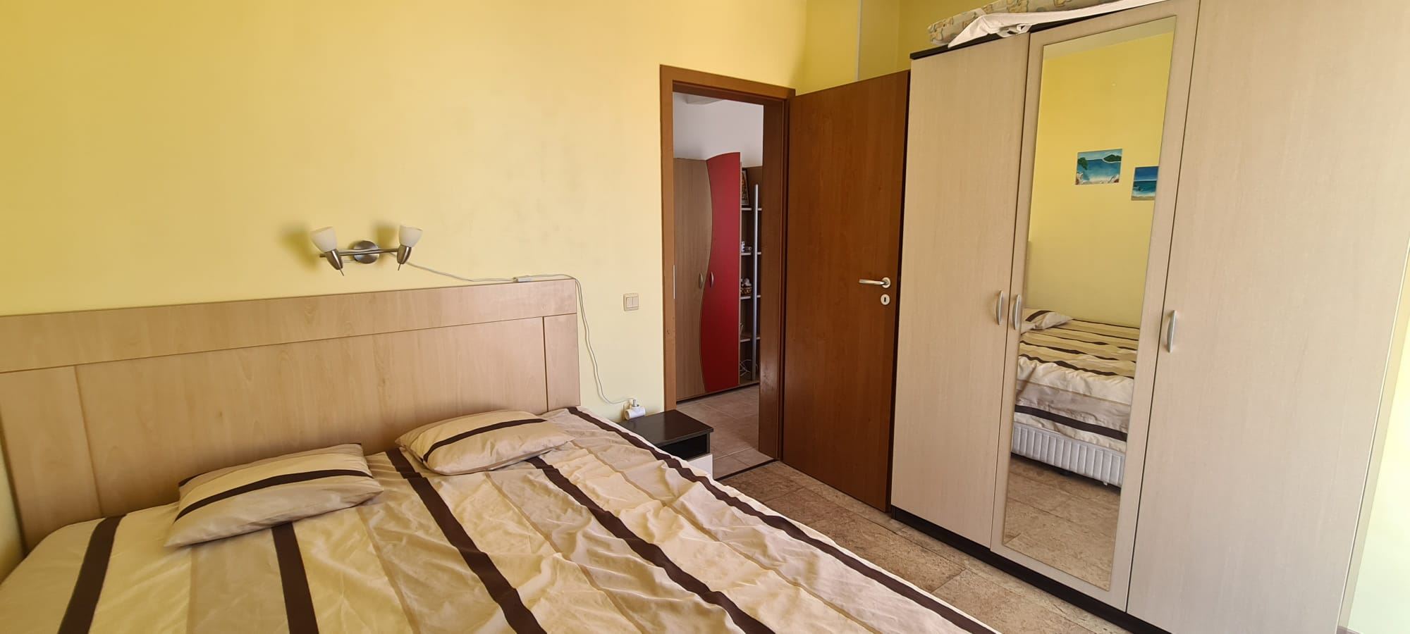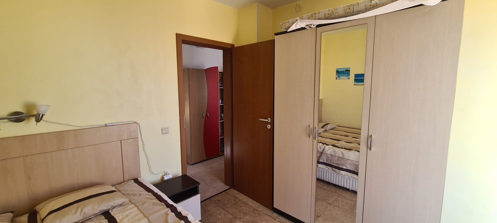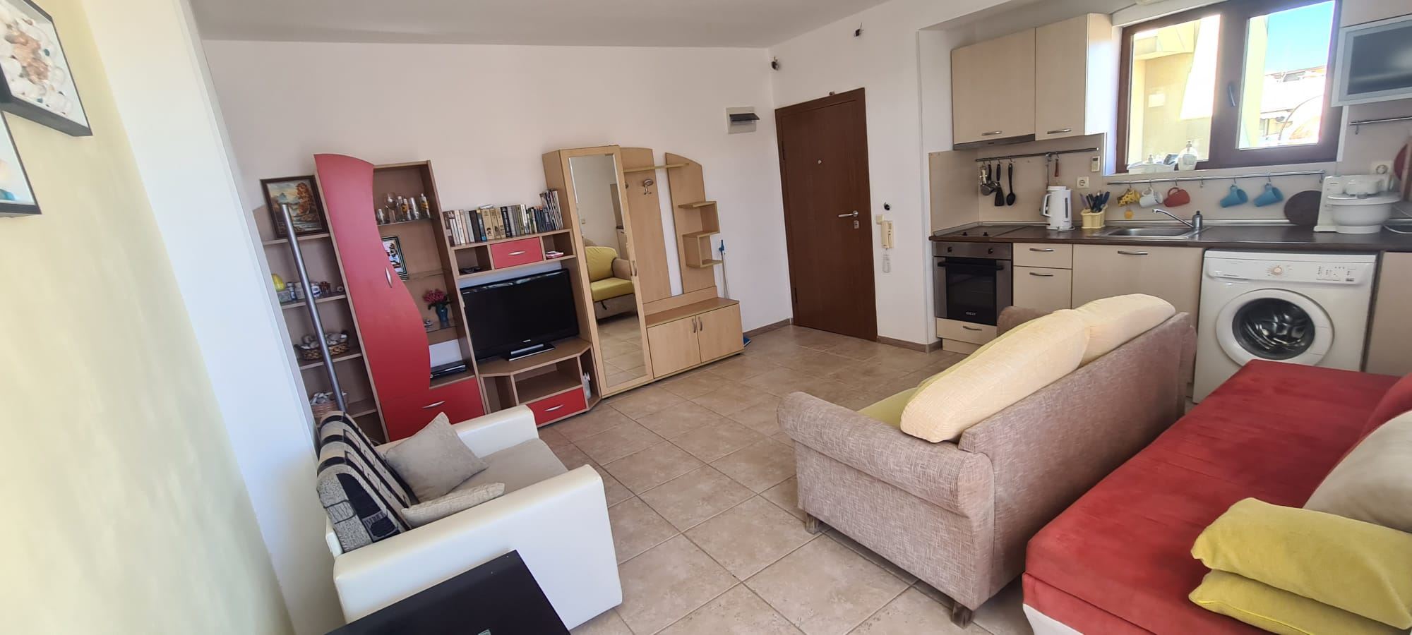 Unique panoramic one bedroom apartament on the top floor of a detached residential building in Sozopol with stunning sea and beach views. The building is located next to Harmani beach, the most favoured area in the new part of Sozopol, with easy year-round access. Convenient location, just 50 metres from the main street and 100 metres from Harmani beach. Pedestrian accessibility to all infrastructure. The area is suitable for all year round living, everything is one step away: supermarkets, cafes, restaurants, shops, clubs, pharmacies, banks. There are no service charges. The apartament is located on the fifth floor, northern exposure. The total area is 82 m2 of which 42 m2 is the apartament and 40 m2 is the terrace. The layout comprises a living room with fitted kitchenette, a separate bedroom and a long terrace with sea views. The bedroom and living room have access to the terrace. The building has no lift. The apartament is suitable for permanent residence. Excellent option for renting, as it is located in walking distance to the beach.
